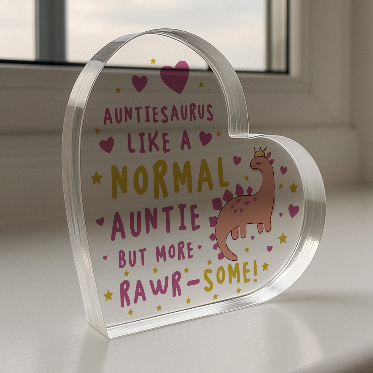 Introducing our beautiful heart acrylic block, a powerful looking plaque that demands attention with its beautiful clear material and vibrant printing. Crafted from high-quality acrylic, this plaque offers durability and versatility, making it an ideal gift for your Auntie for her Birthday or Mothers Day this year!