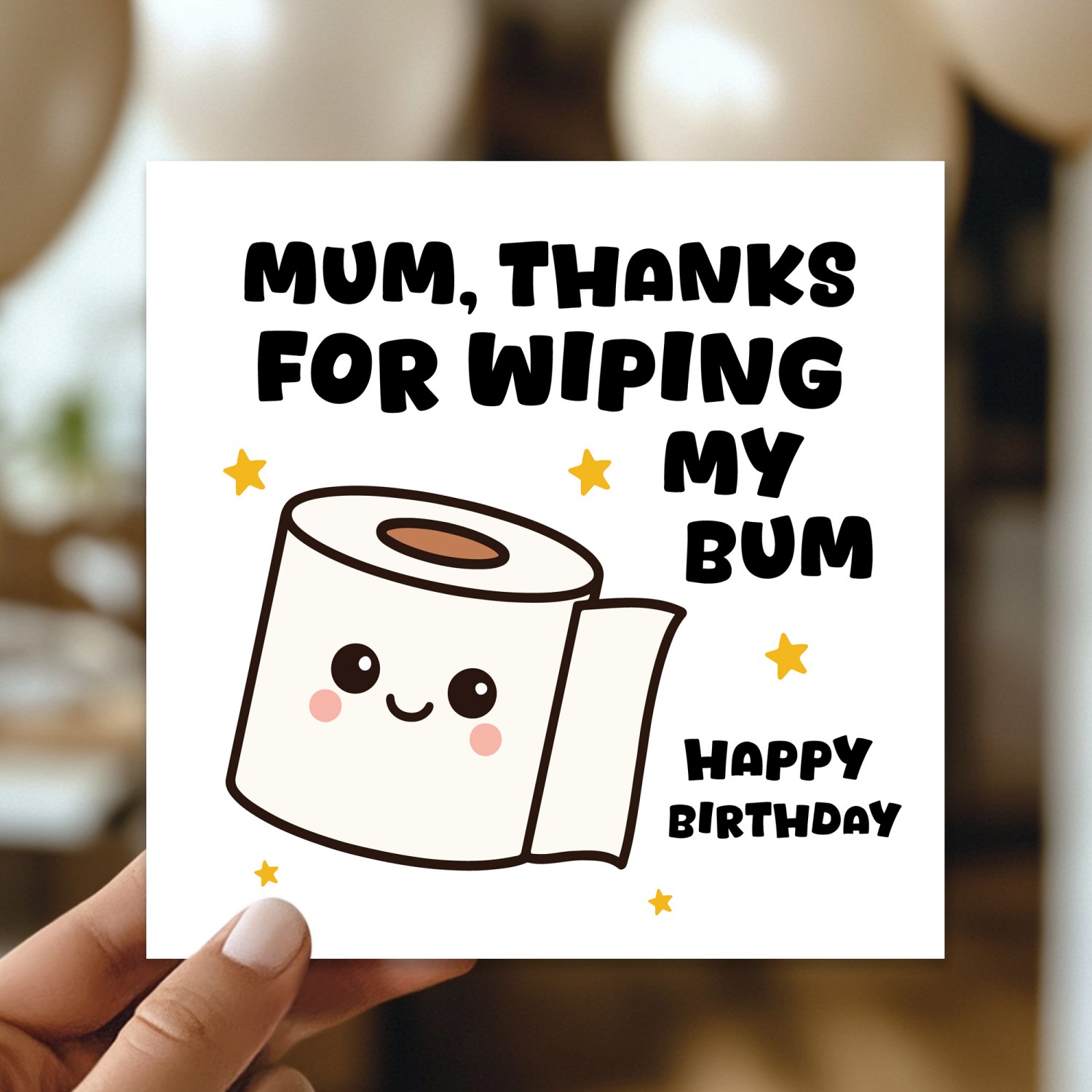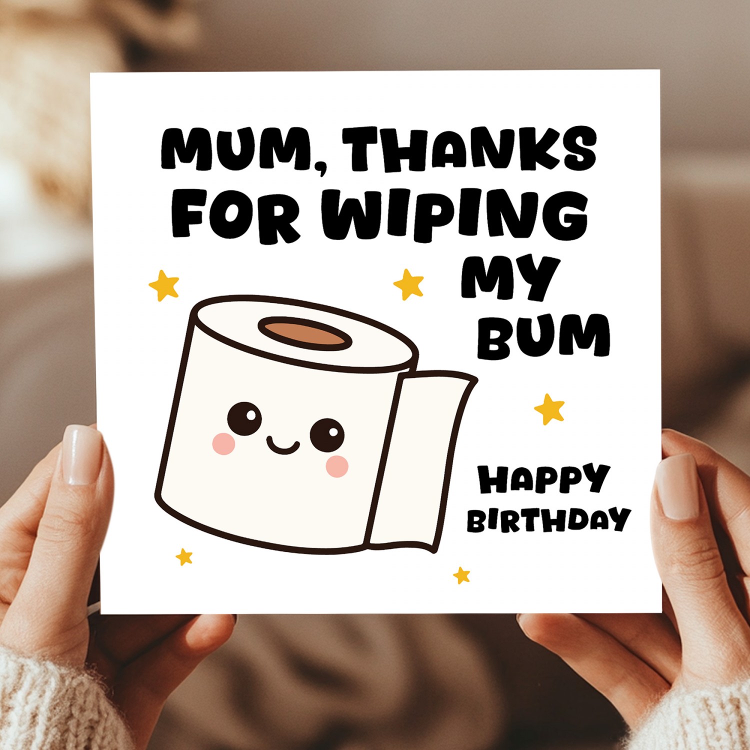 Funny Birthday Card For Mum Thanks For Wiping My Bum Card Joke