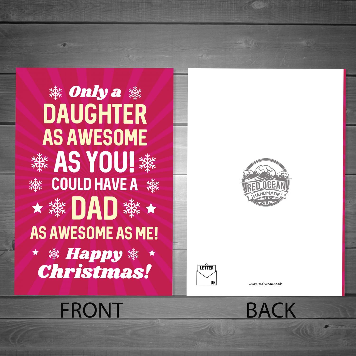 Every card and gift from Red Ocean is handmade with care and attention in the UK, we take pride in our work and we try our best to make each gift perfect. Our design team is regularly adding new ranges and we cater for every occasion, so our cards can be paired with other items from our range, Wooden Hearts, Plastic Wall Signs, Wall Mounted Frames, Wallet Cards, the options are endless. Be sure to browse for more Red Ocean Gifts.