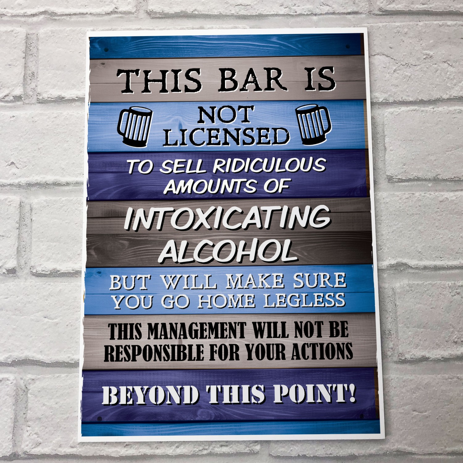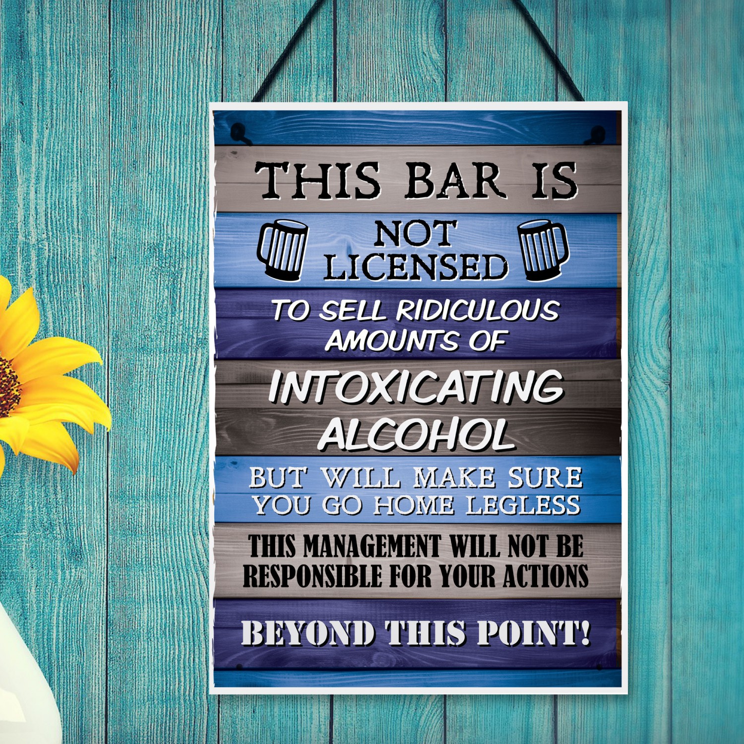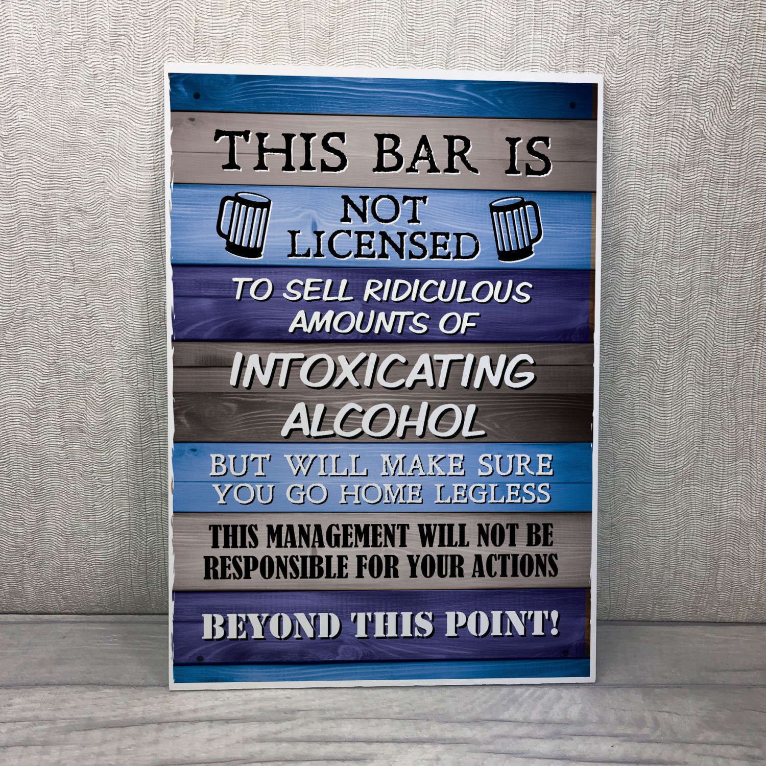 The Printed PVC Sign is designed to make a bold statement. Measuring A4 in size (29.7 x 21 cm),  you won't miss this funny sign which will be hanging behind your bar or on your Garden shed. With state-of-the-art printing technology, the design has stunning clarity and vibrant colors, ensuring maximum impact and visibility. to all your visitors.