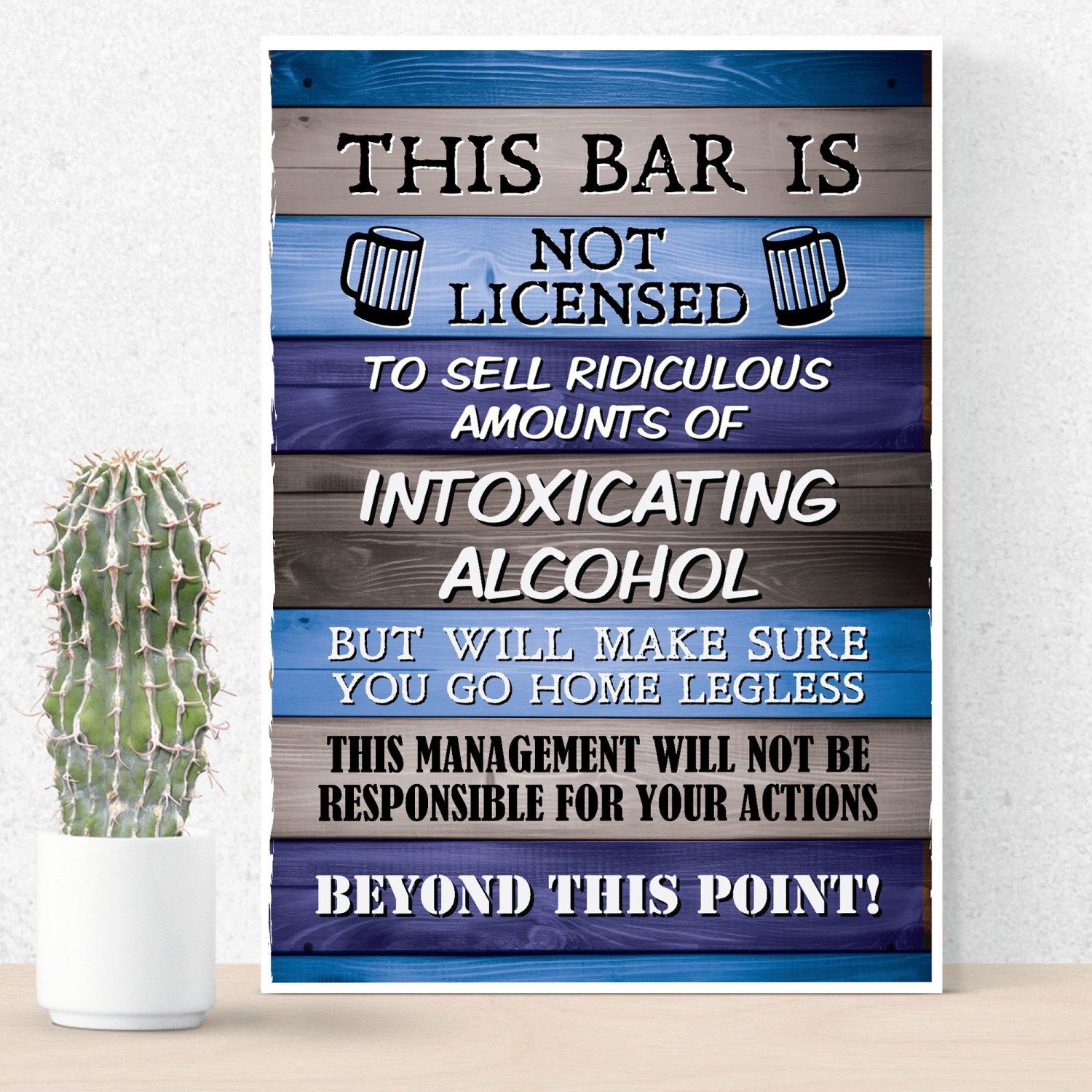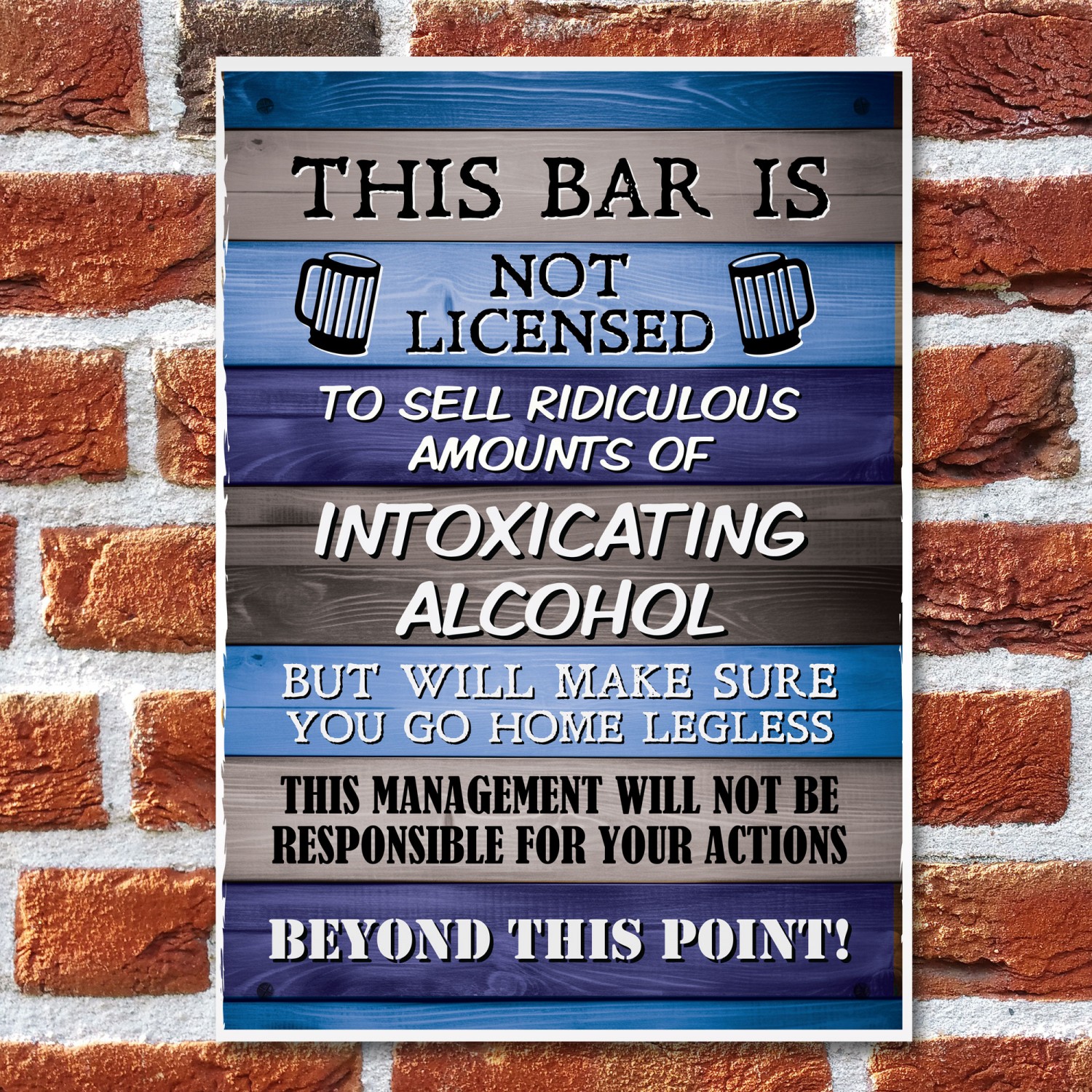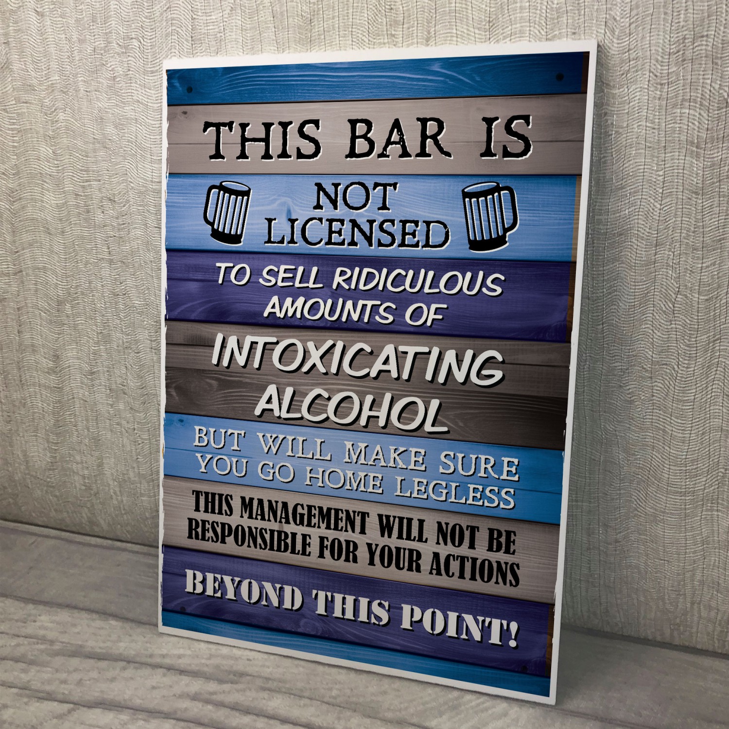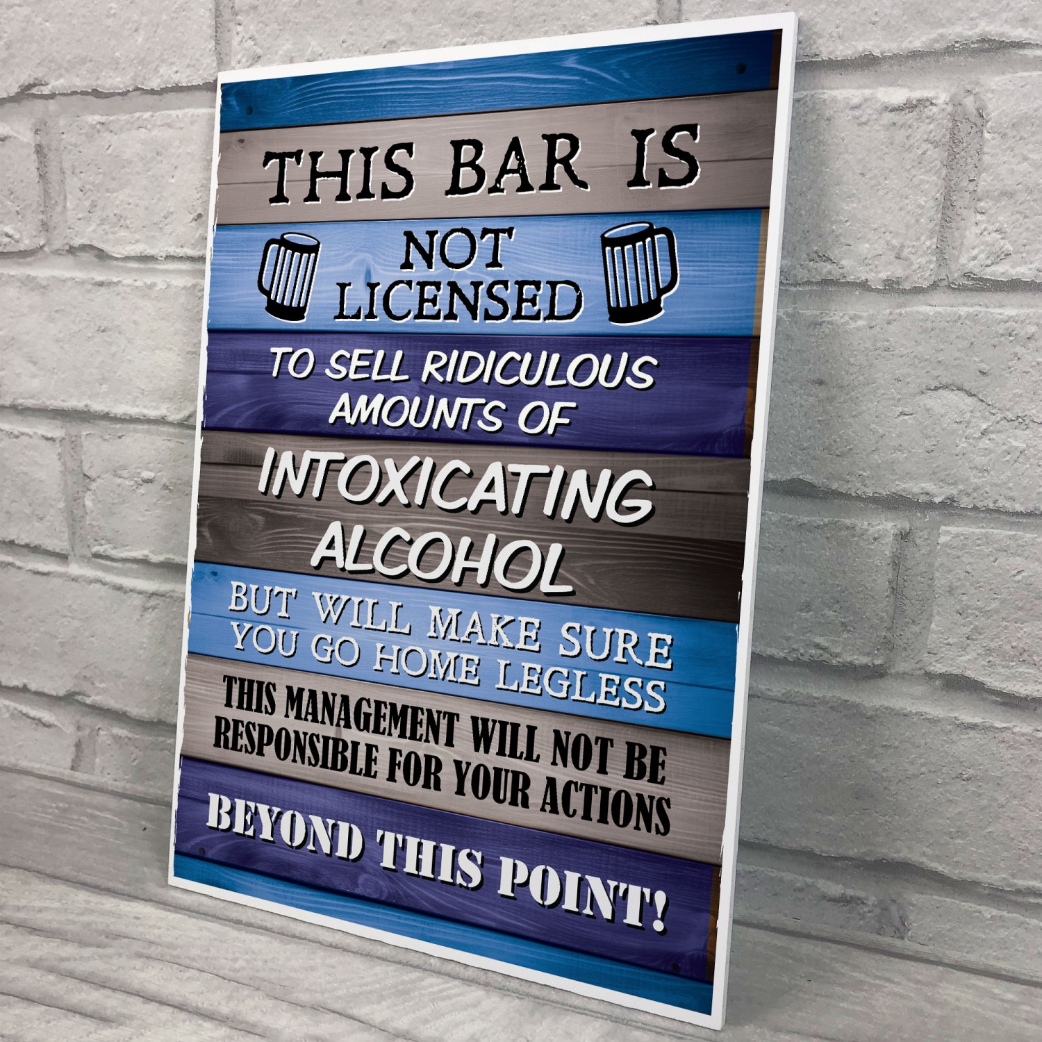 The Printed PVC Sign is designed to make a bold statement. Measuring A4 in size (29.7 x 21 cm),  you won't miss this funny sign which will be hanging behind your bar or on your Garden shed. With state-of-the-art printing technology, the design has stunning clarity and vibrant colors, ensuring maximum impact and visibility. to all your visitors.