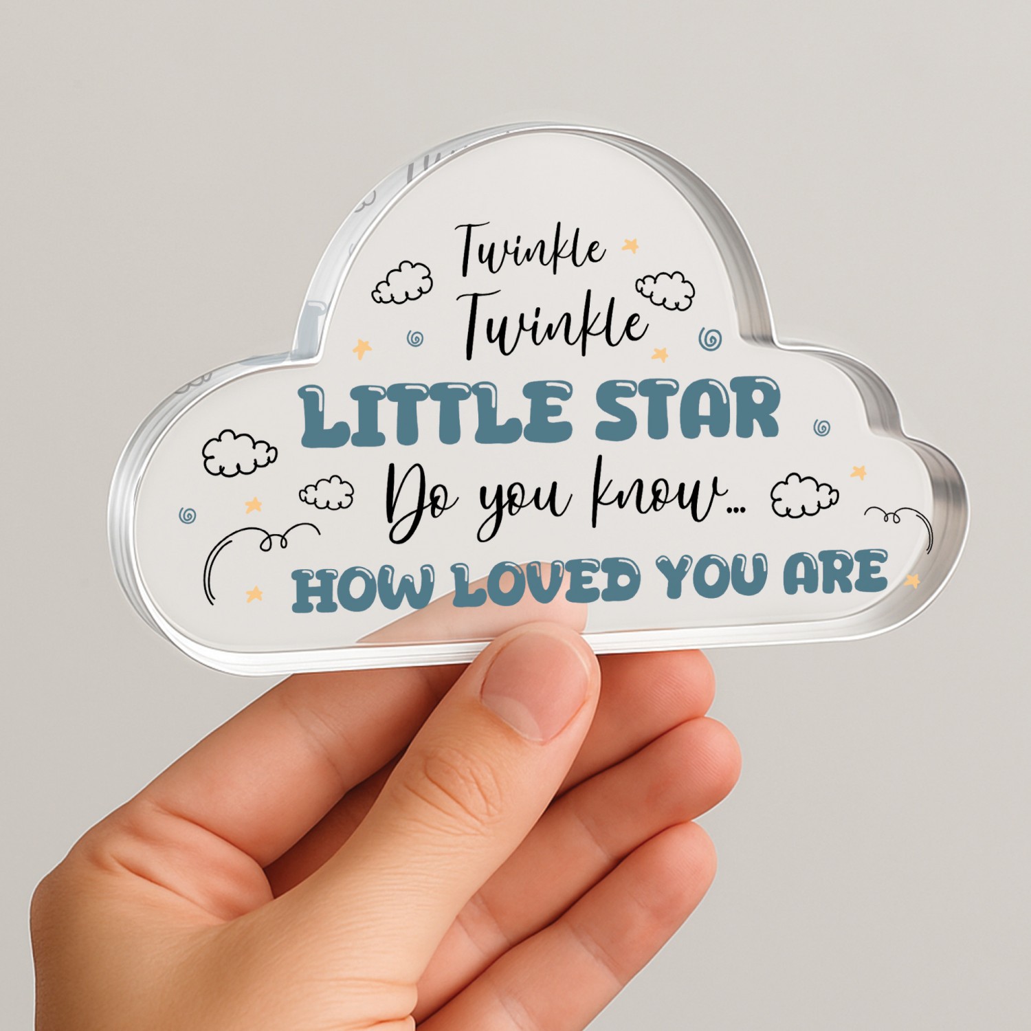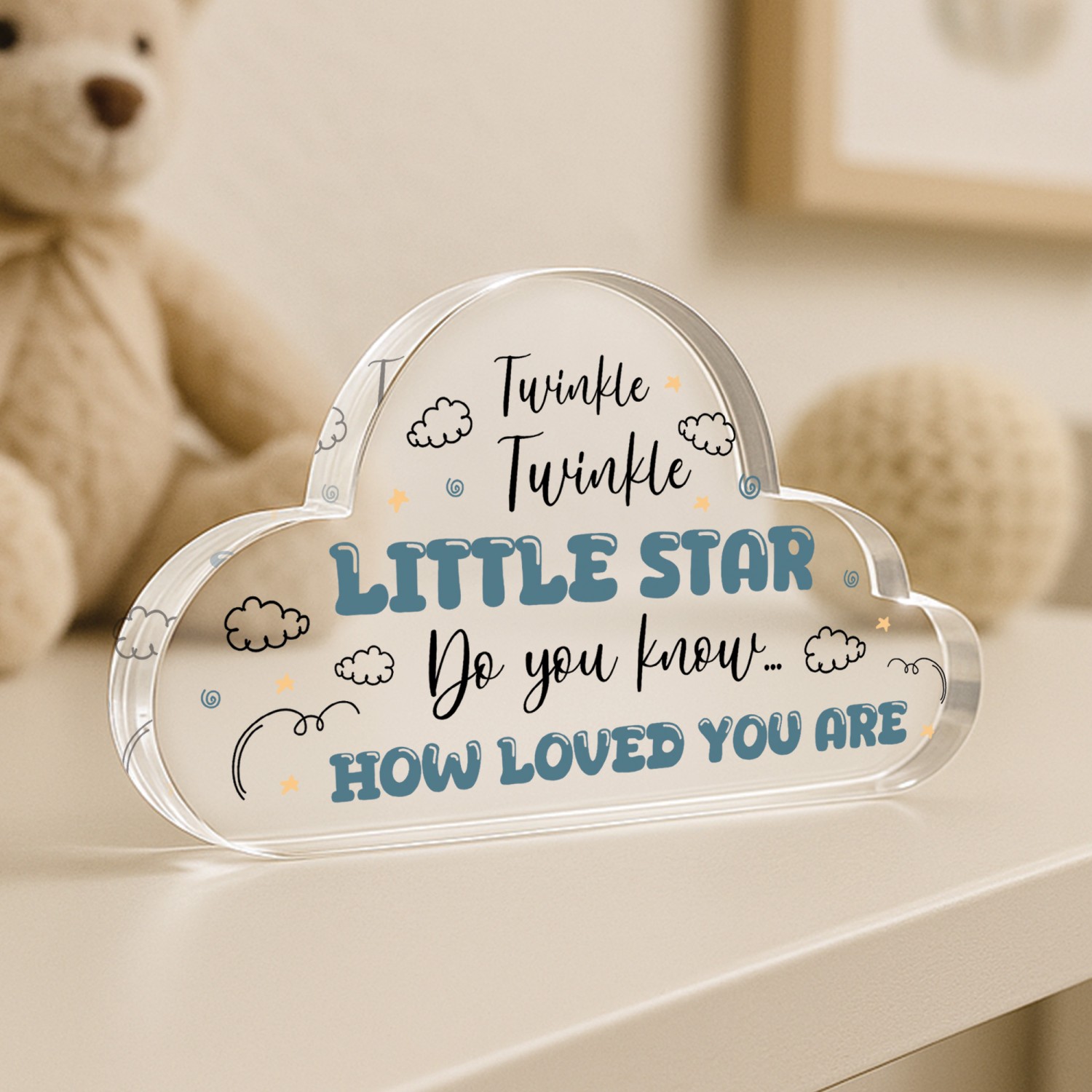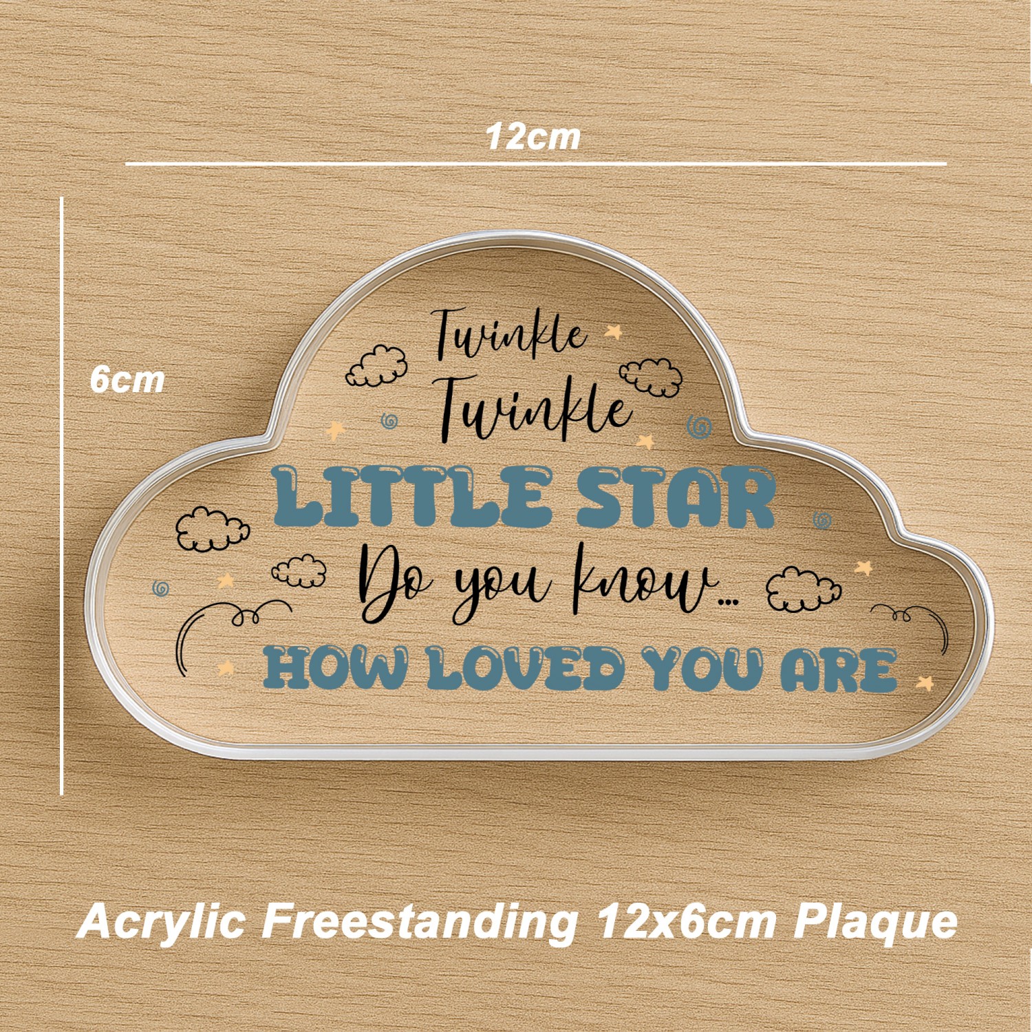 Introducing our beautifully crafted Acrylic Cloud Keepsake, a unique piece designed to bring comfort and joy to any space. Shaped in a gentle cloud, this plaque measures 10 x 7 cm with a solid 1.2 cm thickness, giving it a substantial feel and a graceful presence, ideal for display on shelves, nursery dressers, or mantelpieces. Each piece is printed in vivid, long lasting colours, making it a beautiful decorative touch that also serves as a heartfelt reminder of love, faith, and new beginnings.