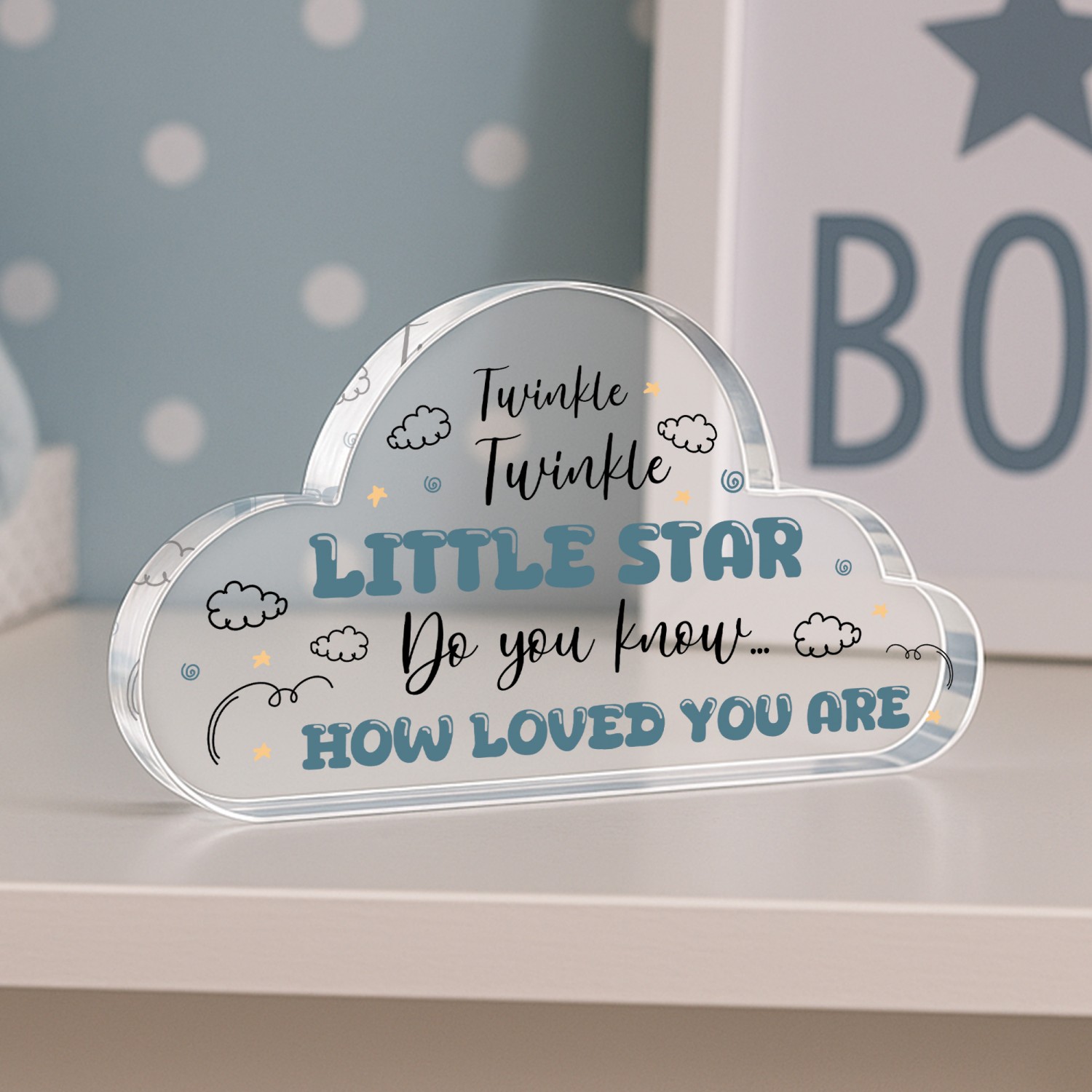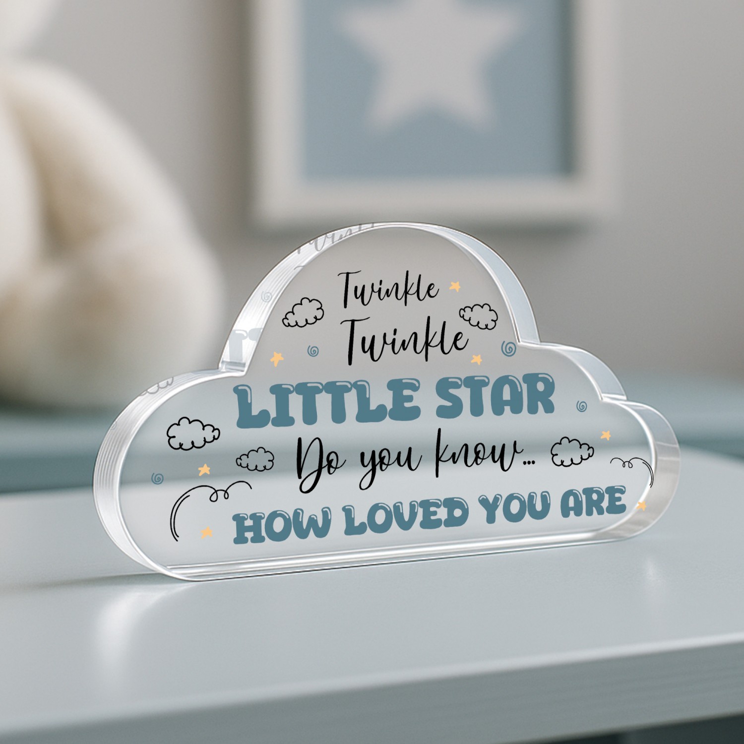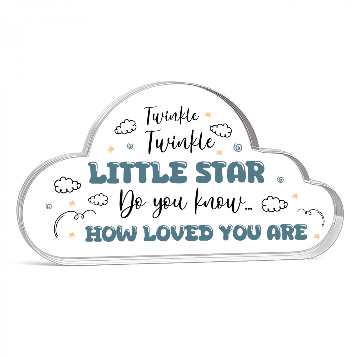 Introducing our beautifully crafted Acrylic Cloud Keepsake, a unique piece designed to bring comfort and joy to any space. Shaped in a gentle cloud, this plaque measures 10 x 7 cm with a solid 1.2 cm thickness, giving it a substantial feel and a graceful presence, ideal for display on shelves, nursery dressers, or mantelpieces. Each piece is printed in vivid, long lasting colours, making it a beautiful decorative touch that also serves as a heartfelt reminder of love, faith, and new beginnings.