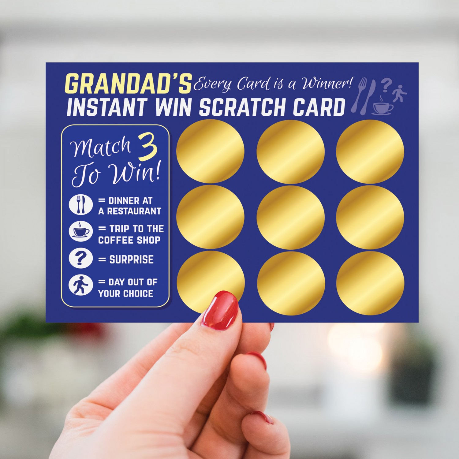 With 9 scratch-off stickers, the recipient gets to unveil surprises, creating an element of suspense and delight for any special moment. It is an Ideal gift idea for Fathers Day or a Birthday! Our Novelty Scratch Card Gift is a unique and engaging way to express your sentiments. Watch the excitement unfold as your loved ones scratch away to reveal heartfelt messages, making your gift memorable and cherished.