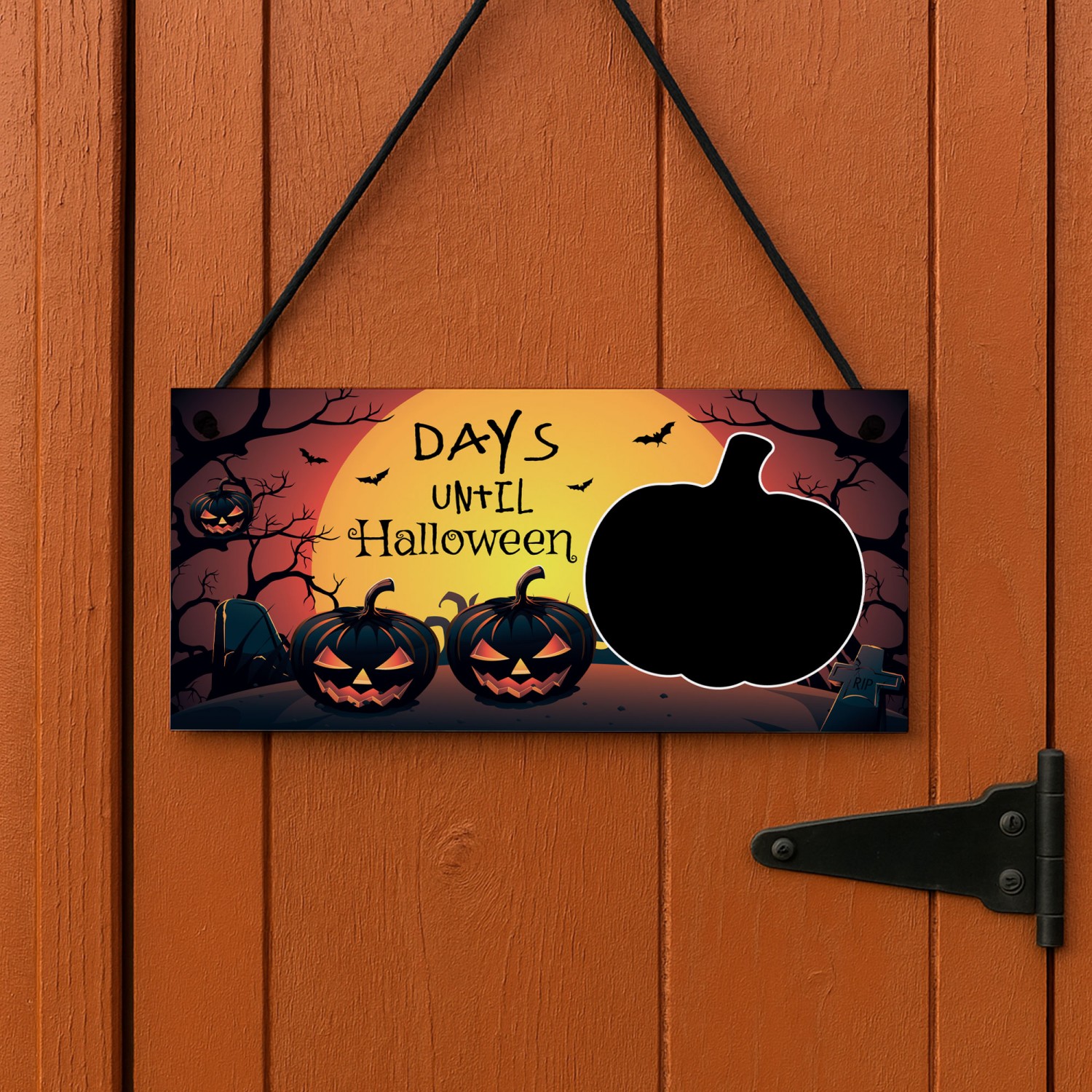Halloween Countdown Plaque - 20x10cm Chalkboard Style Sign