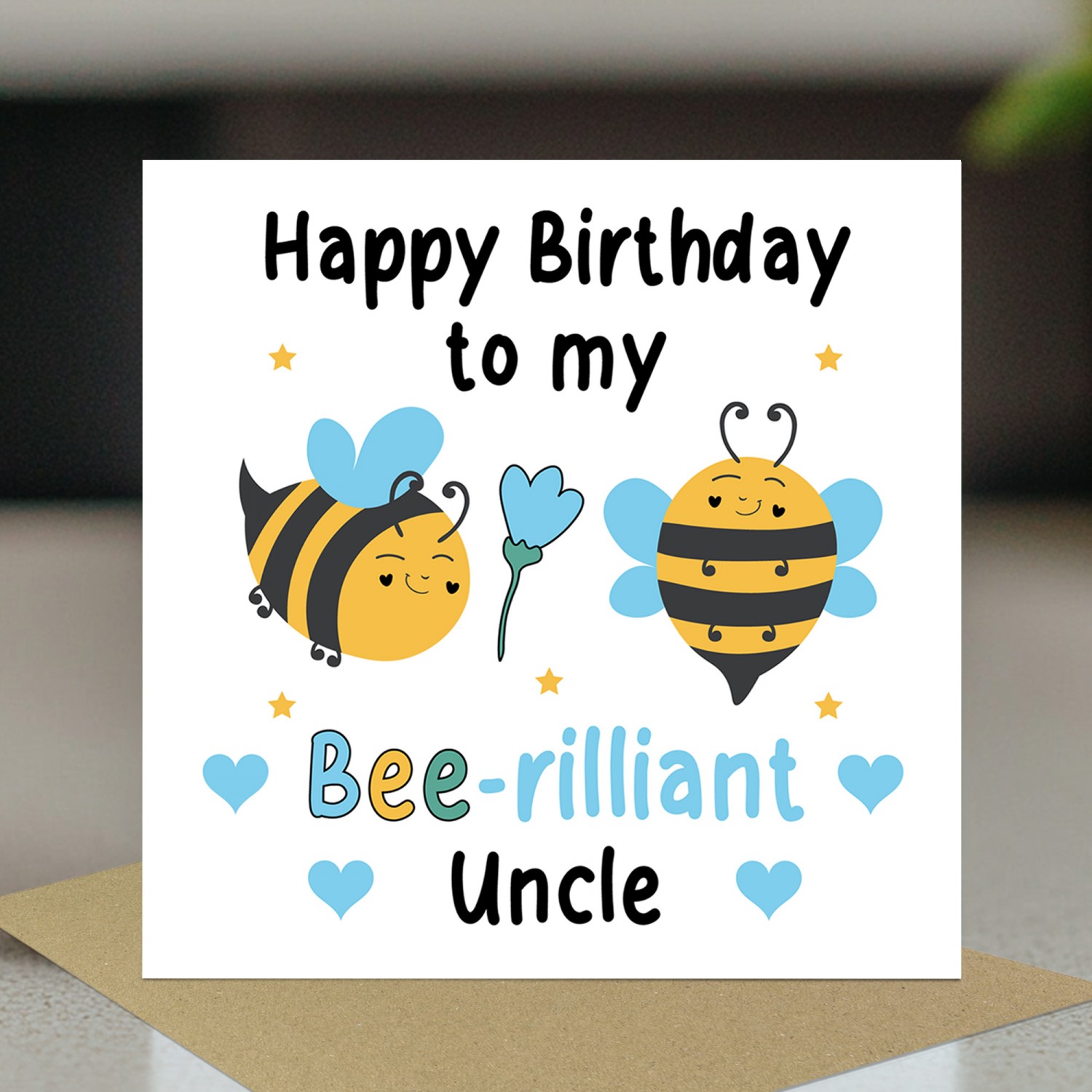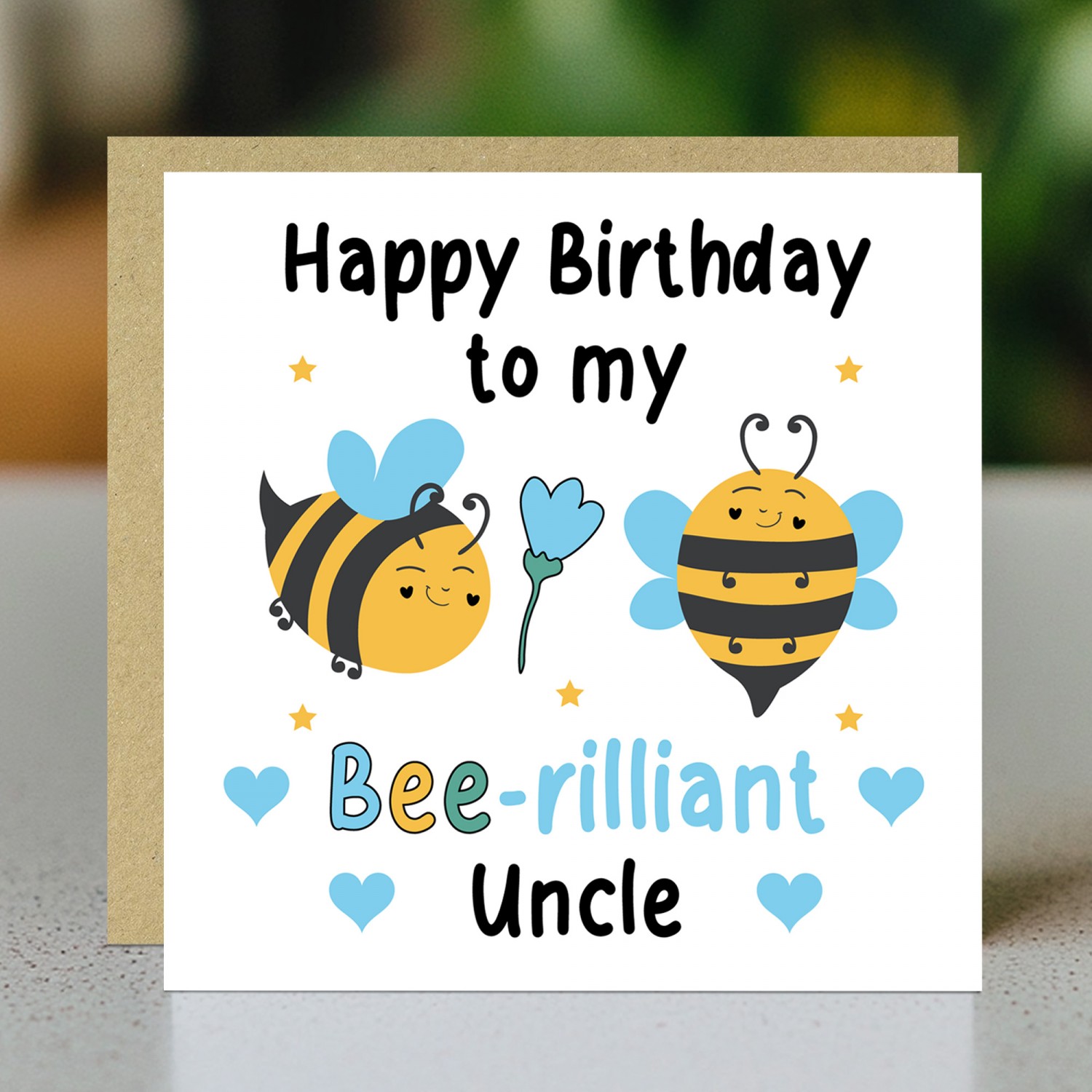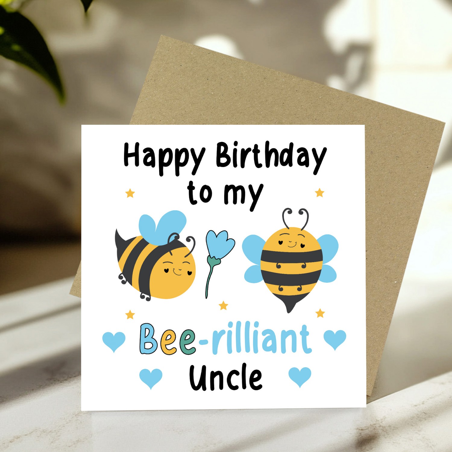 Happy Birthday To My Bee Rilliant Uncle Card With Kraft Envelope