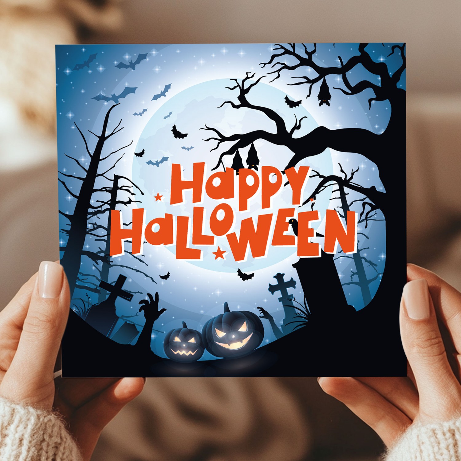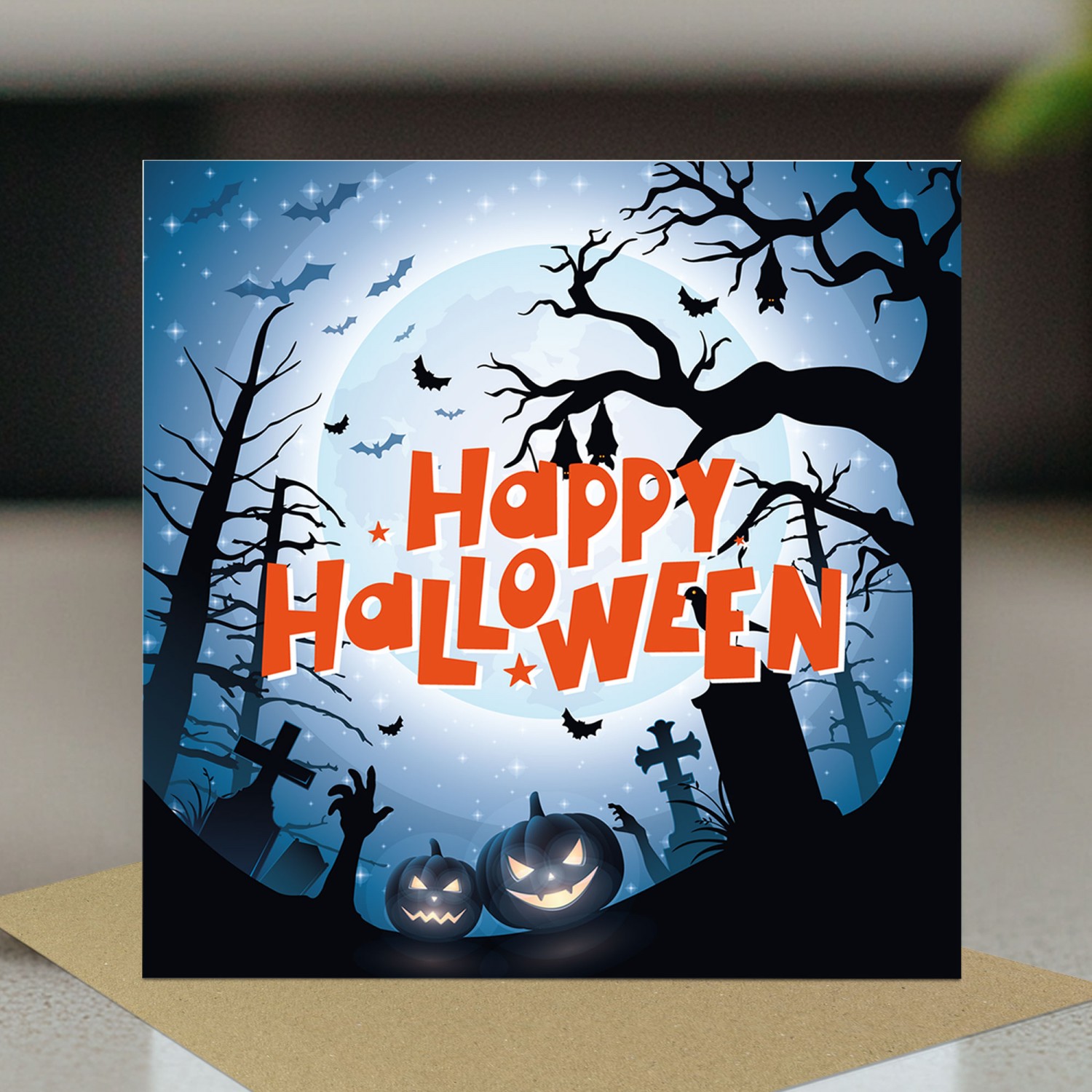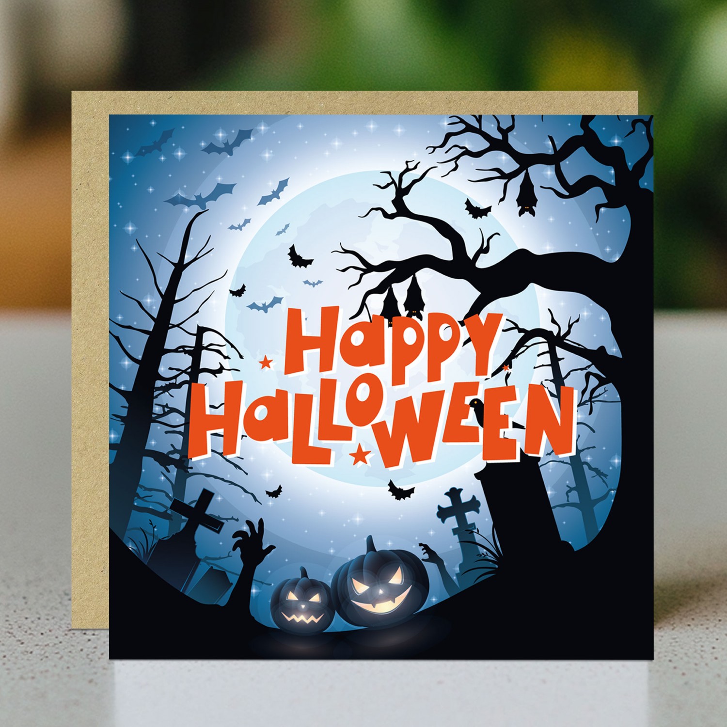 The blank interior gives you the freedom to add your own personalised message, making it the perfect choice for expressing your thoughts and feelings in a unique way. Paired with a stylish brown craft envelope, this card is a great Halloween card!