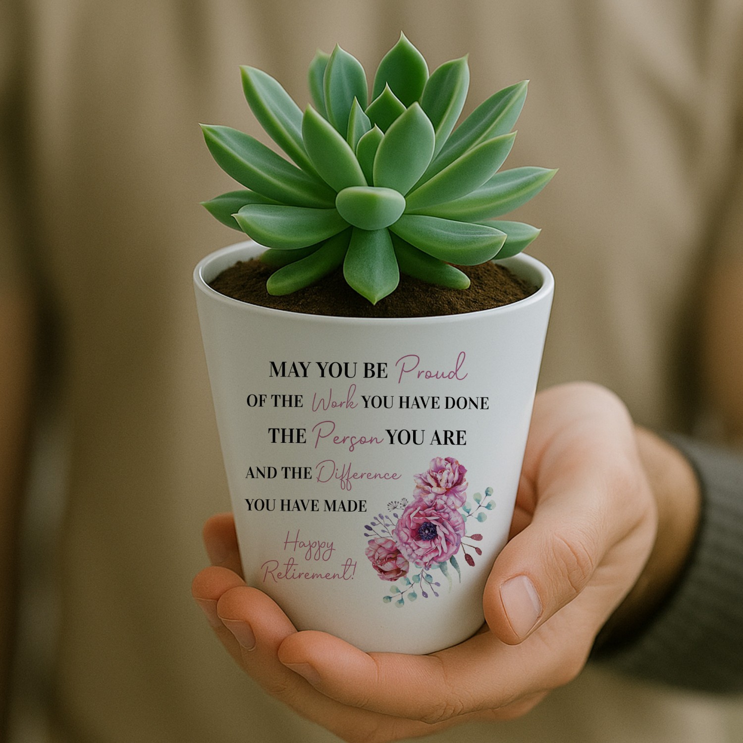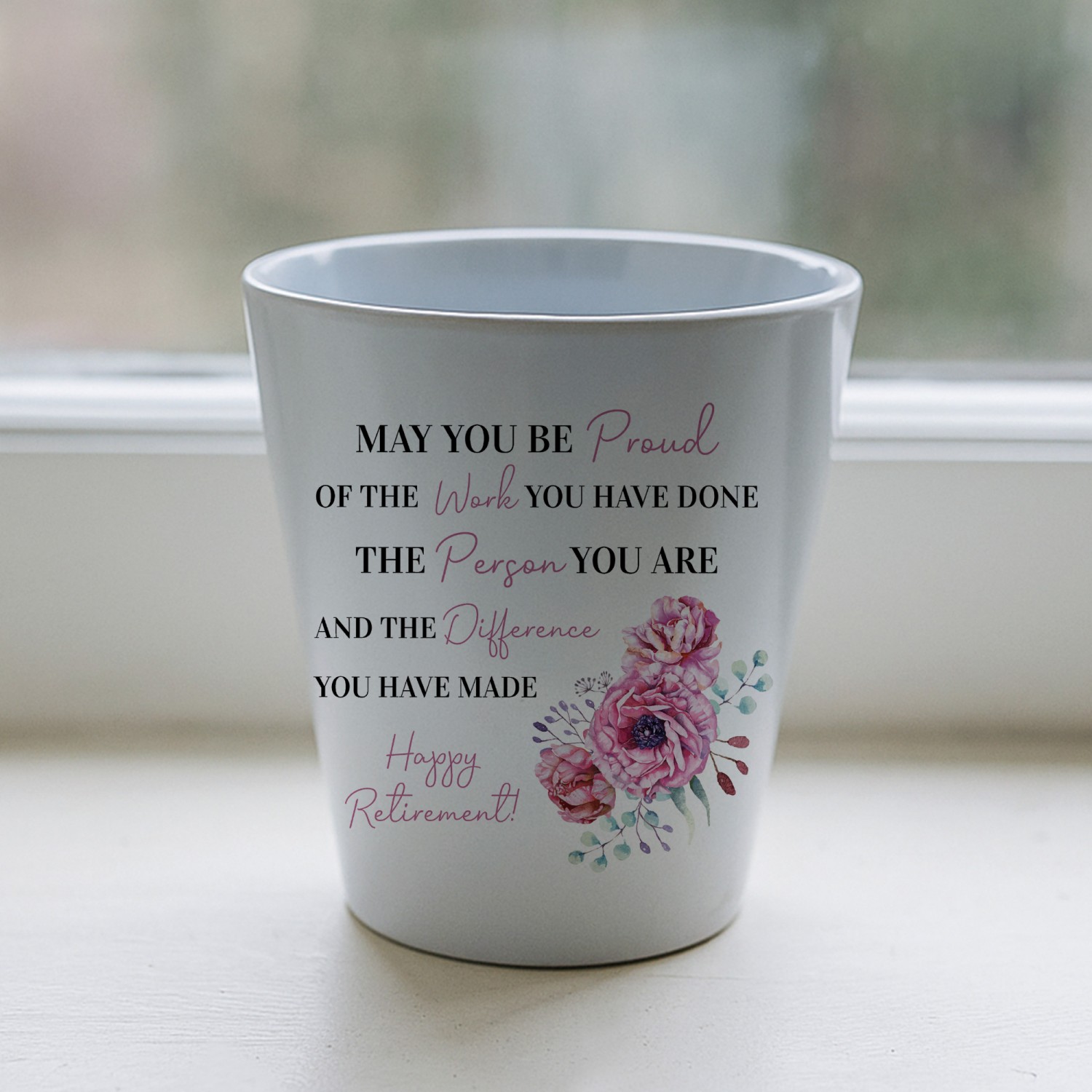 Celebrate the beginning of a new chapter with this elegant ceramic flower pot, a thoughtful blend of everyday charm and heartfelt meaning. Whether it's for a colleague, friend, or loved one, this gift is a blooming tribute to the dedication, growth, and memories they leave behind.