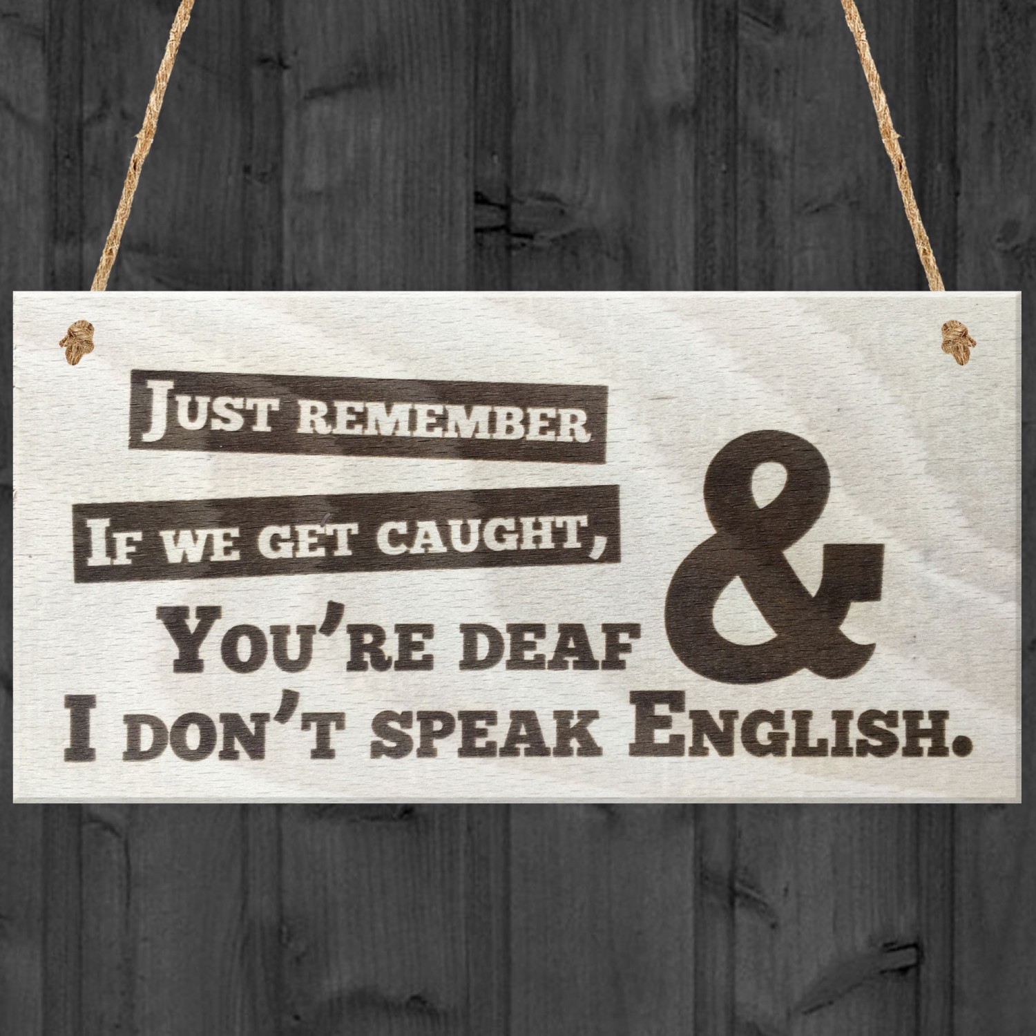 If We Get Caught You're Deaf & I Don't Speak English Plaque Sign