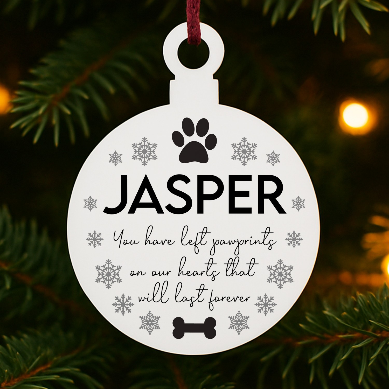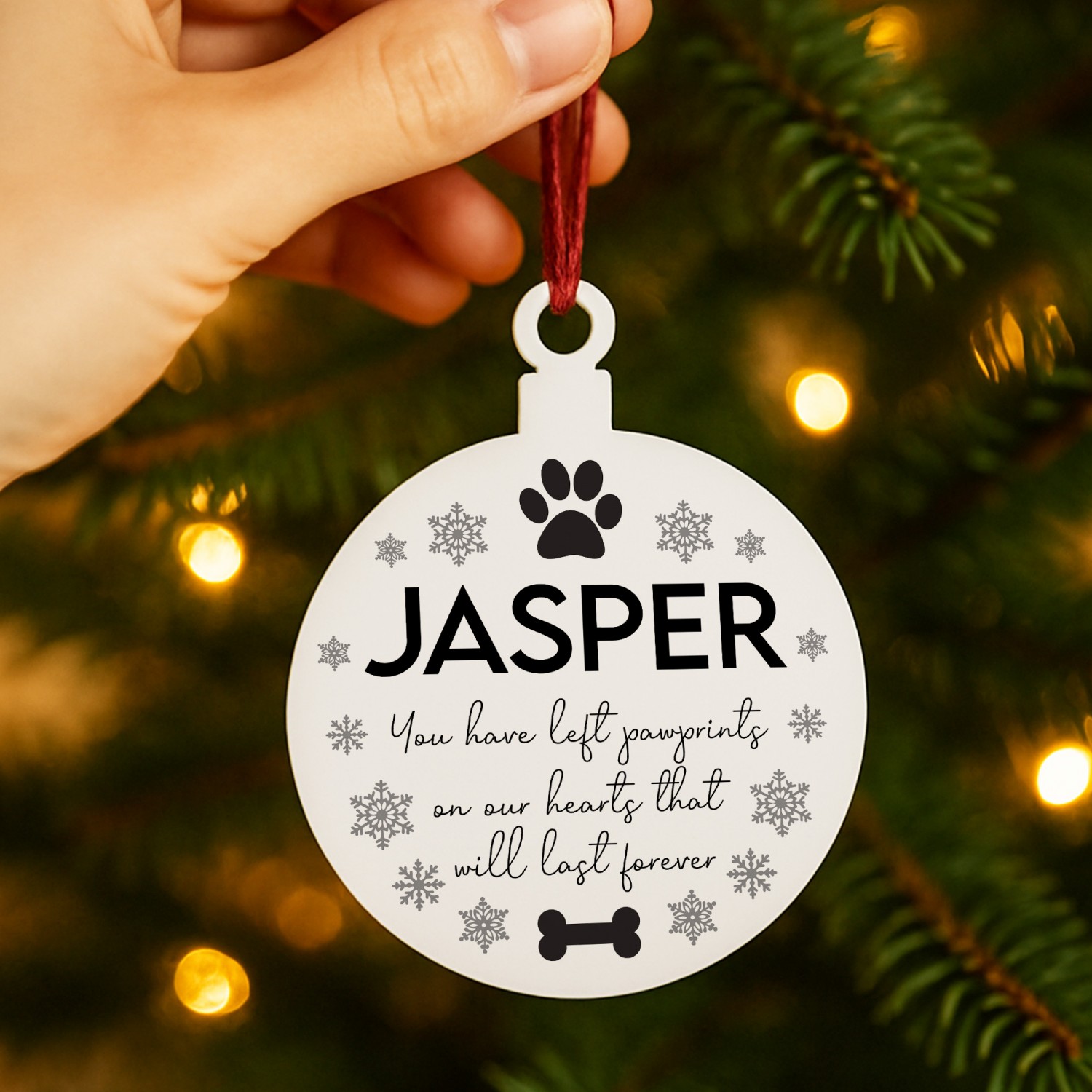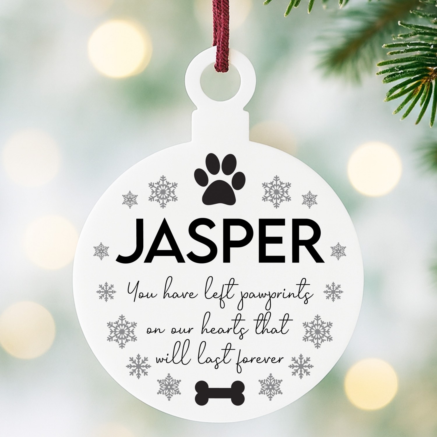 The thoughtful design features sweet paw prints and snowflakes, surrounding your pet's name and the year with a beautiful photo, making it a beautiful way to keep their presence close during the festive season. Perfect for remembering a much-loved companion, this ornament offers comfort and a lasting tribute that can be cherished year after year.