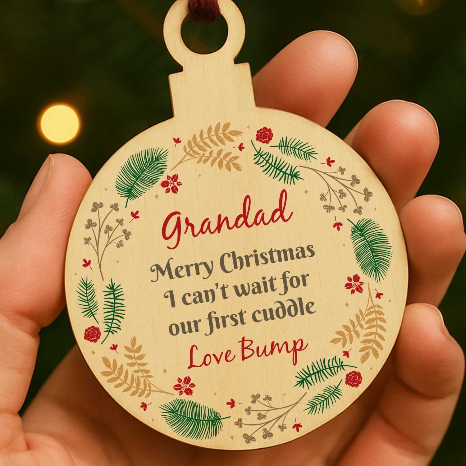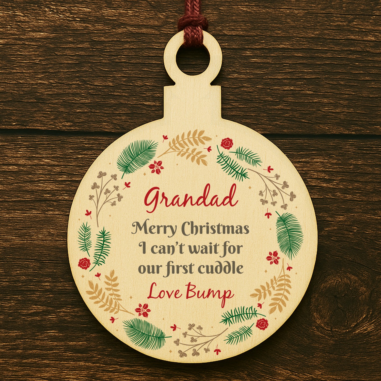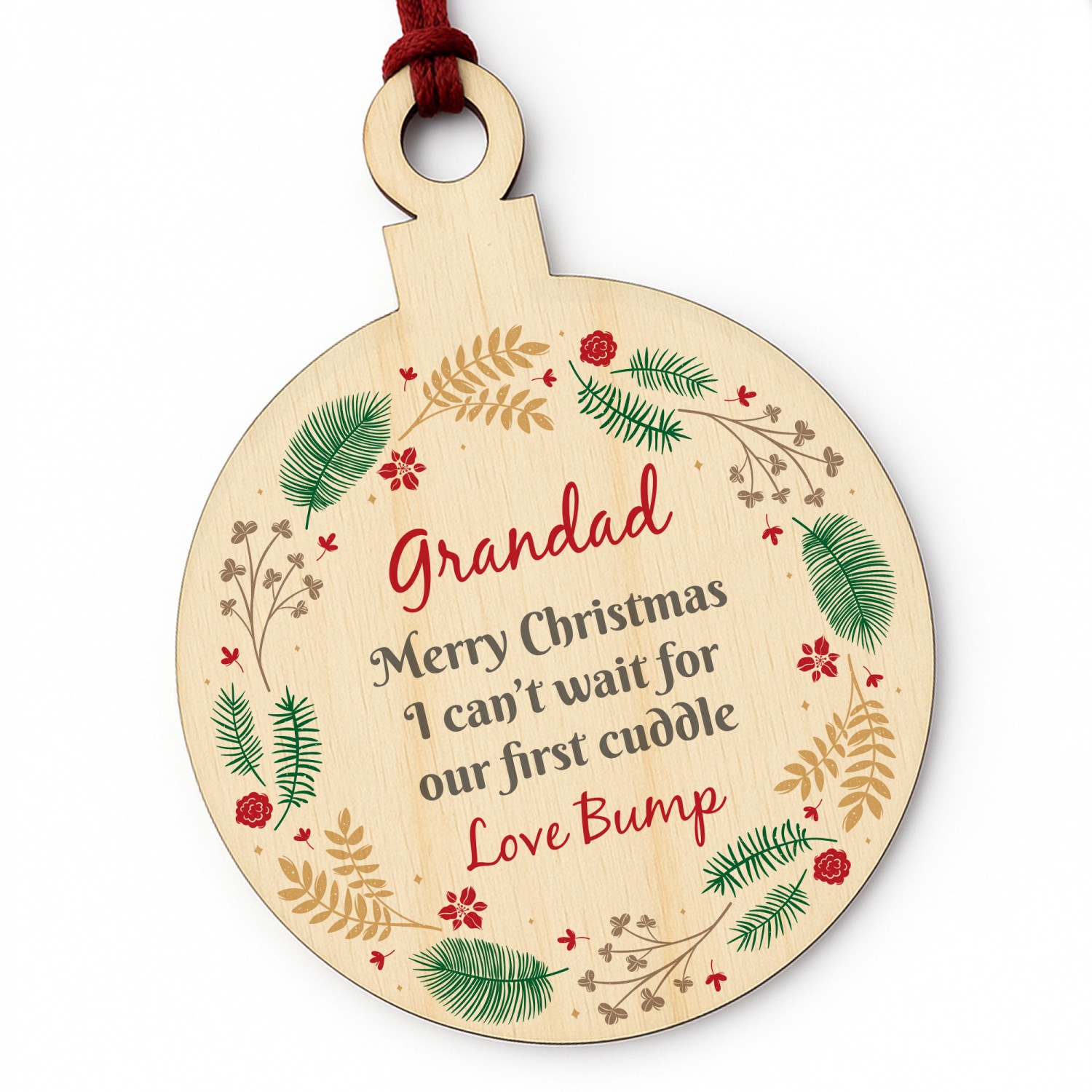 Merry Christmas Grandad To Be From Bump Wooden Bauble