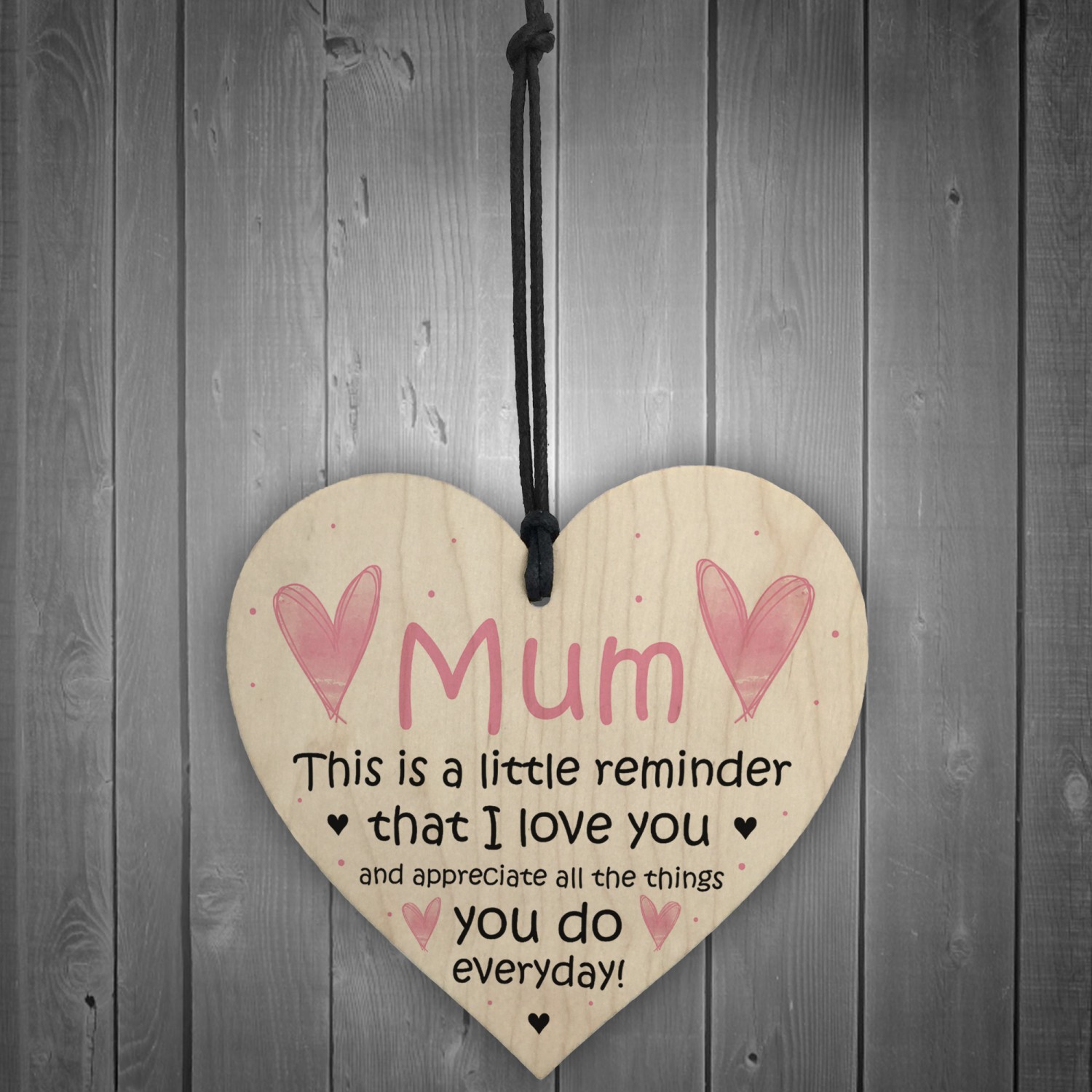 I Love You Mum Wood Heart Mothers Day Birthday Gift For Mum