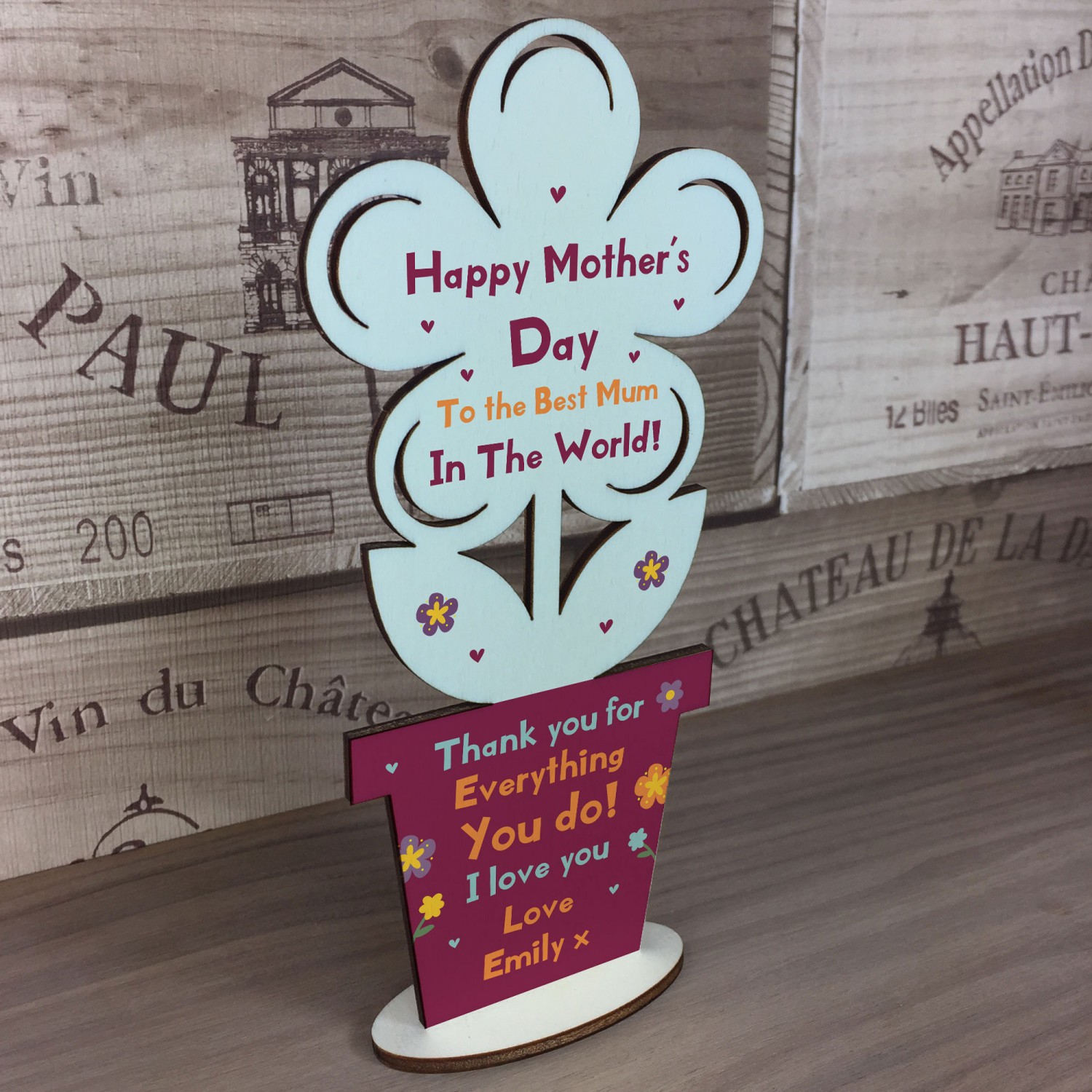 Love You Mum Gift For Mothers Day Wood Flower Bespoke Gift