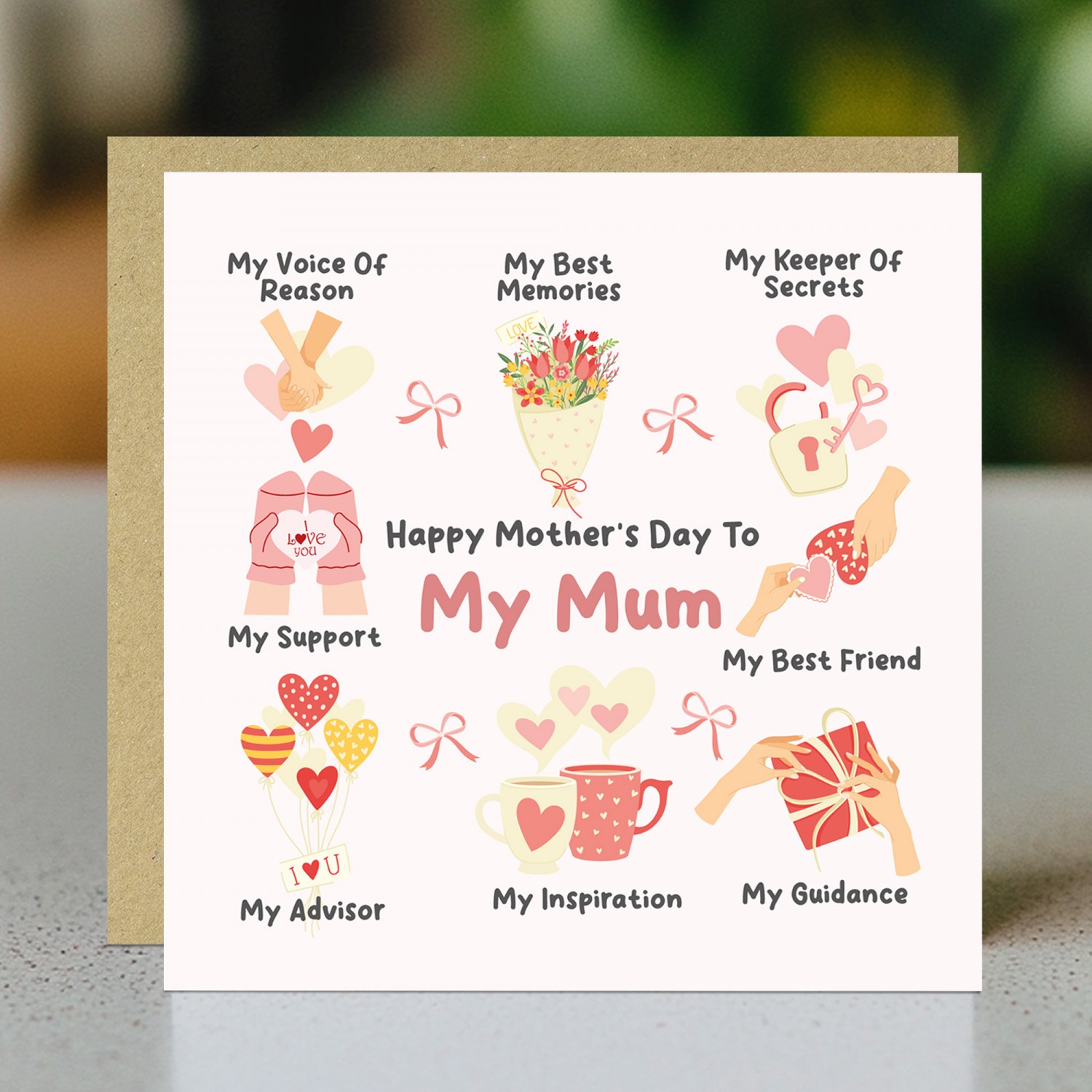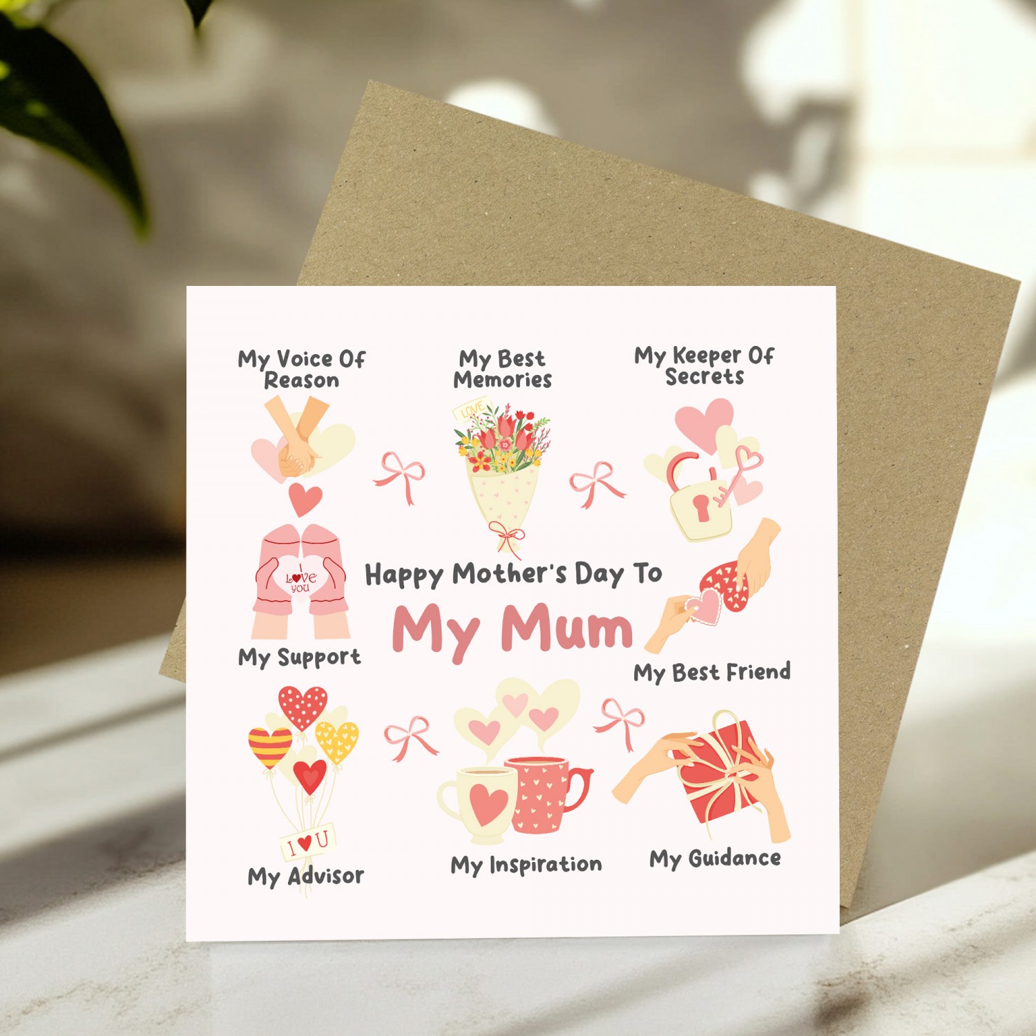 The blank interior gives you the freedom to add your own personalised message, making it the perfect choice for expressing your thoughts and feelings in a unique way. Paired with a stylish brown craft envelope, this card is suitable for Mothers Day!