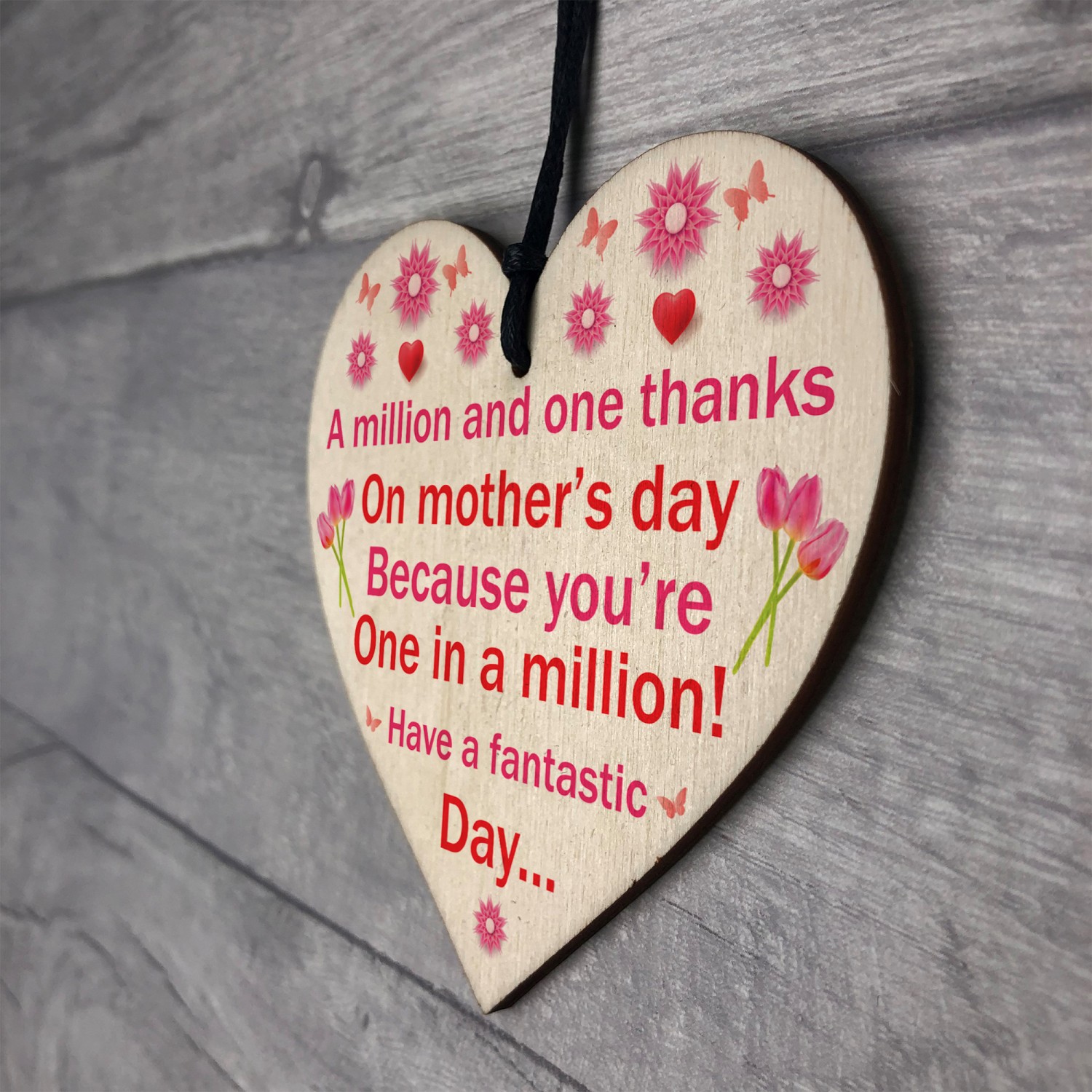 Mothers Day Million Thanks Wooden Heart Gift For Mum