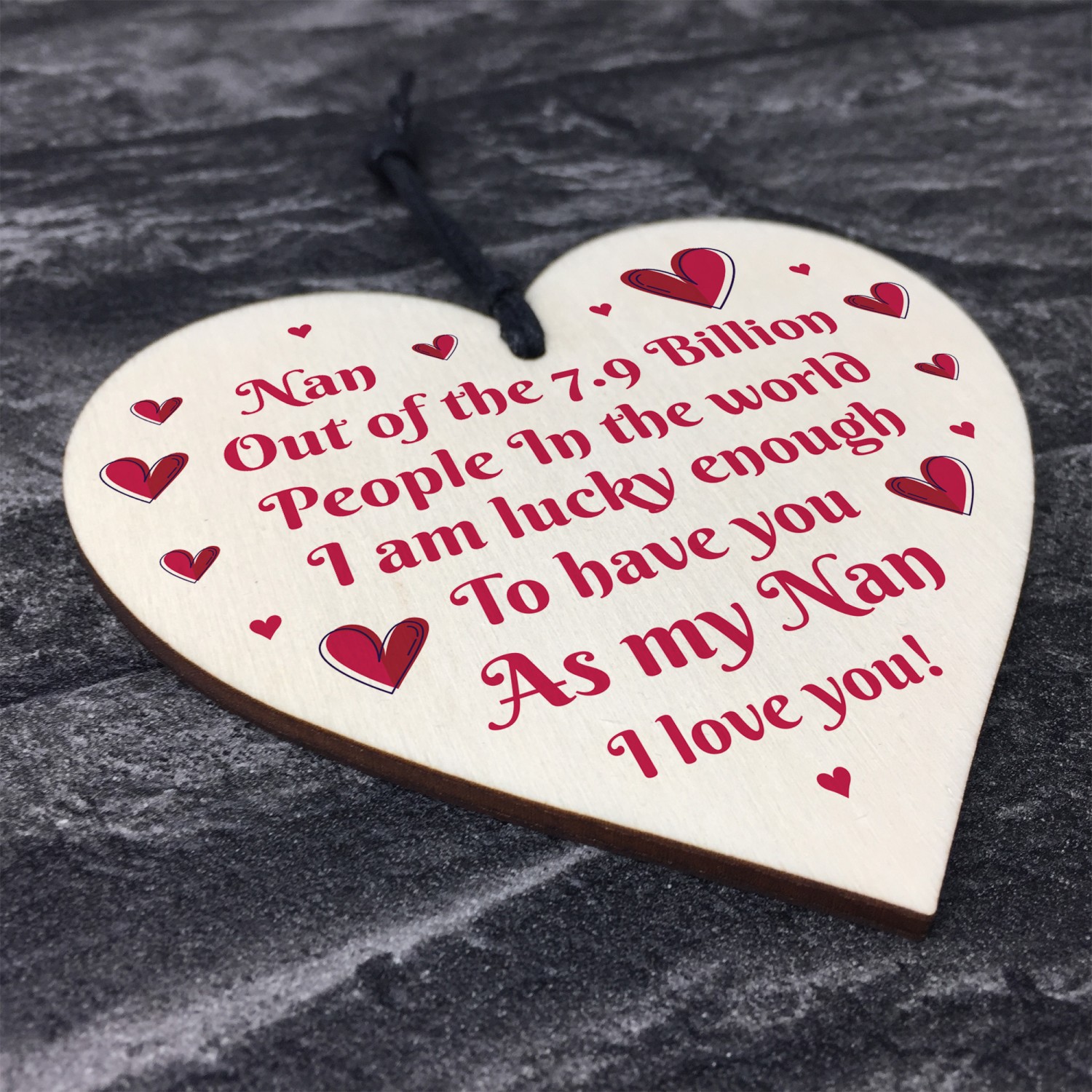 The sign is made from high quality, and the design is permanently printed into the heart. The wooden heart is supplied with waxed cotton rope in both black and red colours to allow easy hanging and looks great in any room of the house.