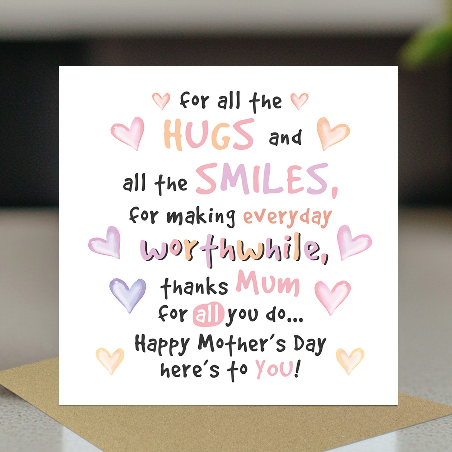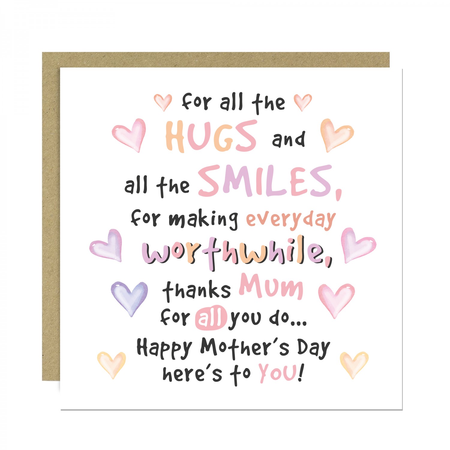 Thank You Card For Mum Happy Mothers Day Card With Kraft Enveloe