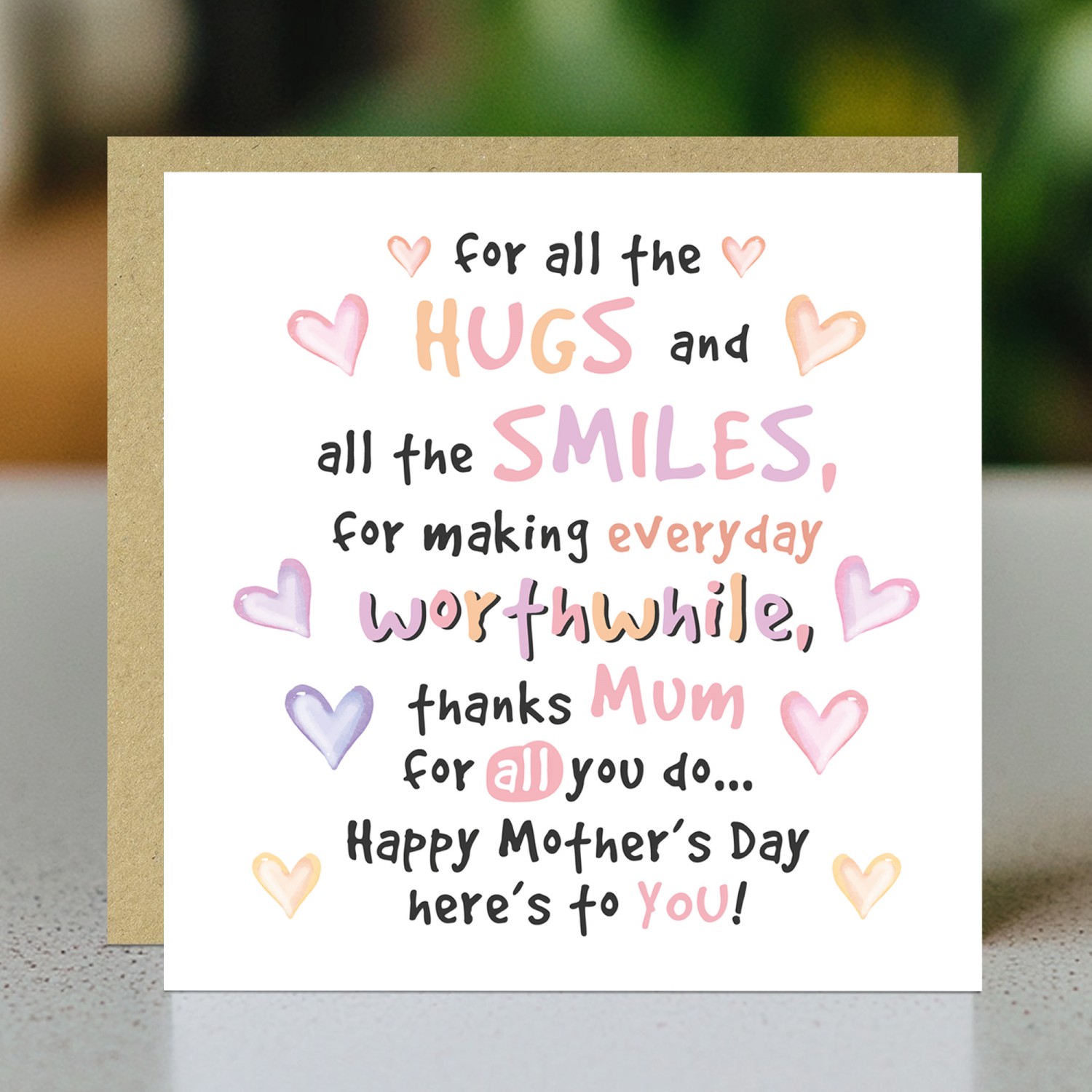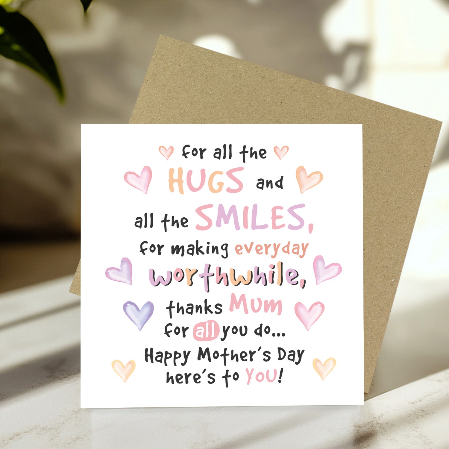 The blank interior gives you the freedom to add your own personalised message, making it the perfect choice for expressing your thoughts and feelings in a unique way. Paired with a stylish brown craft envelope, this card is suitable for Mother's Day