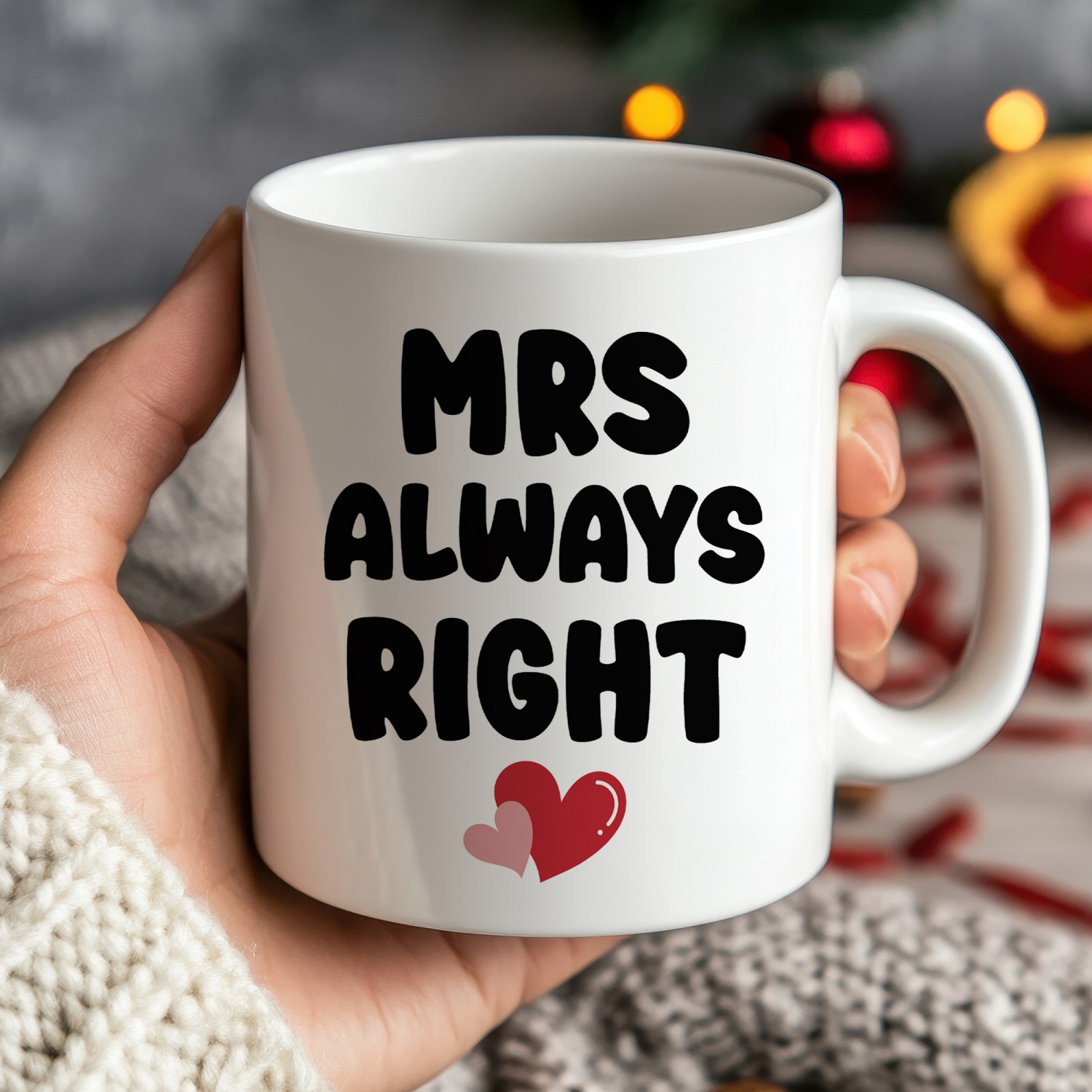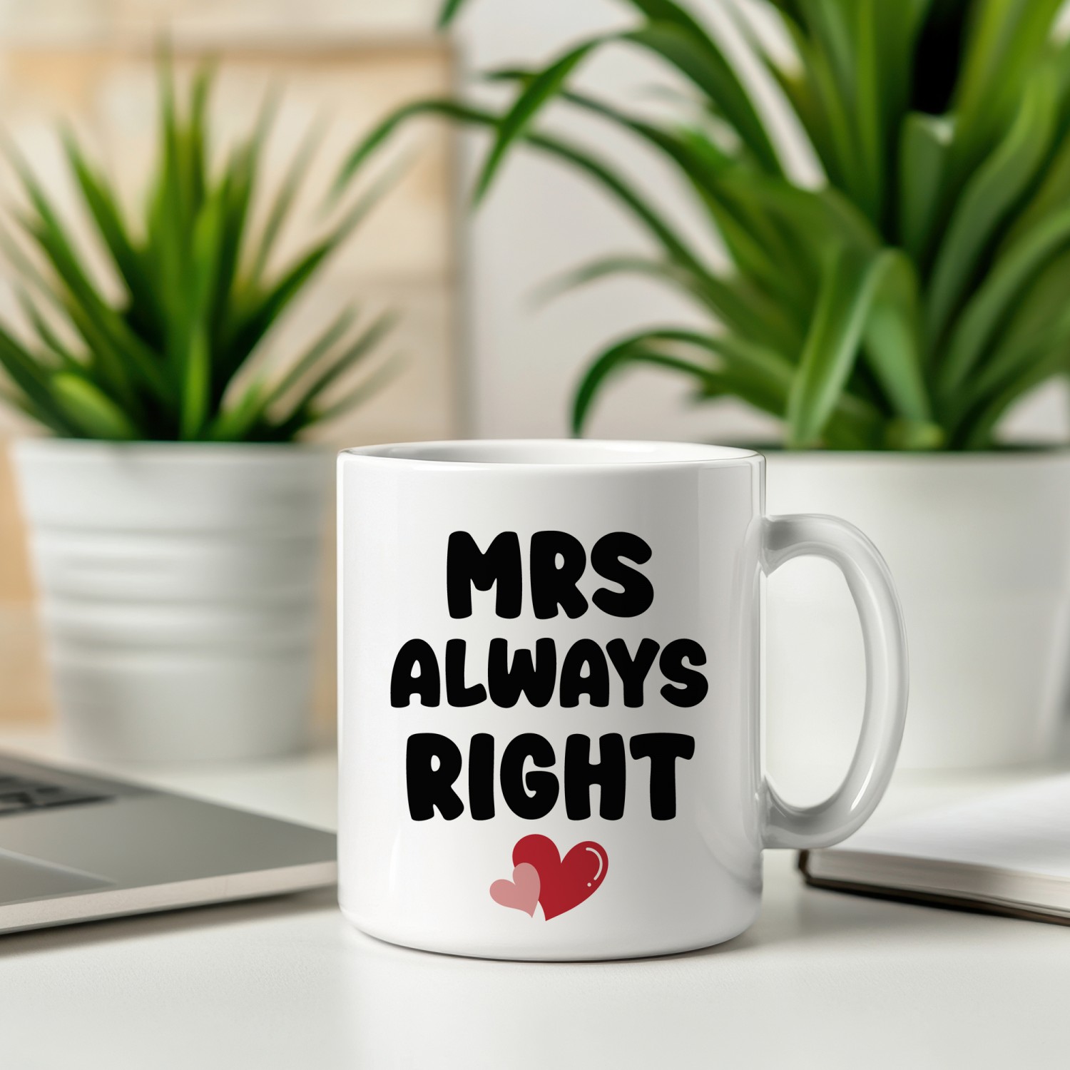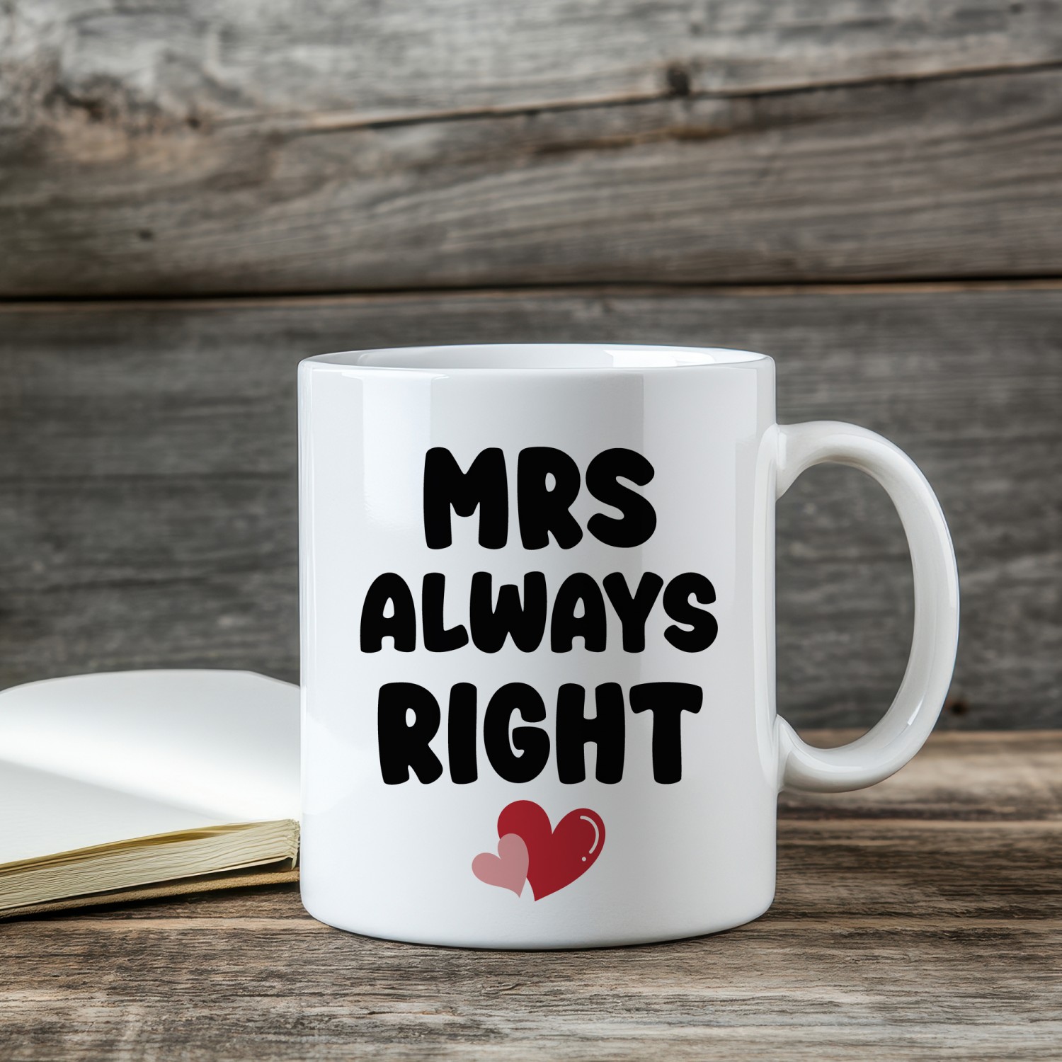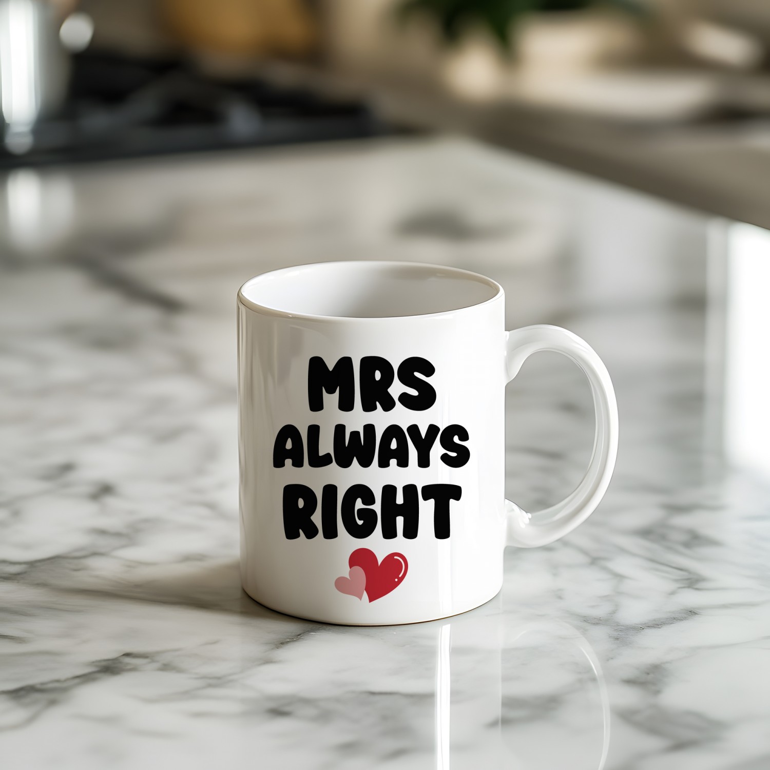 Celebrate her confidence, charm and unmistakable sense of humour with this delightful "Mrs Always Right" ceramic mug. Designed for the woman who knows exactly what she wants, this bold and playful mug adds instant personality to any kitchen, office desk or cosy coffee corner.