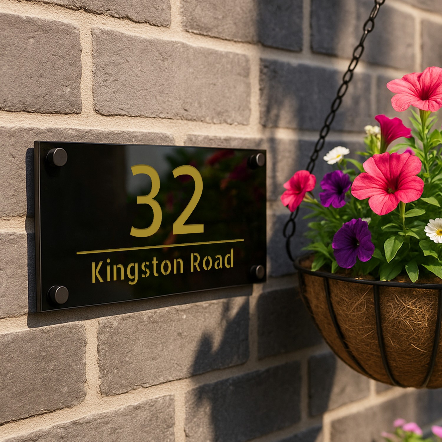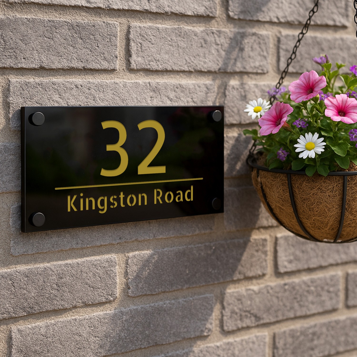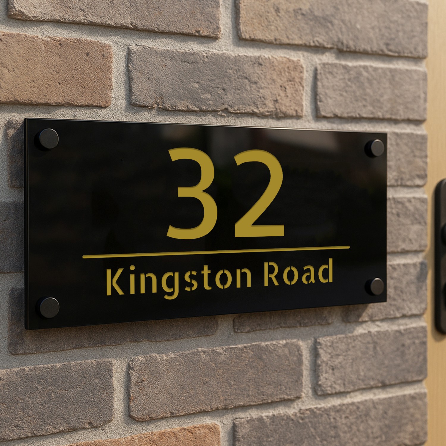 The laser cut 3D numbers and text ensure a crisp, professional finish, while the 4 matte black standoffs add a subtle yet sophisticated mounting detail. Designed for durability, this sign is weather-resistant, UV-protected, and built to withstand the British climate without fading or warping.