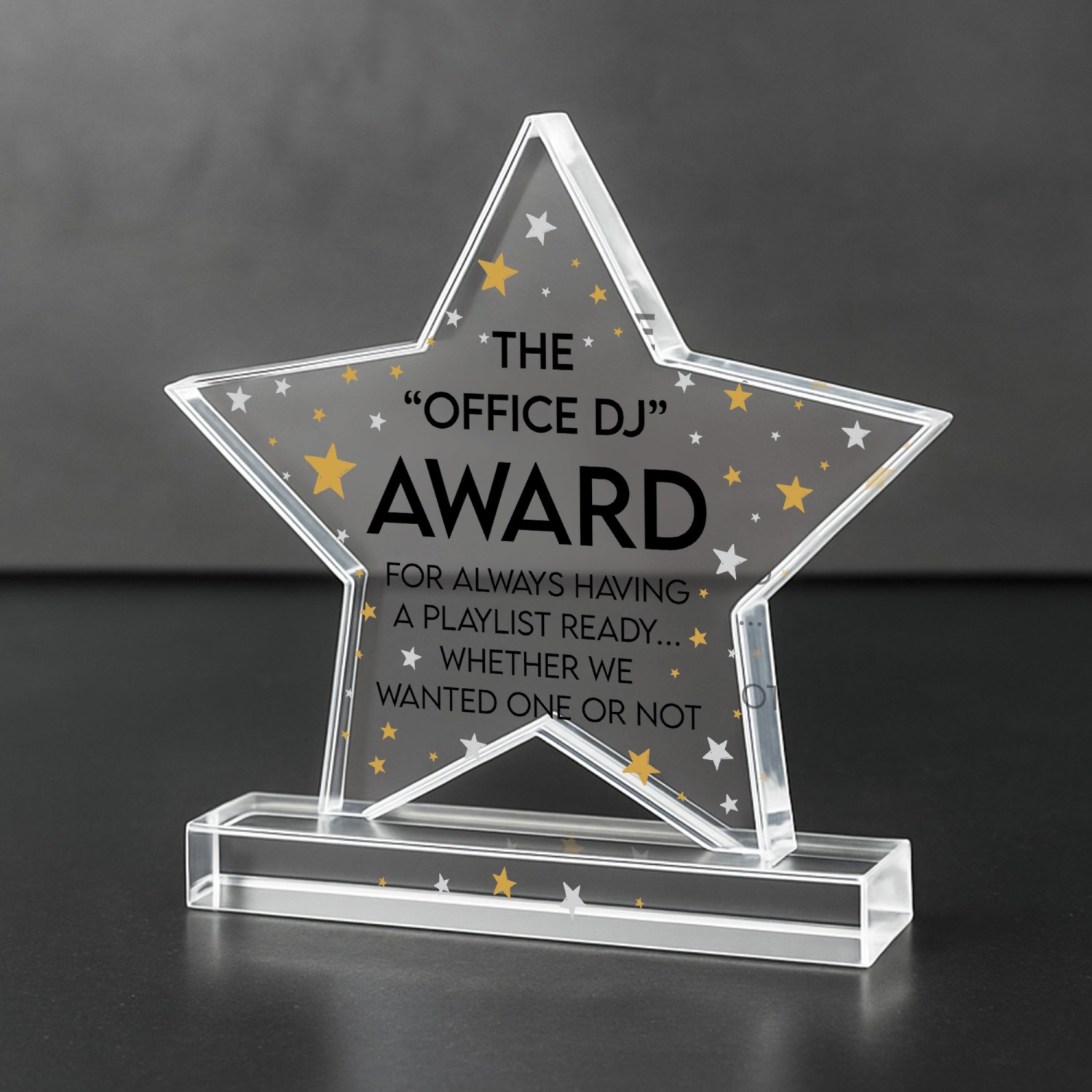 Celebrate a remarkable chapter with this elegant freestanding acrylic star plaque, a heartfelt way to honour the joy, memories and accomplishments that come with retirement. Expertly crafted from premium, crystal-clear acrylic, this 10cm by 10cm plaque stands proudly on its own thanks to a solid rectangular base, making it a charming addition to any home or office space.