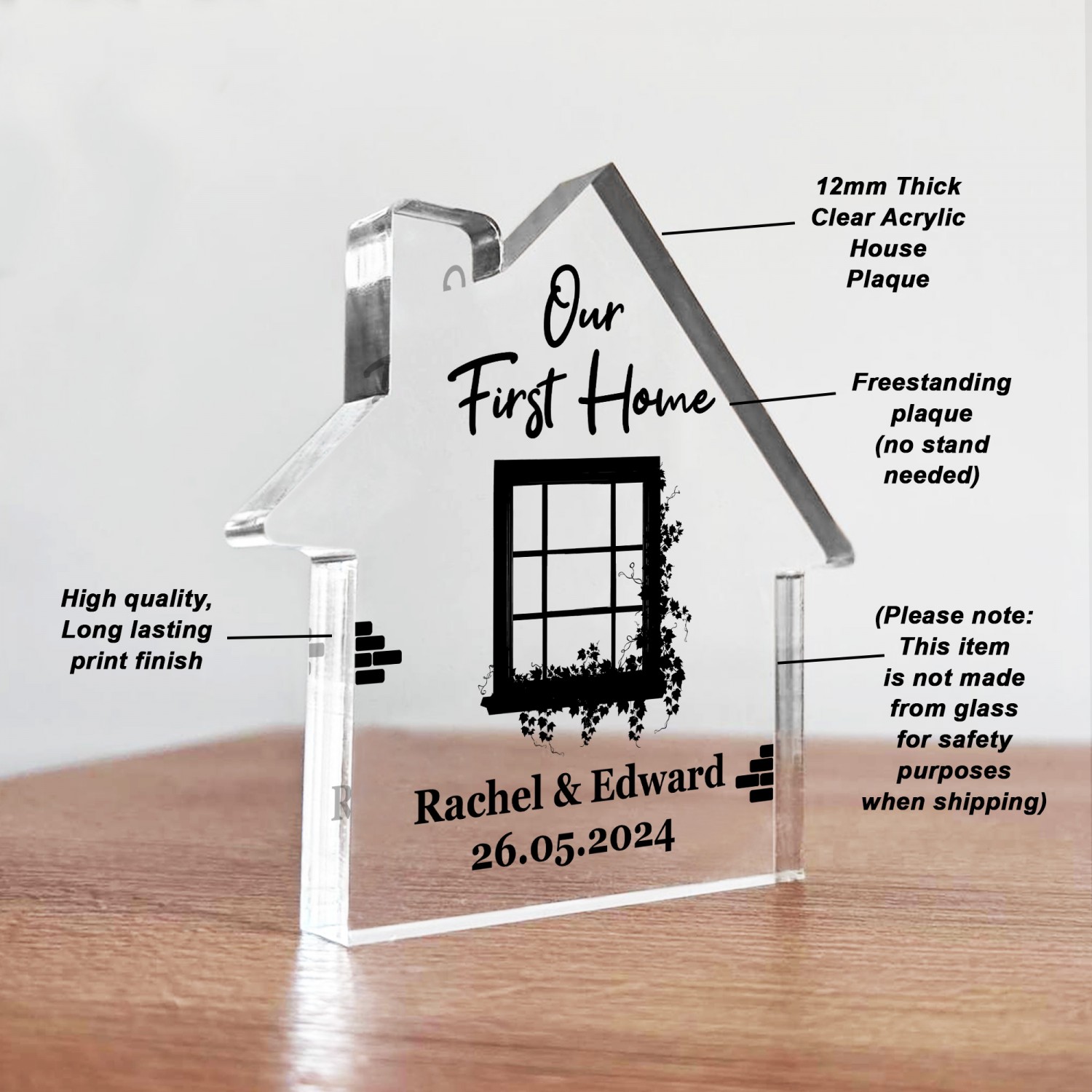 The high-quality acrylic material offers a crystal-clear finish, allowing the printed designs to stand out in any light. This keepsake not only adds charm to your decor but also holds sentimental value as a lasting symbol of togetherness. It�s the perfect choice for a housewarming gift, a meaningful family memento, or as a special addition to your own home � a beautiful reminder that home is where the heart is.