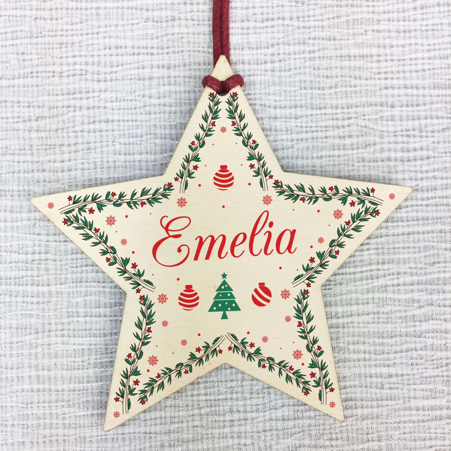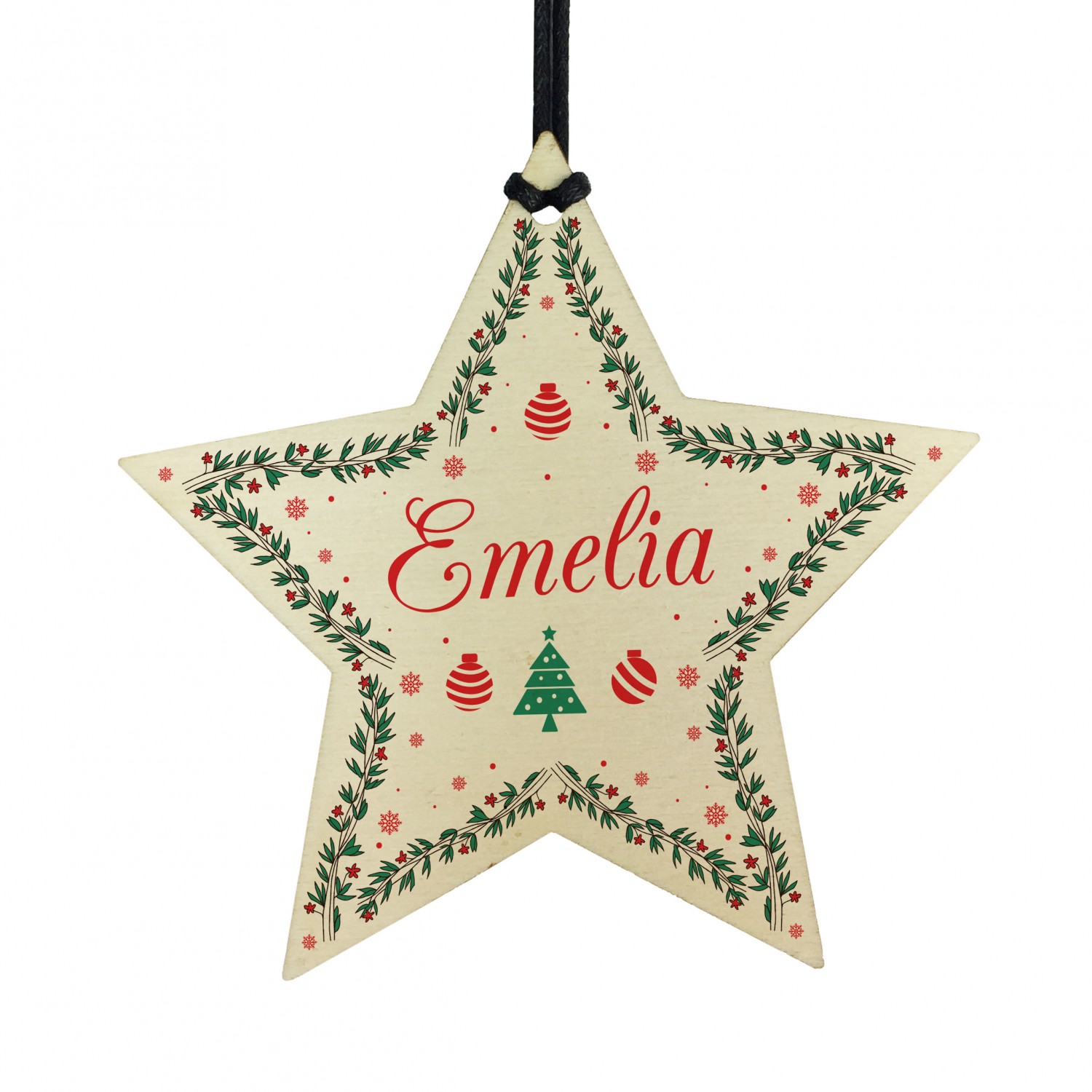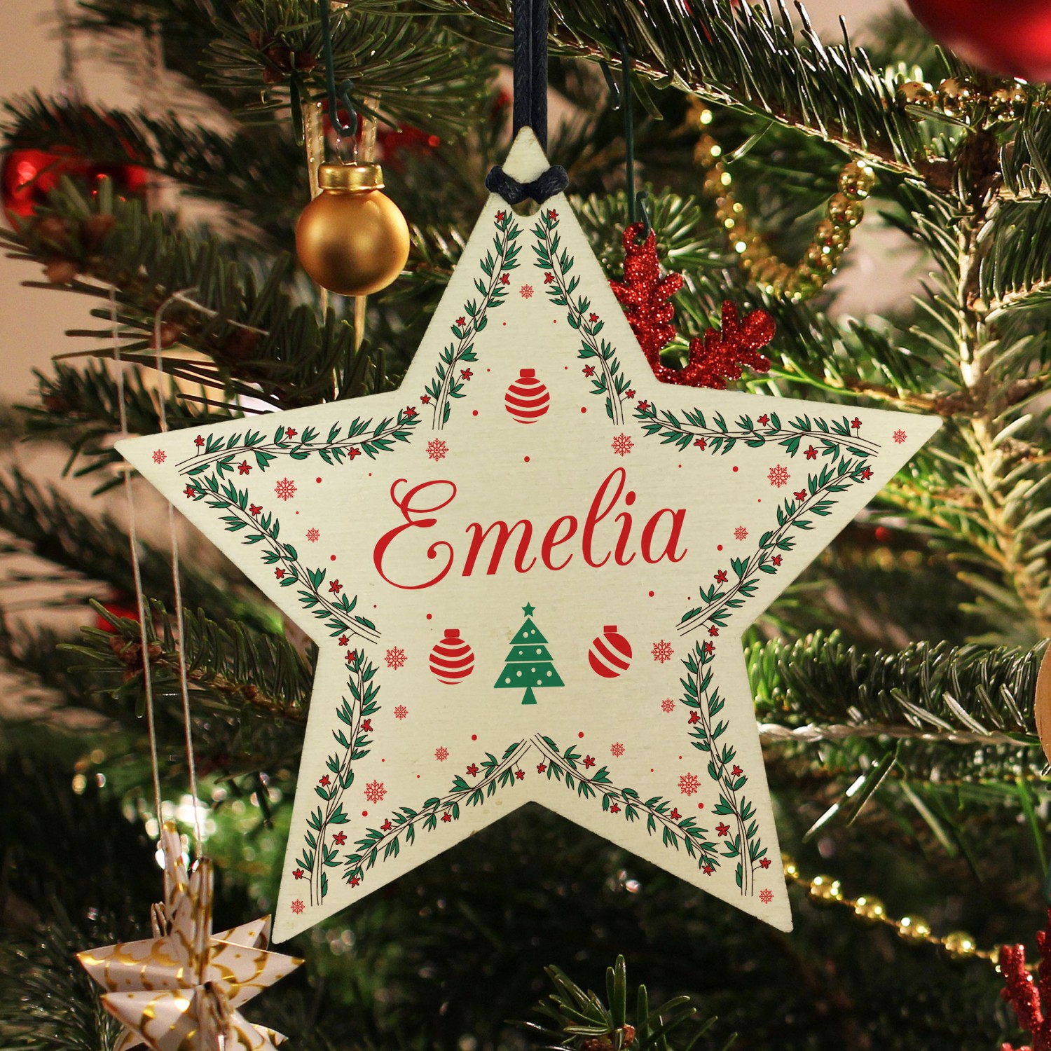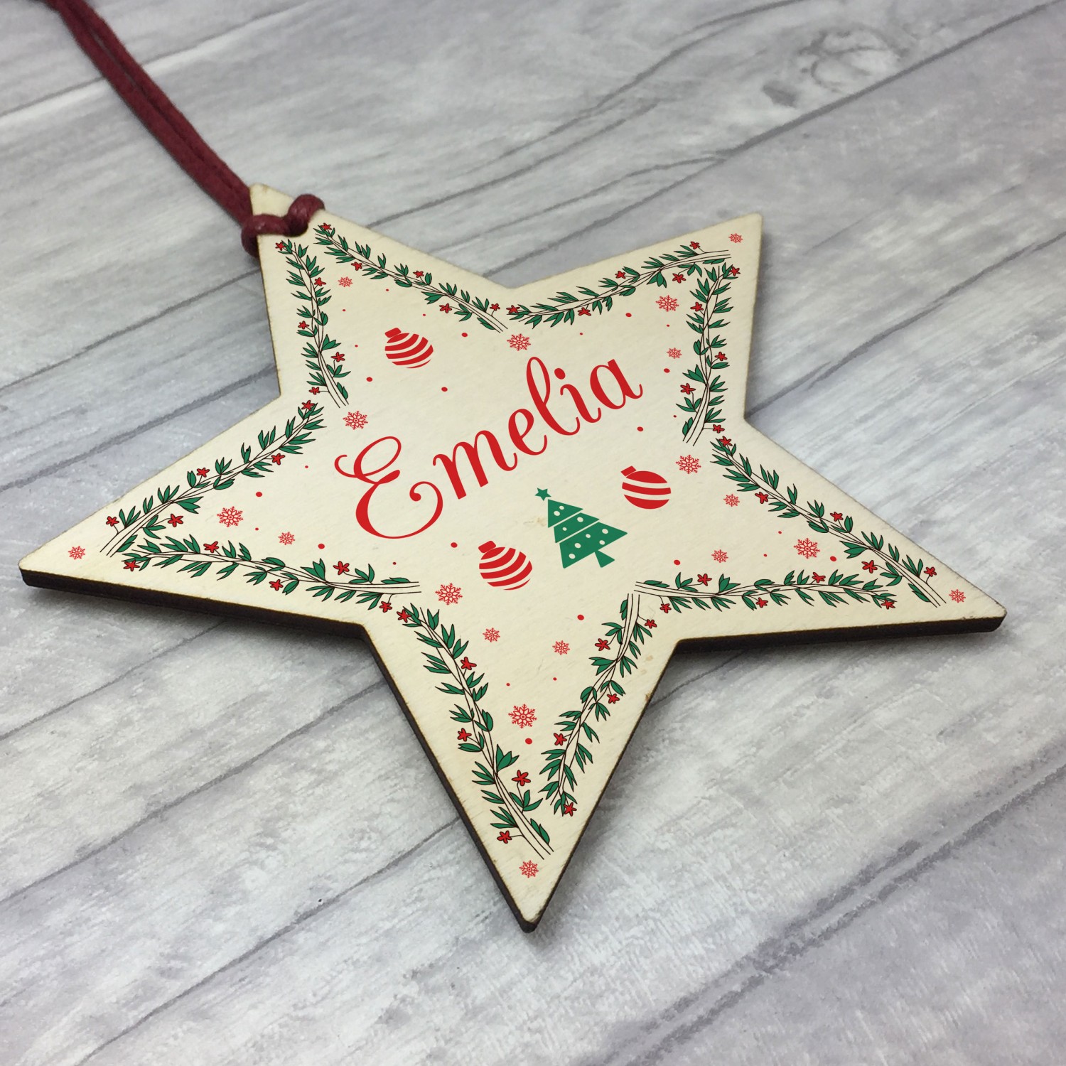 Personalised Baby's 1st Christmas Bauble Wooden Star Tree Decor