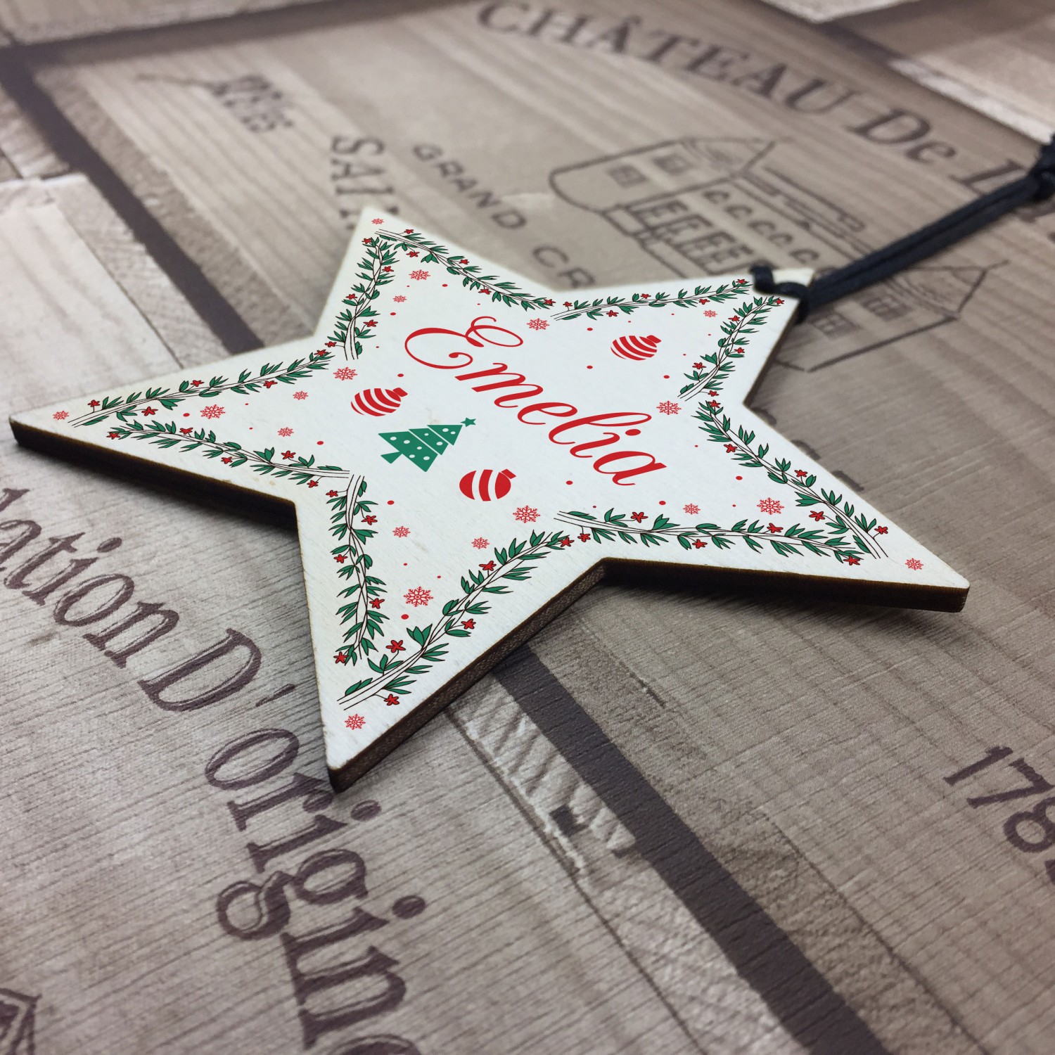 The sign is made from FSC Certified wood, and the design is permanently printed into the wood. The wooden star is supplied with waxed cotton rope to allow easy hanging and looks great in any room of the house.