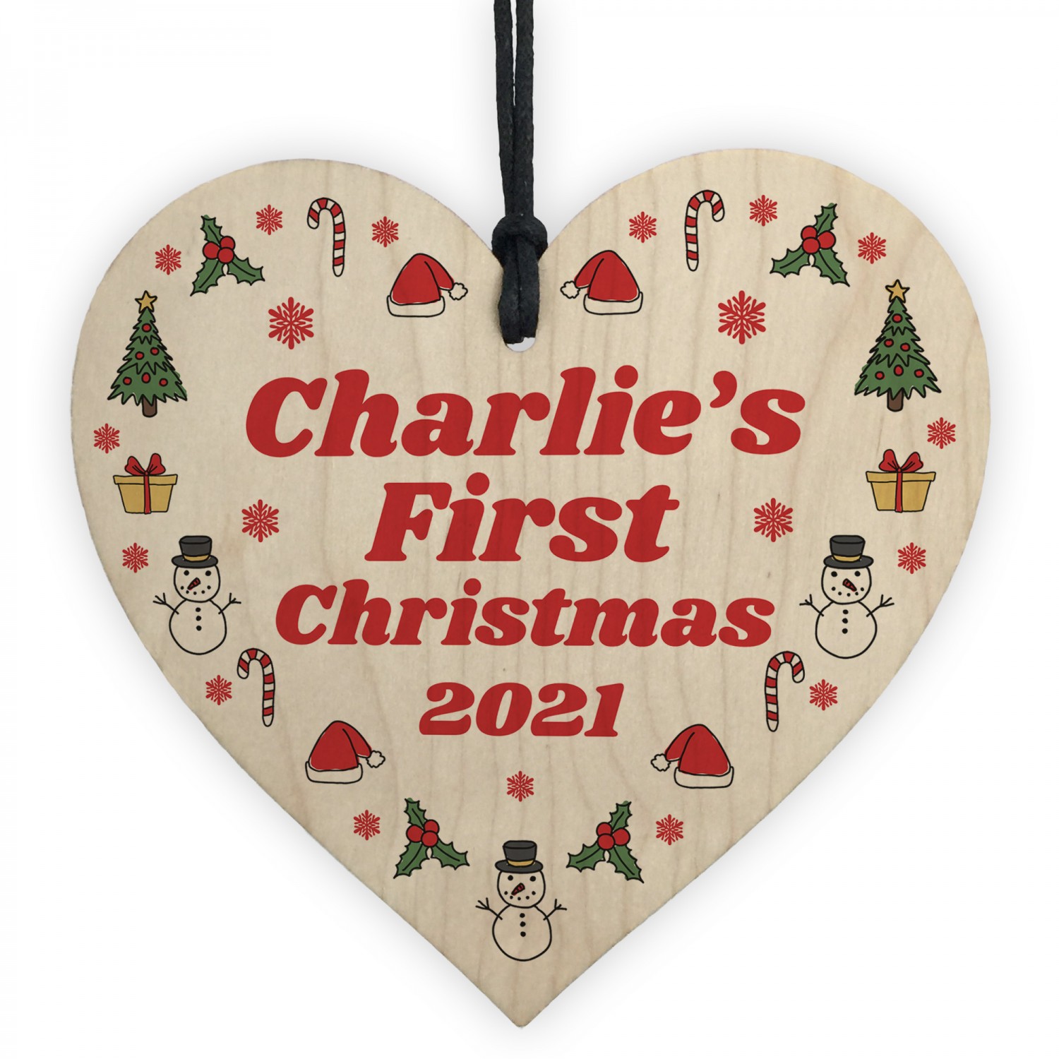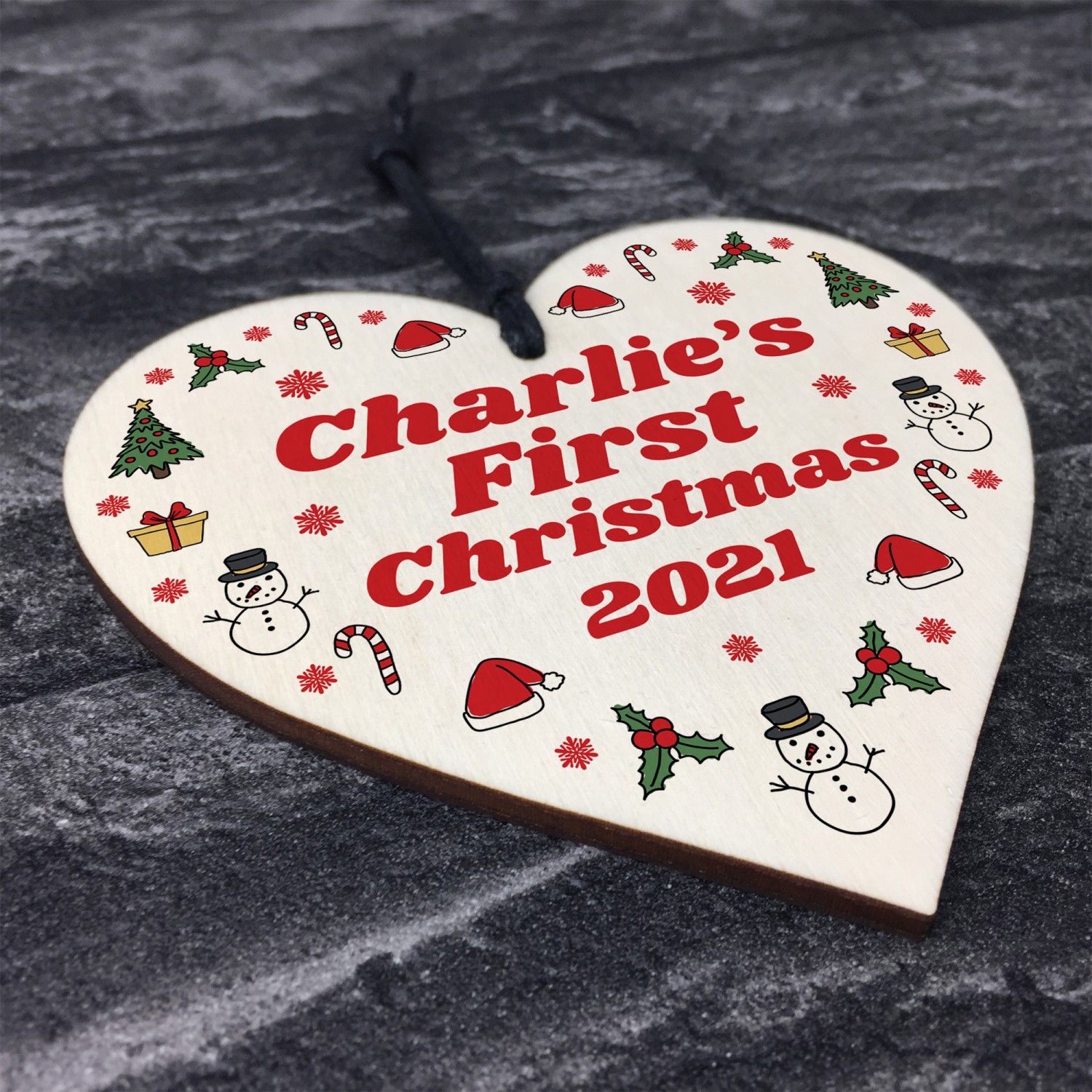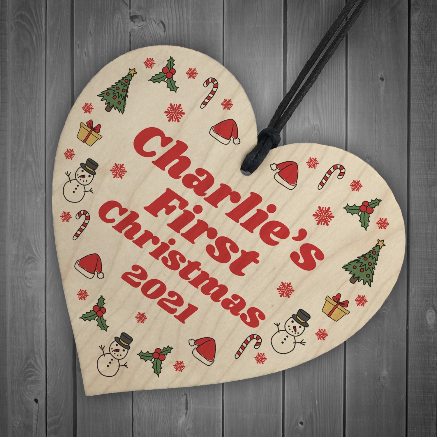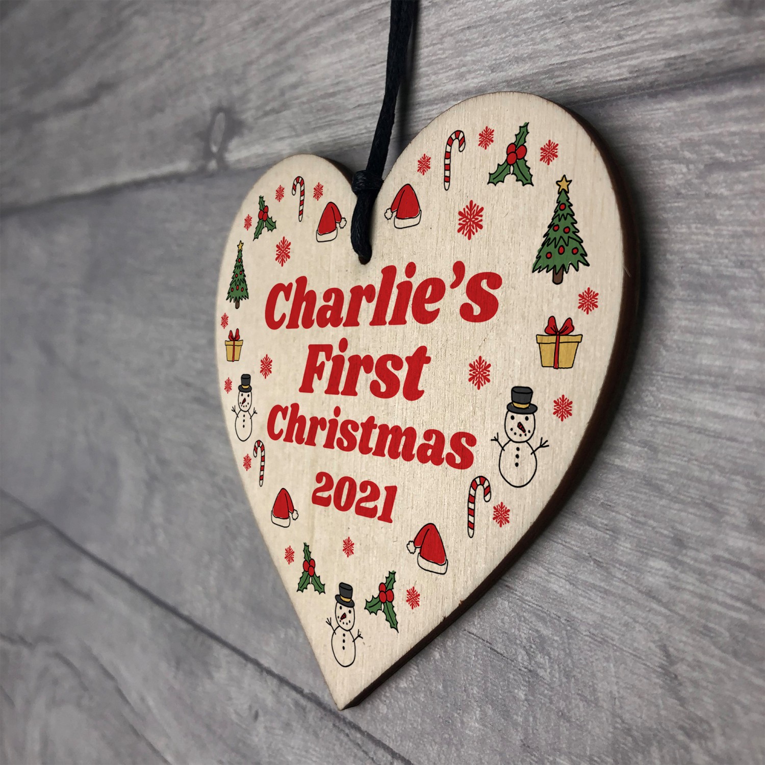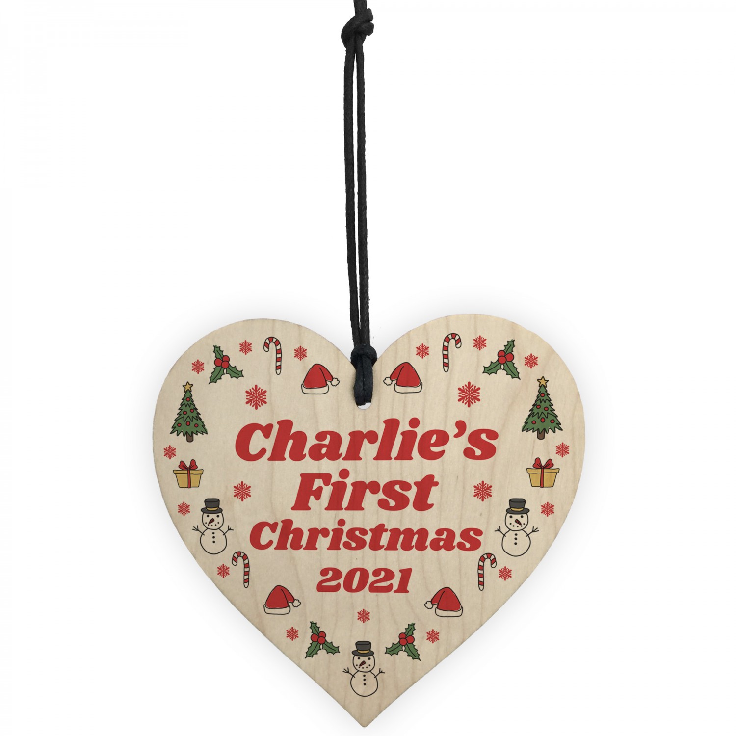 Personalised Baby's First 1st Christmas Bauble Wood Heart Decor