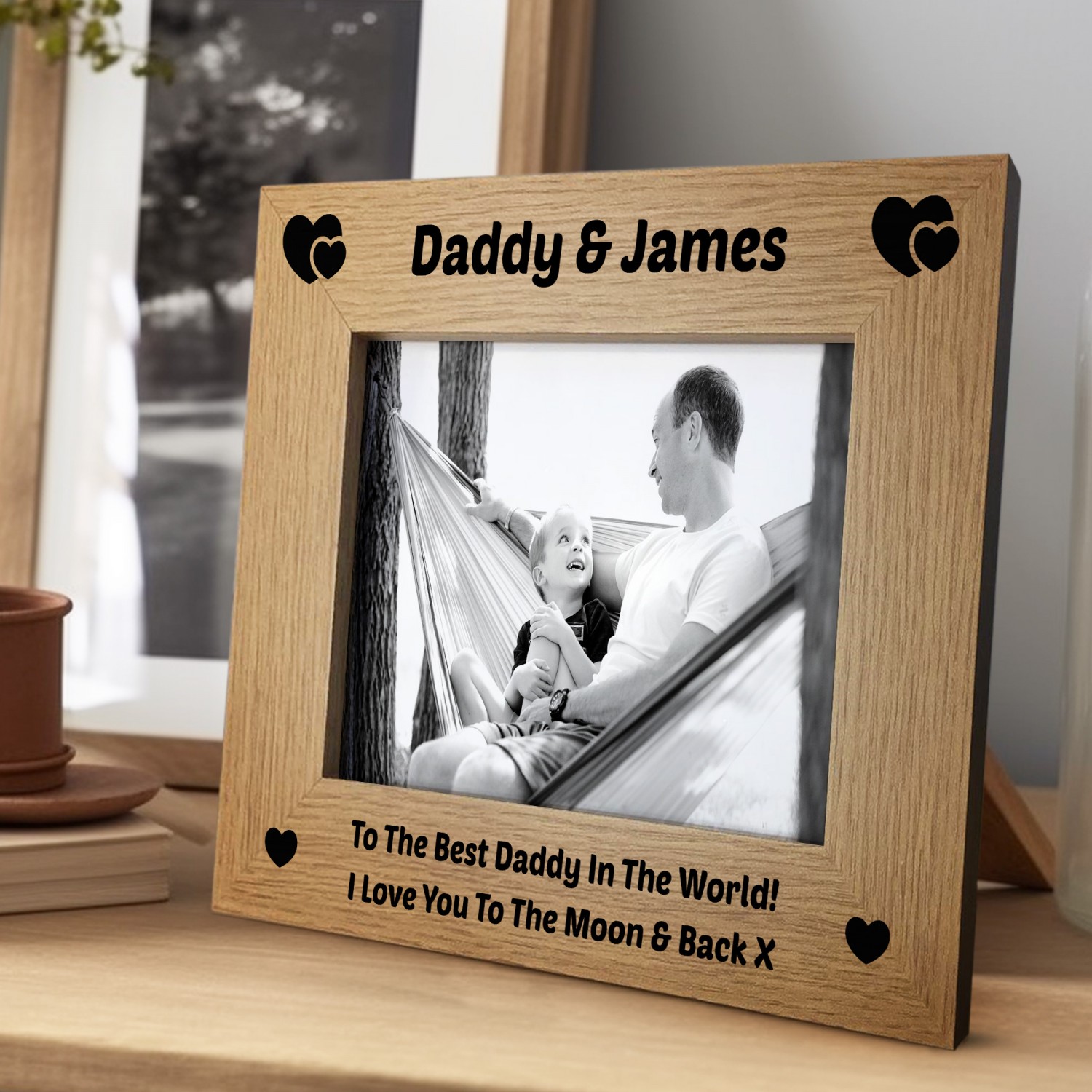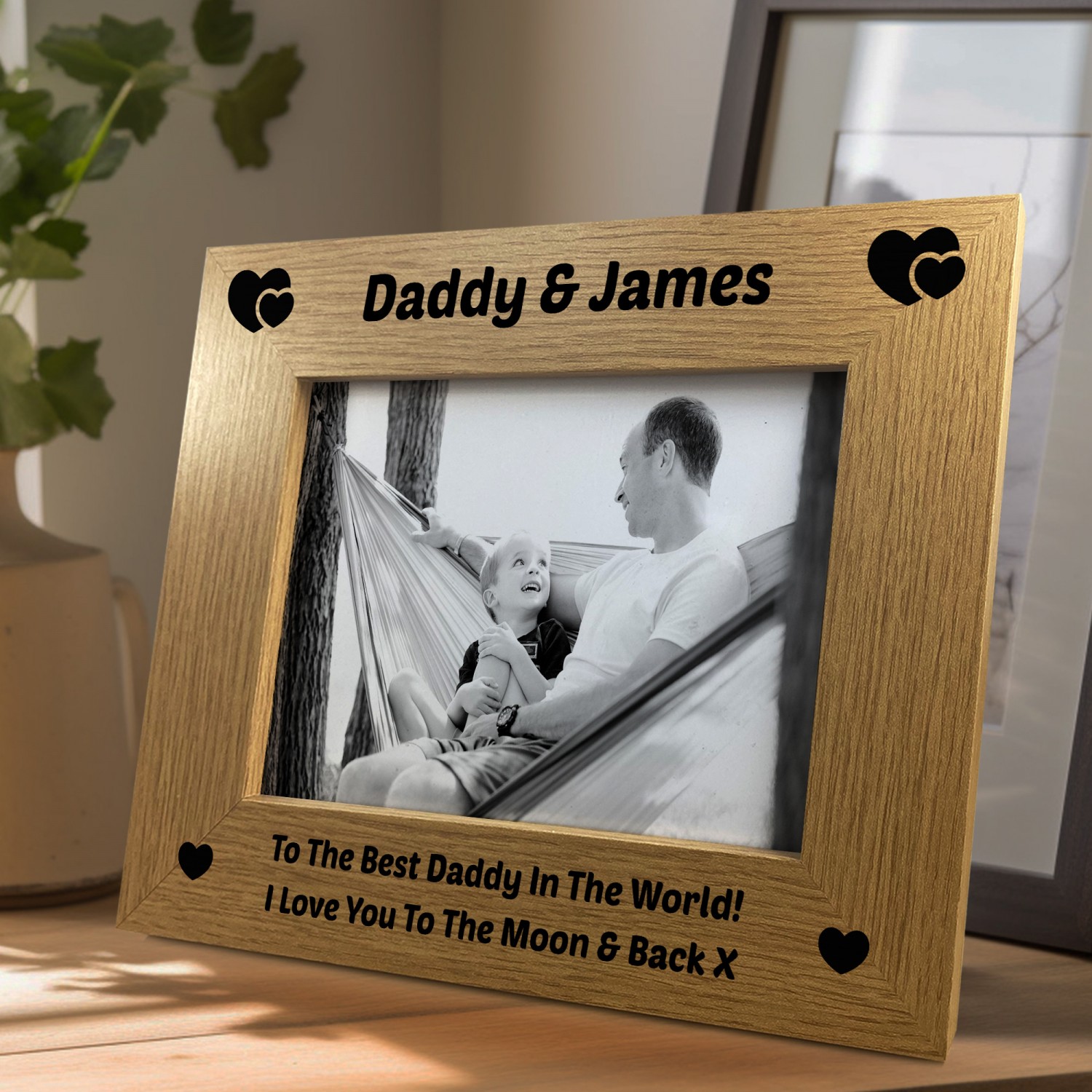 Additionally, our Wooden Oak Photo Frame can be customised, if the personalisation option is available. Embrace the opportunity to personalise this extraordinary piece by printing names, dates, or heartfelt messages onto the wood surface. The option to add a personal touch elevates this frame into a truly meaningful and heartfelt gift, making it perfect for weddings, anniversaries, graduations, or any other special occasion.