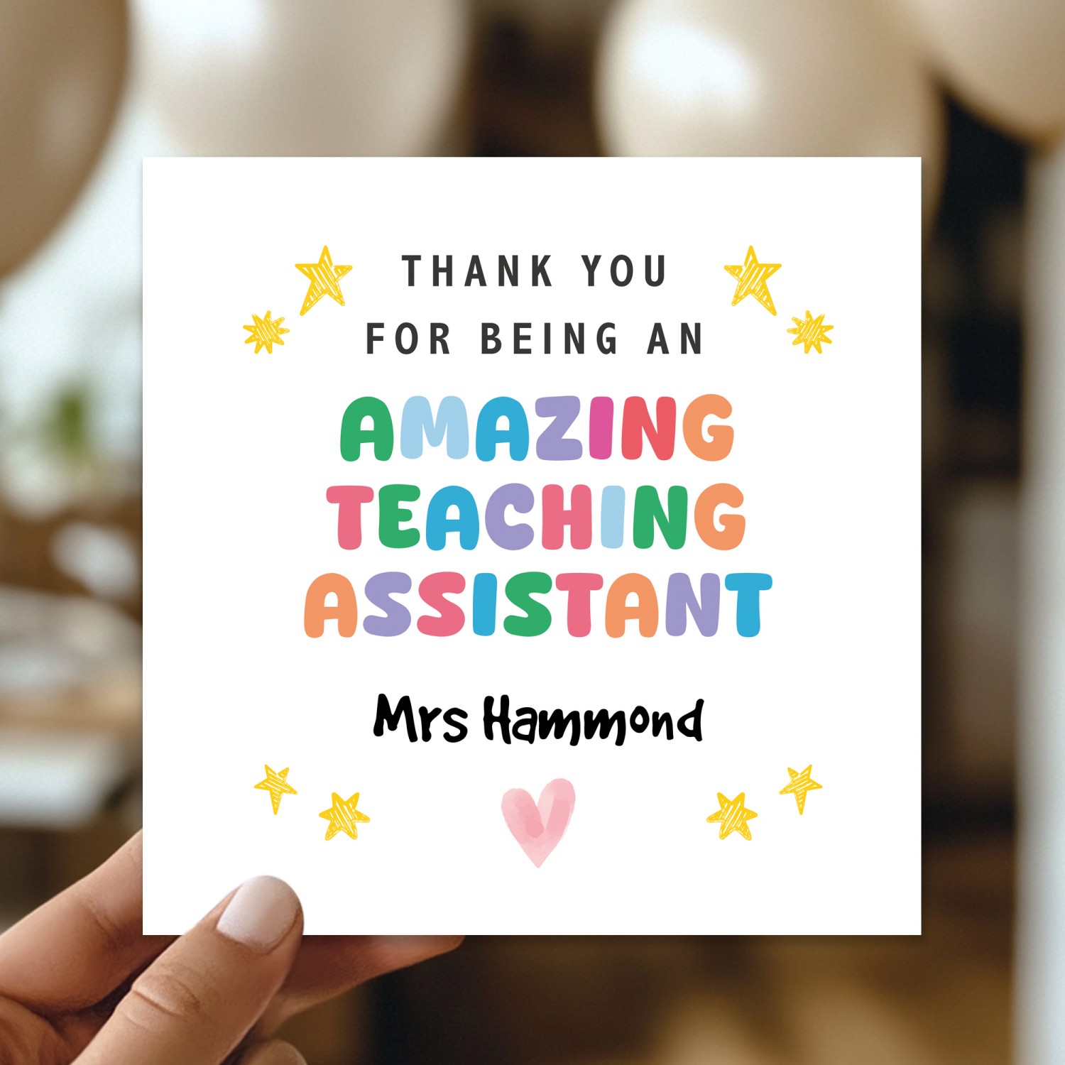 Personalised Card For Teaching Asisstant Leaving School Nursery