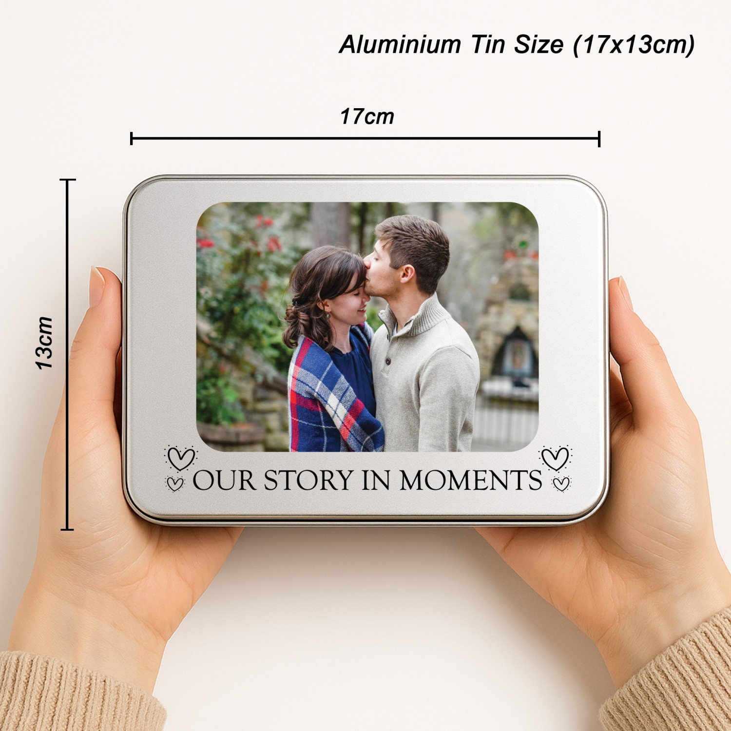 Personalisation is key with our product, allowing you to imprint your chosen photos, names, or dates onto the surface of the tin. Whether it's a cherished family portrait or a significant anniversary, our printing process ensures that your memories are beautifully showcased.