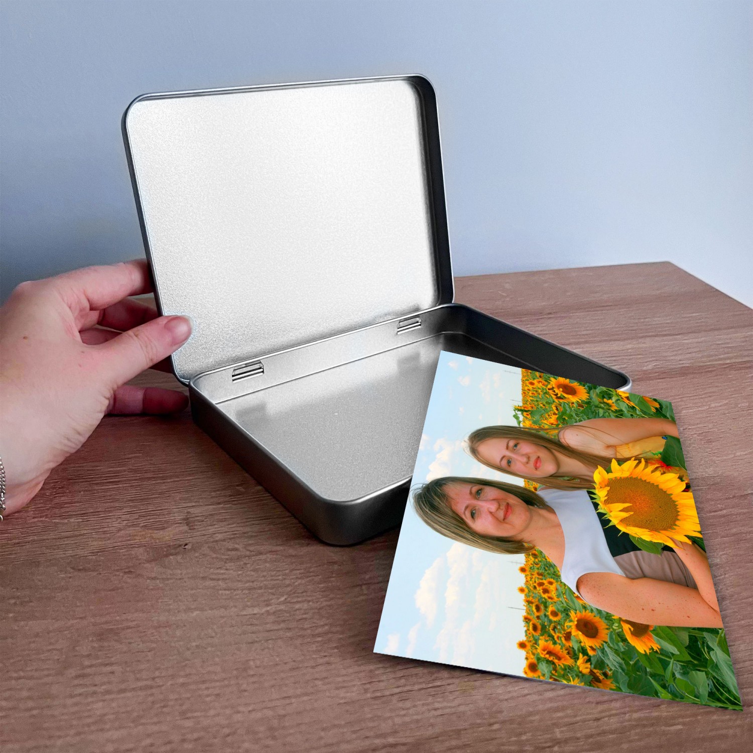 Personalisation is key with our product, allowing you to imprint your chosen photos, names, or dates onto the surface of the tin. Whether it's a cherished family portrait or a significant anniversary, our printing process ensures that your memories are beautifully showcased.