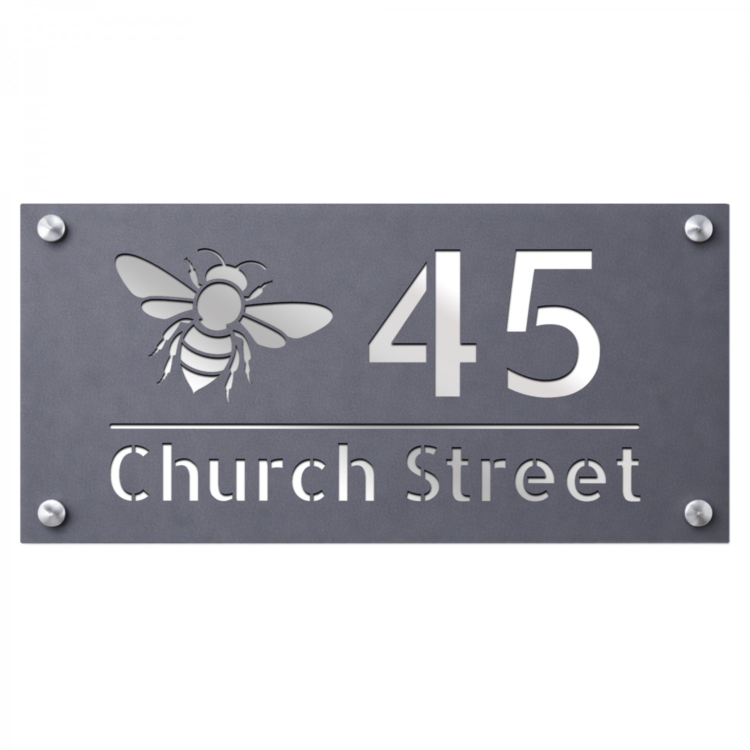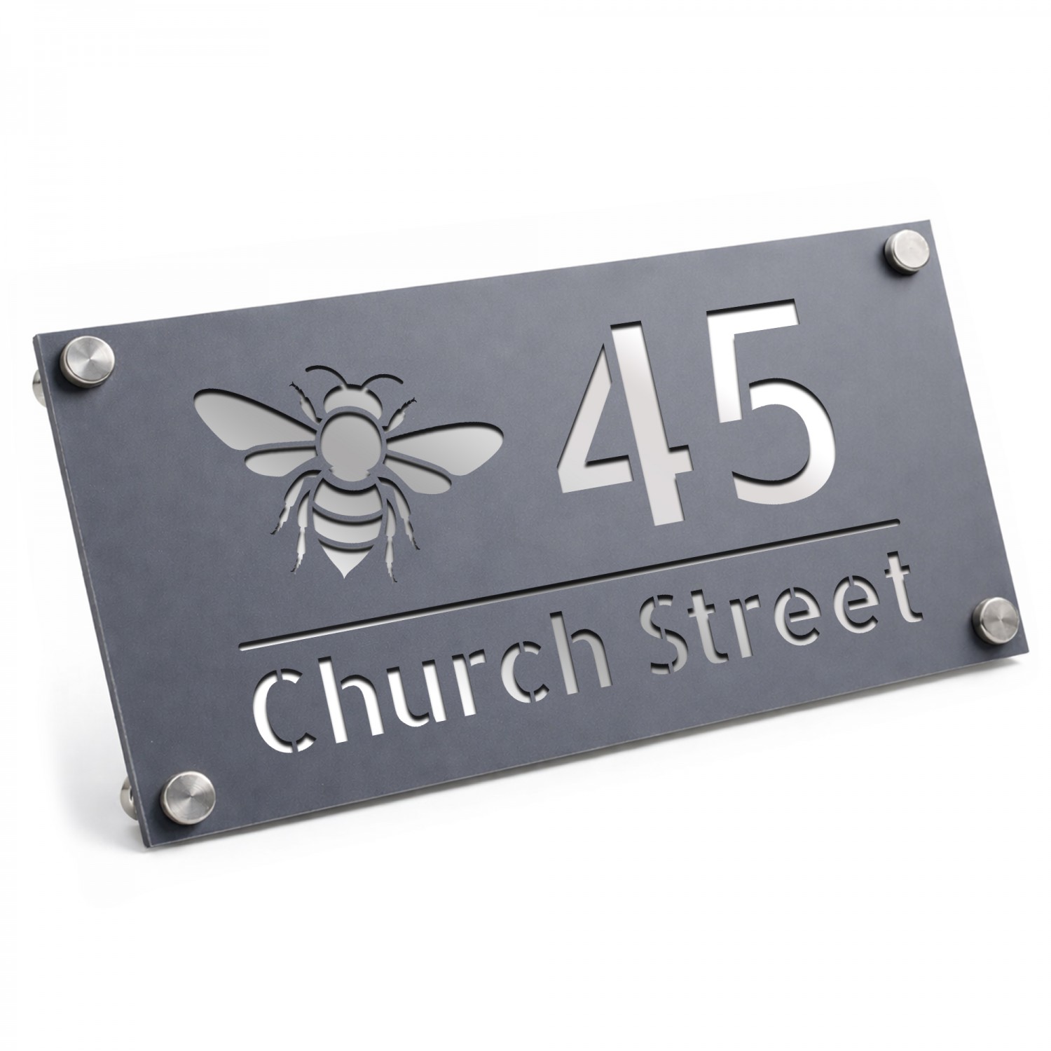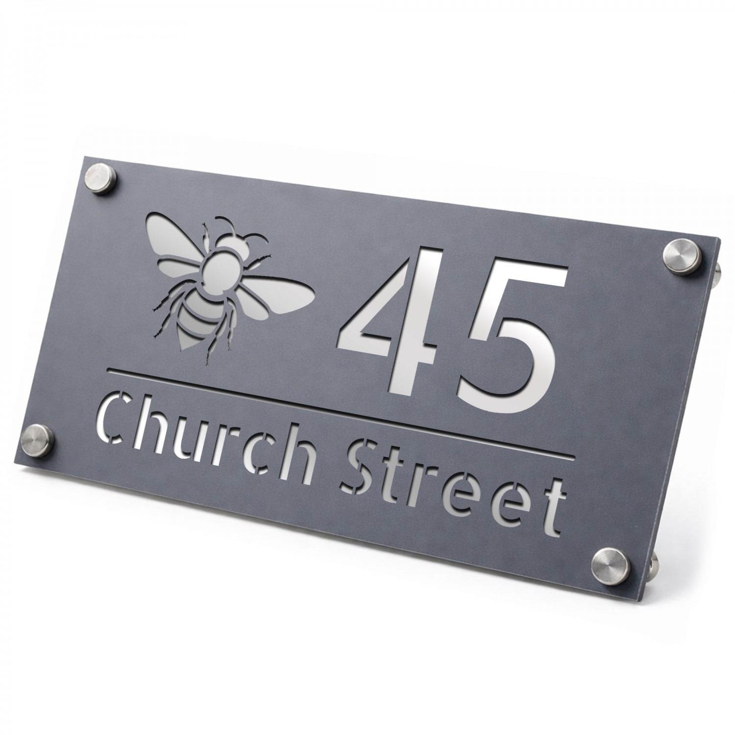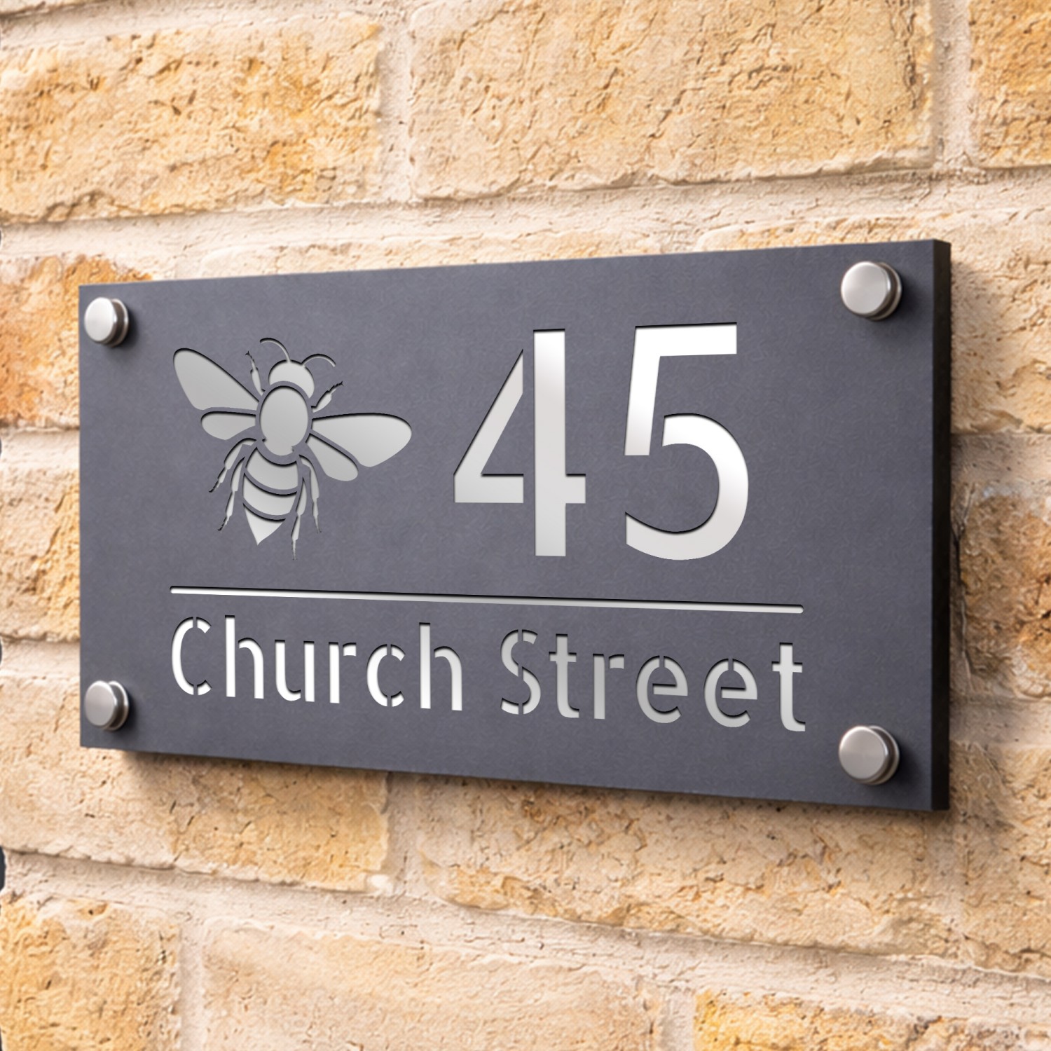 Personalised House Number Sign Bee Design Grey With Silver