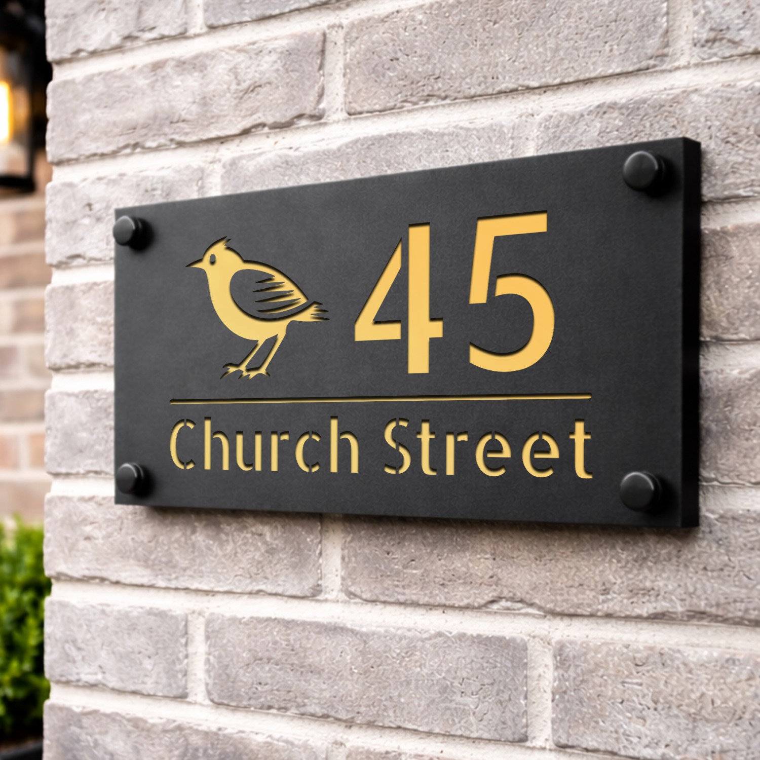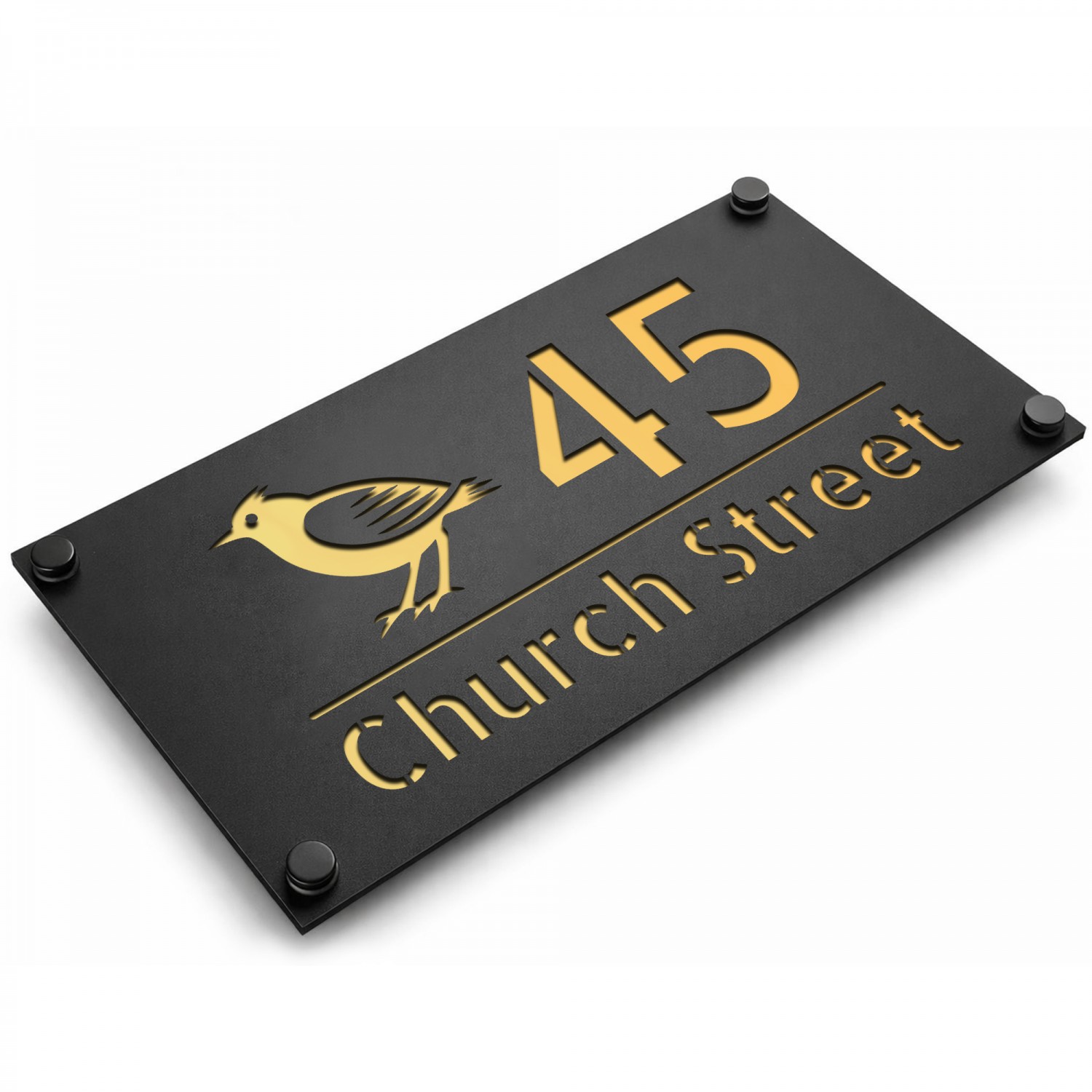 Personalised House Number Sign Gold Back Bird Design