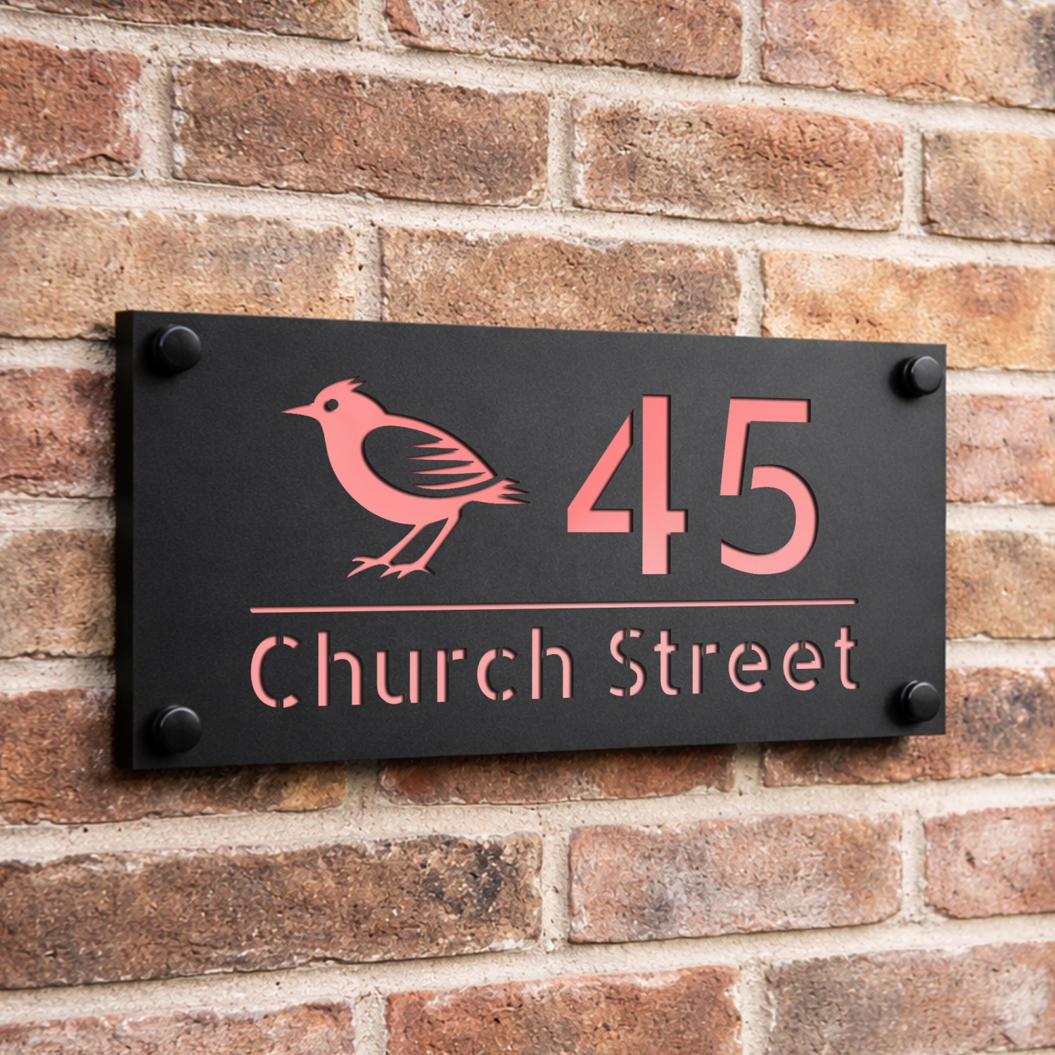Personalised House Number Sign Rose Gold Back Bird Design
