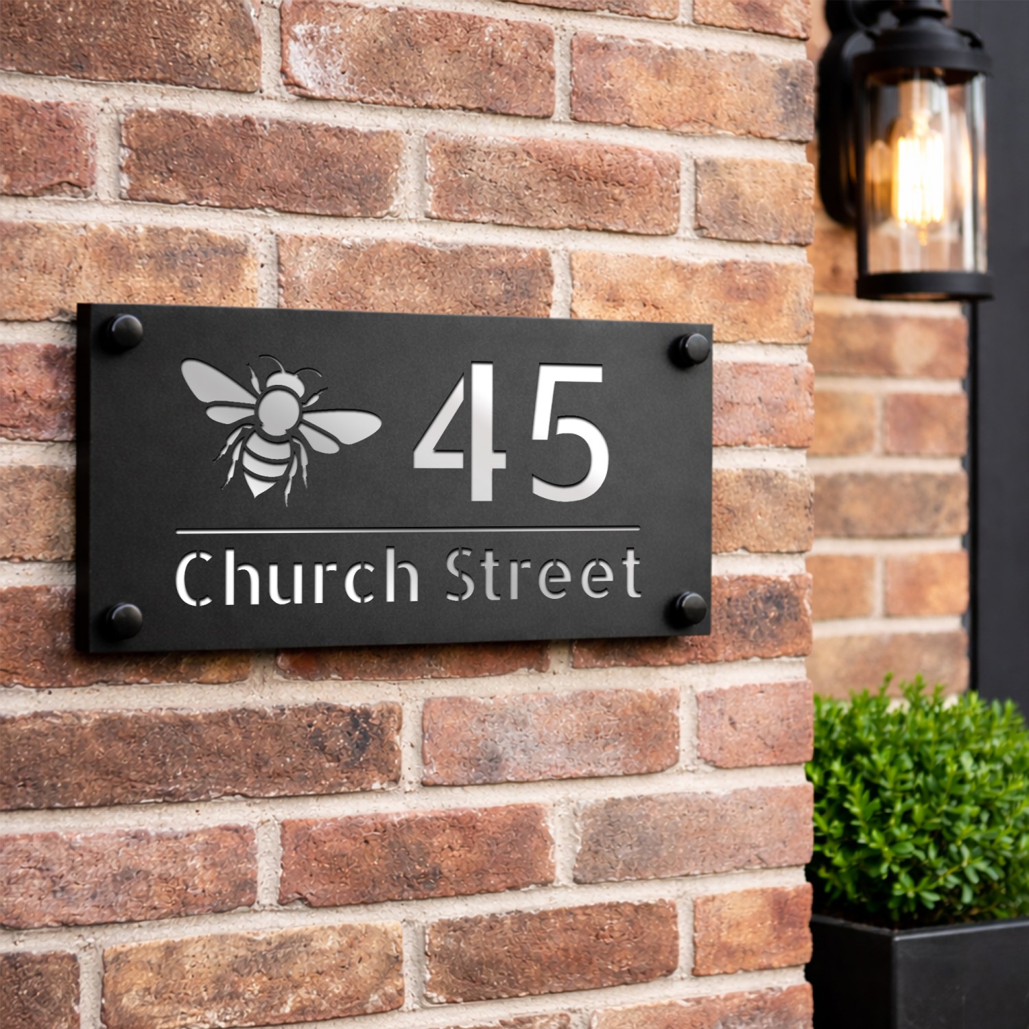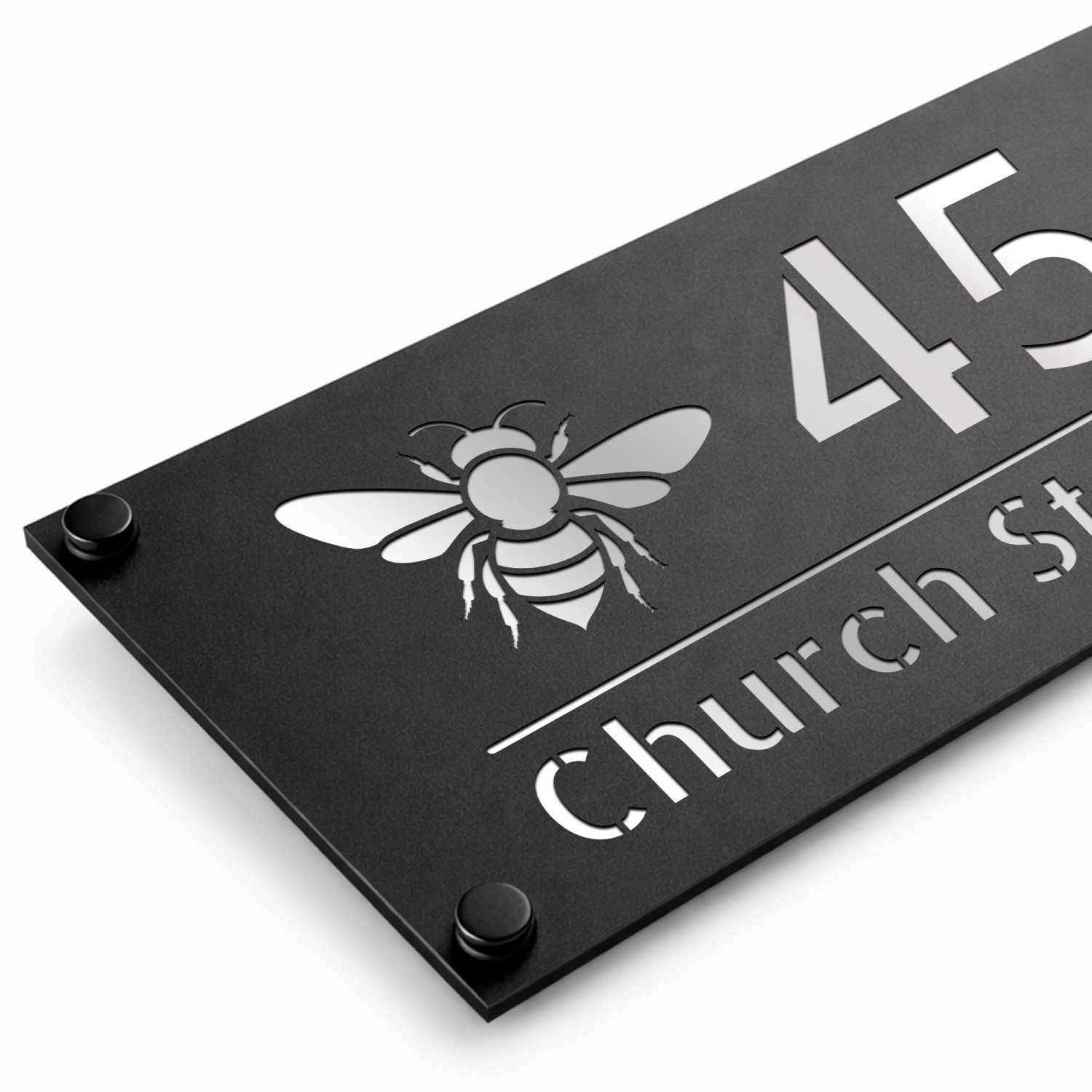 Personalised House Number Sign Silver Back Bee Design
