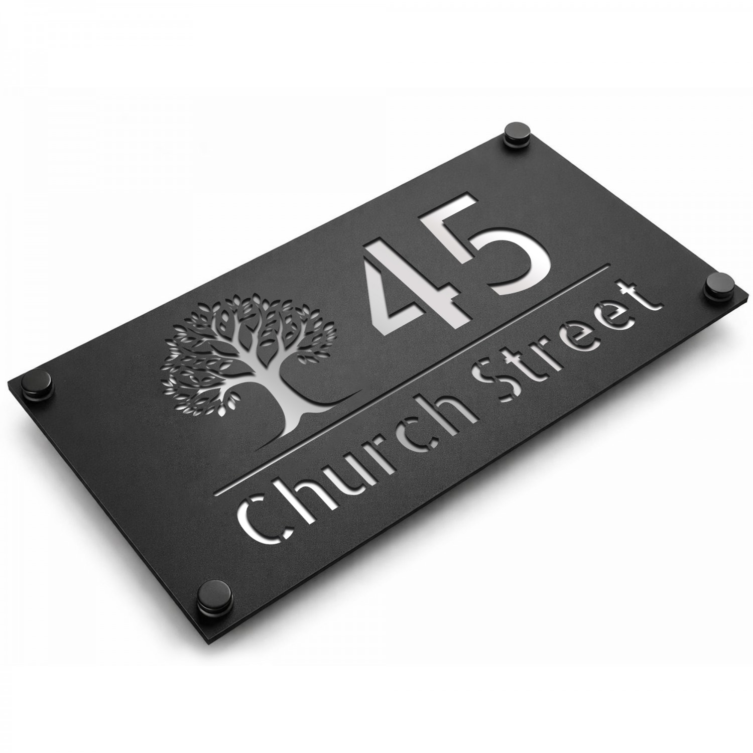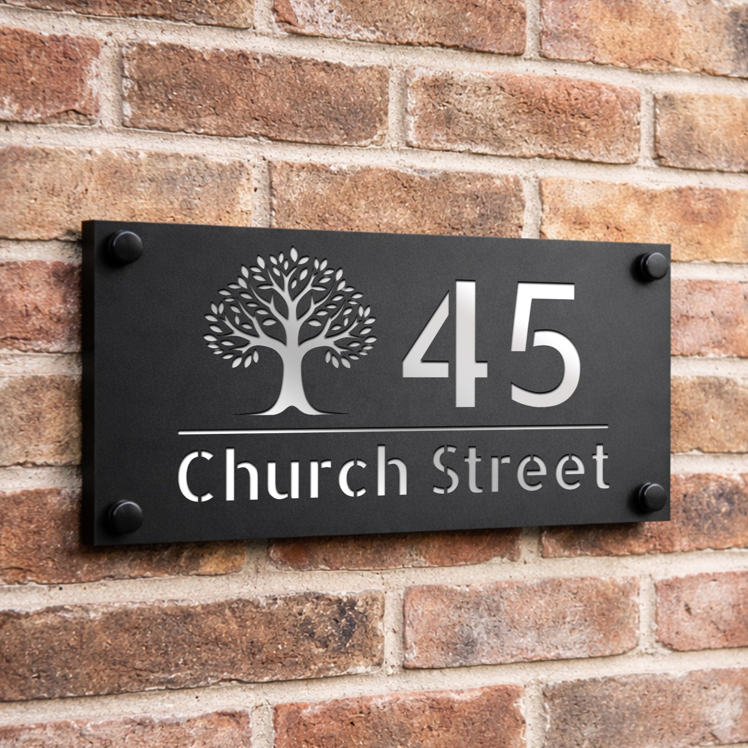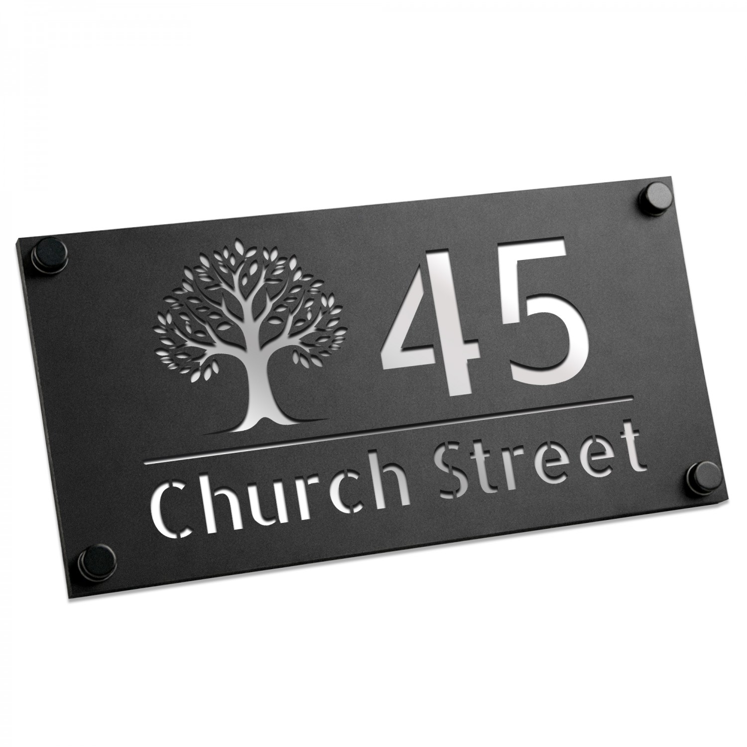 Personalised House Number Sign Silver Back Tree Design