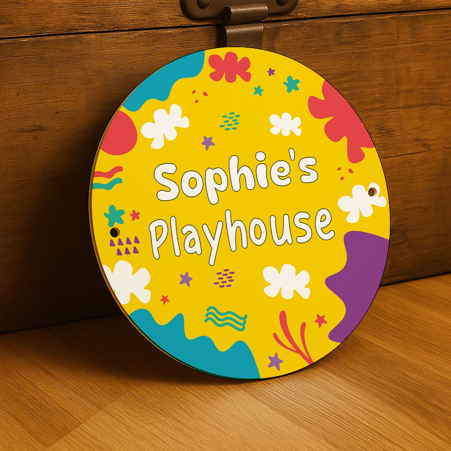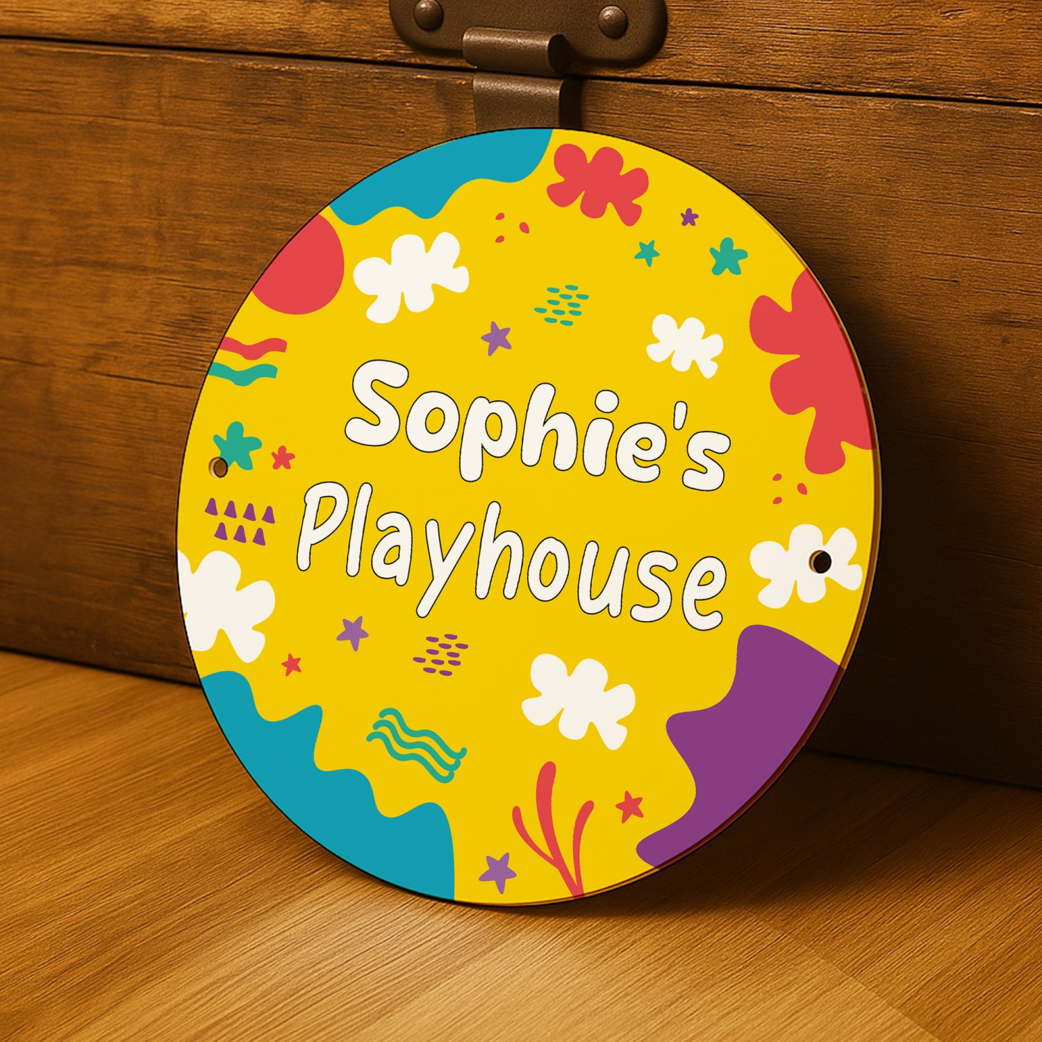 Lightweight, durable, and easy to install, this 23cm round personalised playhouse wall sign is a standout decorative piece that helps create a magical environment where imagination can thrive.