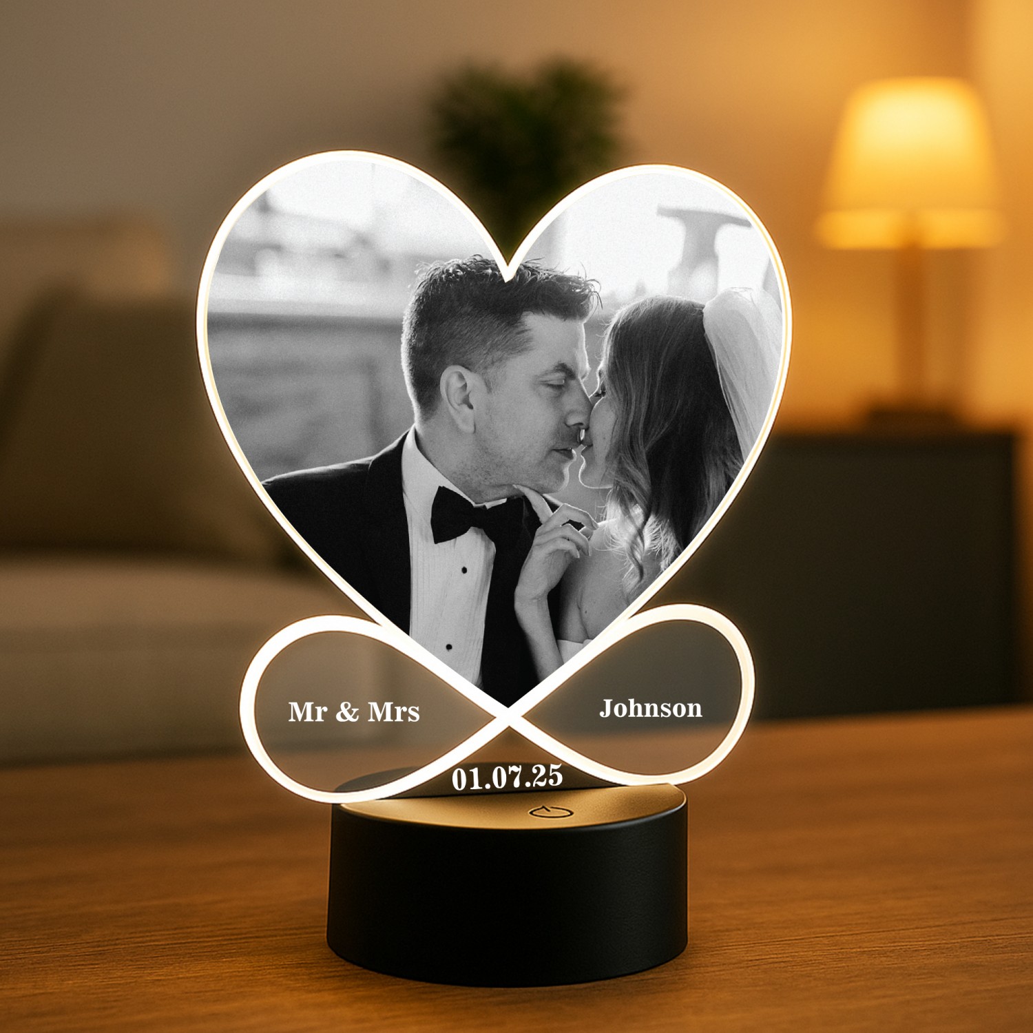 Personalised Mr & Mrs Plaque Couple Photo Frame With LED Light