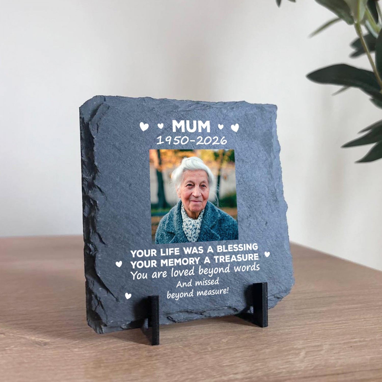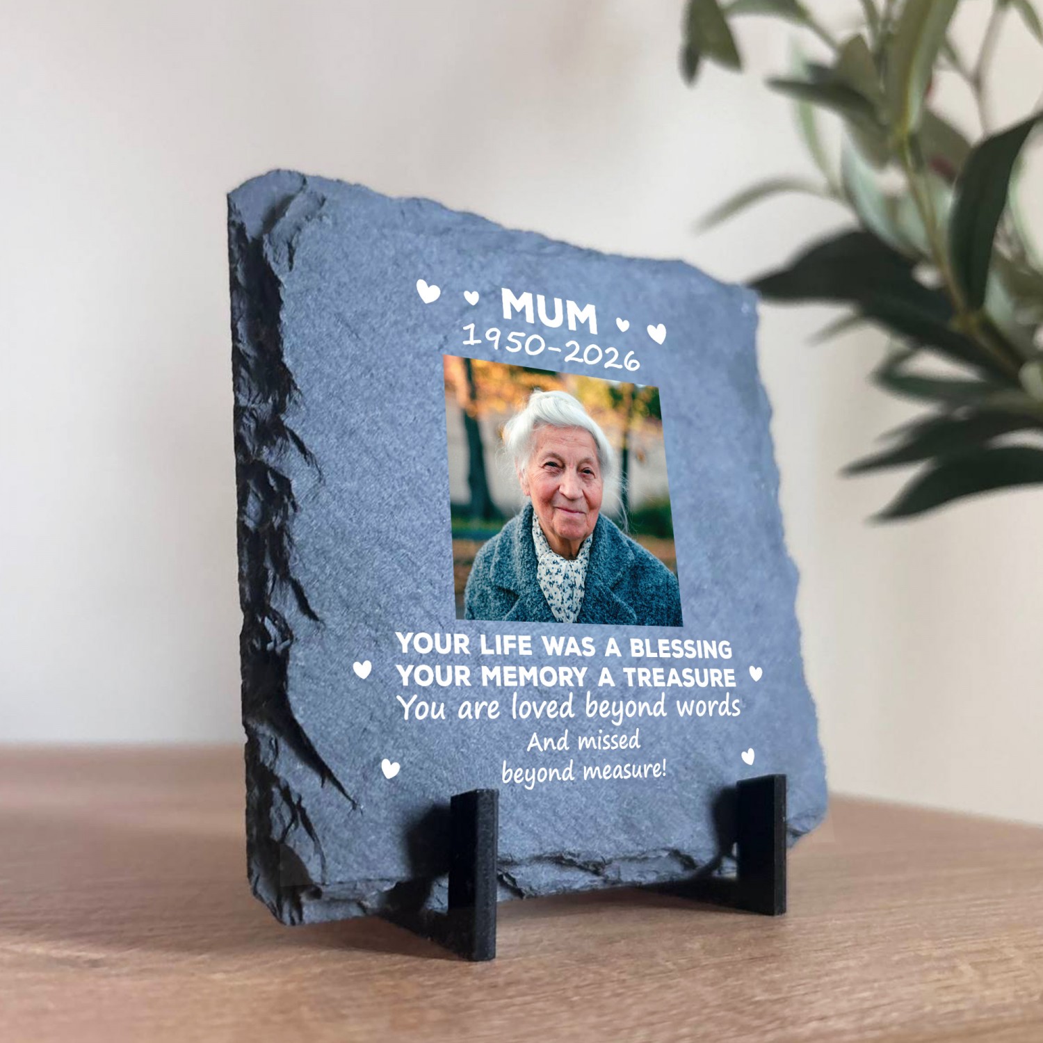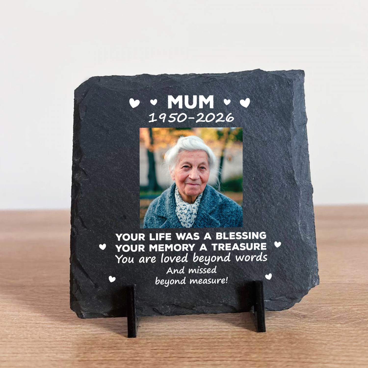 Personalised Mum Memorial Slate Plaque with Photo and Dates