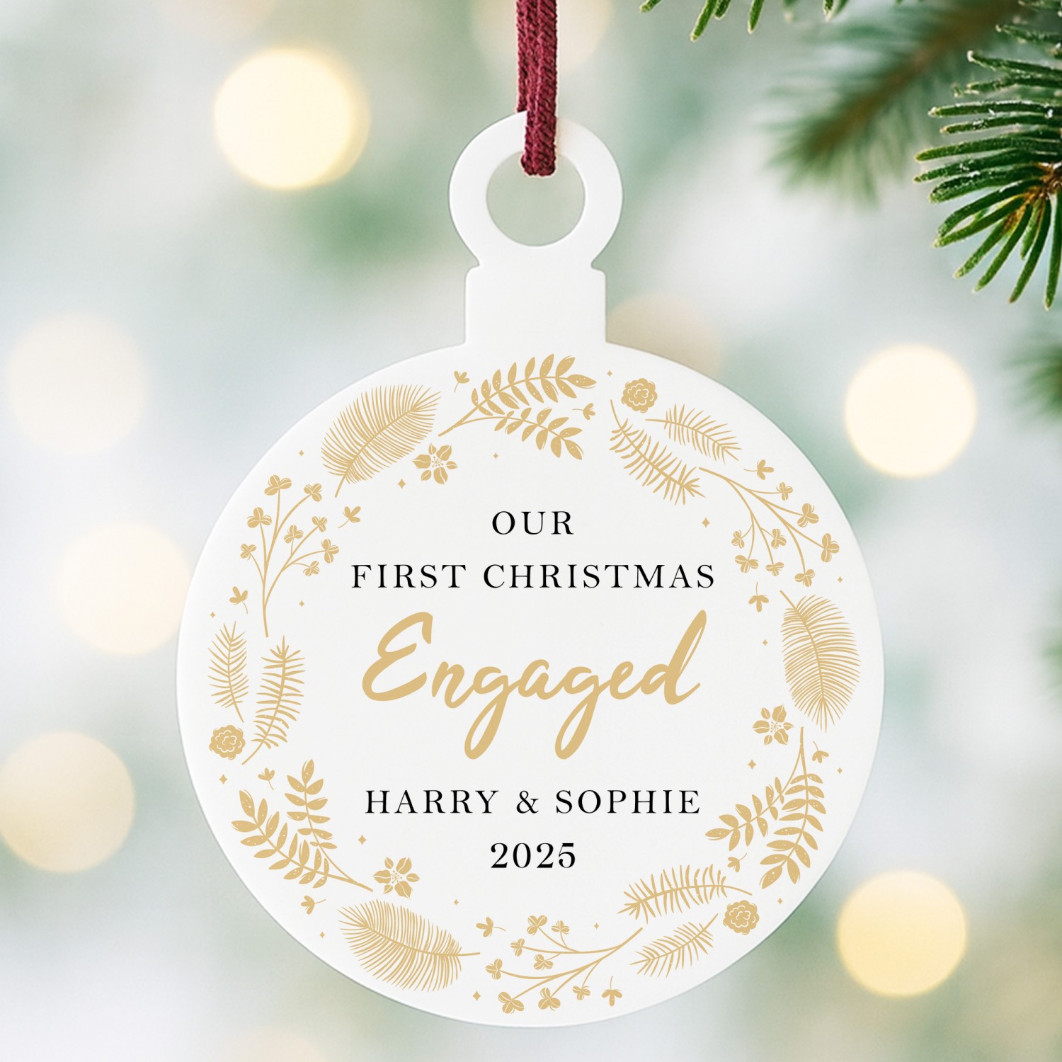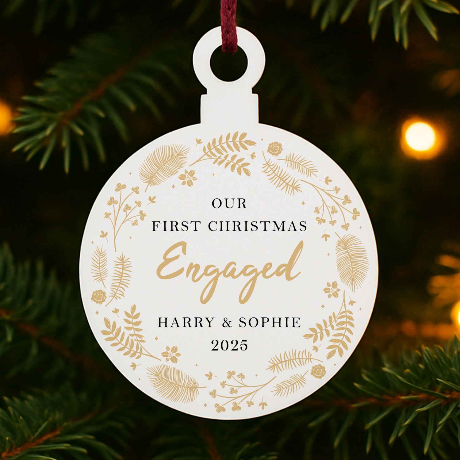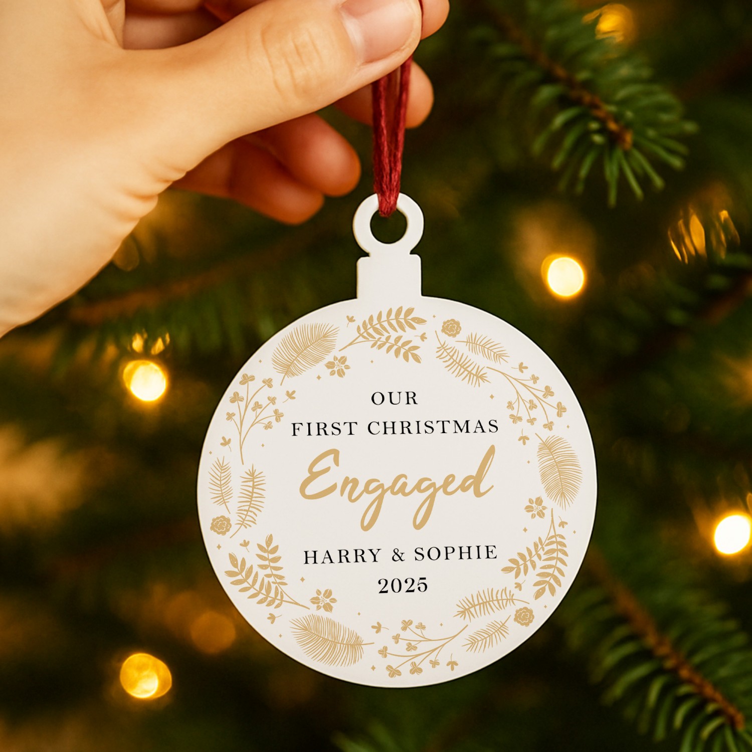 Personalised Our First Christmas Engaged Christmas Tree Bauble