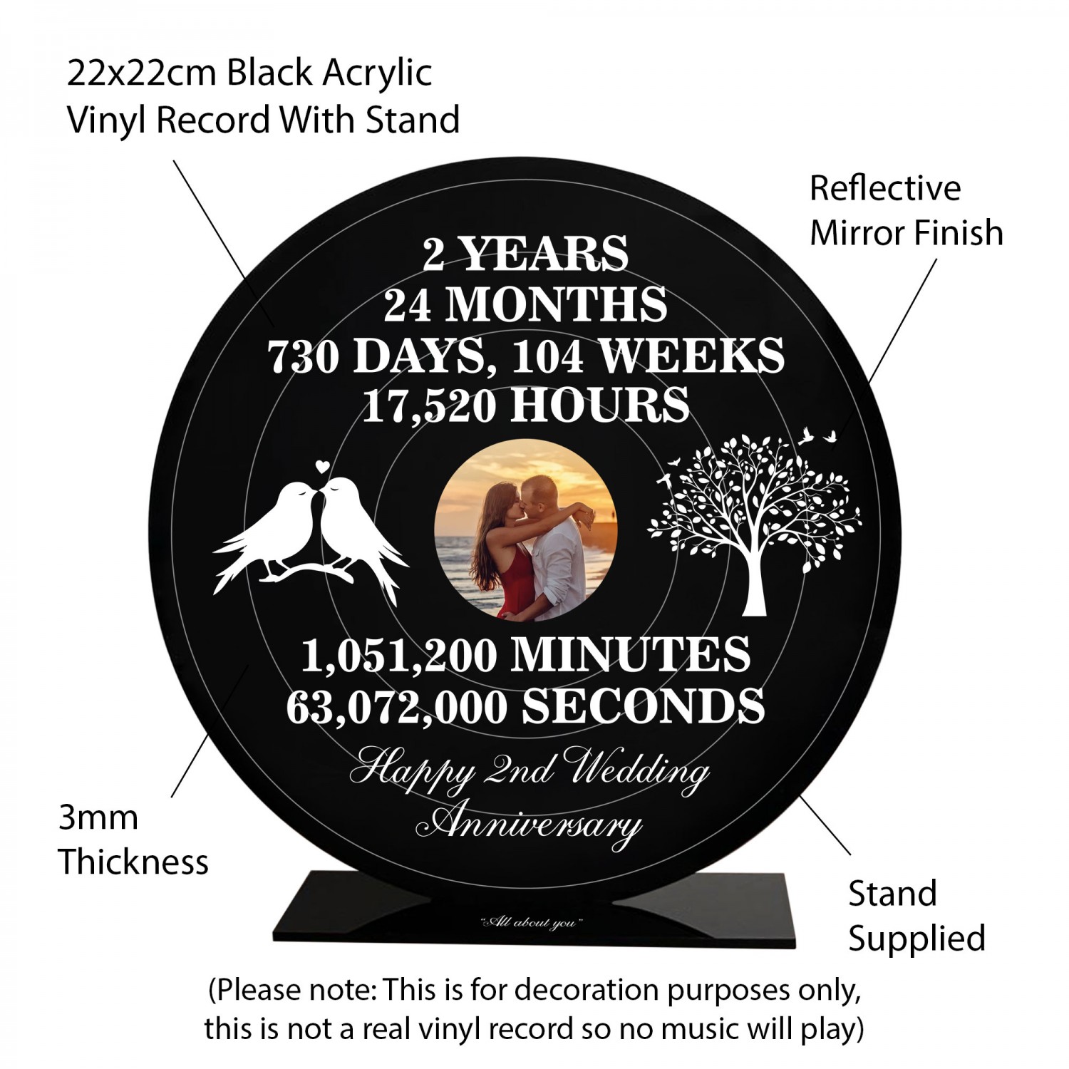 Crafted from premium quality black acrylic, the plaque measures 22cm x 22cm and boasts a sleek finish. Its 3mm thickness ensures durability while maintaining a refined appearance. The vinyl inspired design is expertly printed directly onto the acrylic surface, creating a flawless, professional look. Although it mimics the aesthetic of a traditional vinyl record, this plaque is purely decorative and serves as a stylish and sentimental display piece.