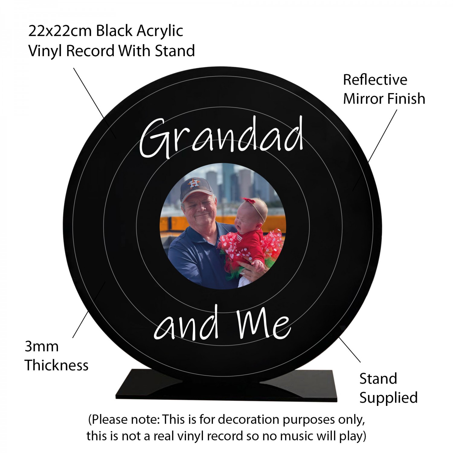 Crafted from premium quality black acrylic, the plaque measures 22cm x 22cm and boasts a sleek finish. Its 3mm thickness ensures durability while maintaining a refined appearance. The vinyl inspired design is expertly printed directly onto the acrylic surface, creating a flawless, professional look. Although it mimics the aesthetic of a traditional vinyl record, this plaque is purely decorative and serves as a stylish and sentimental display piece.