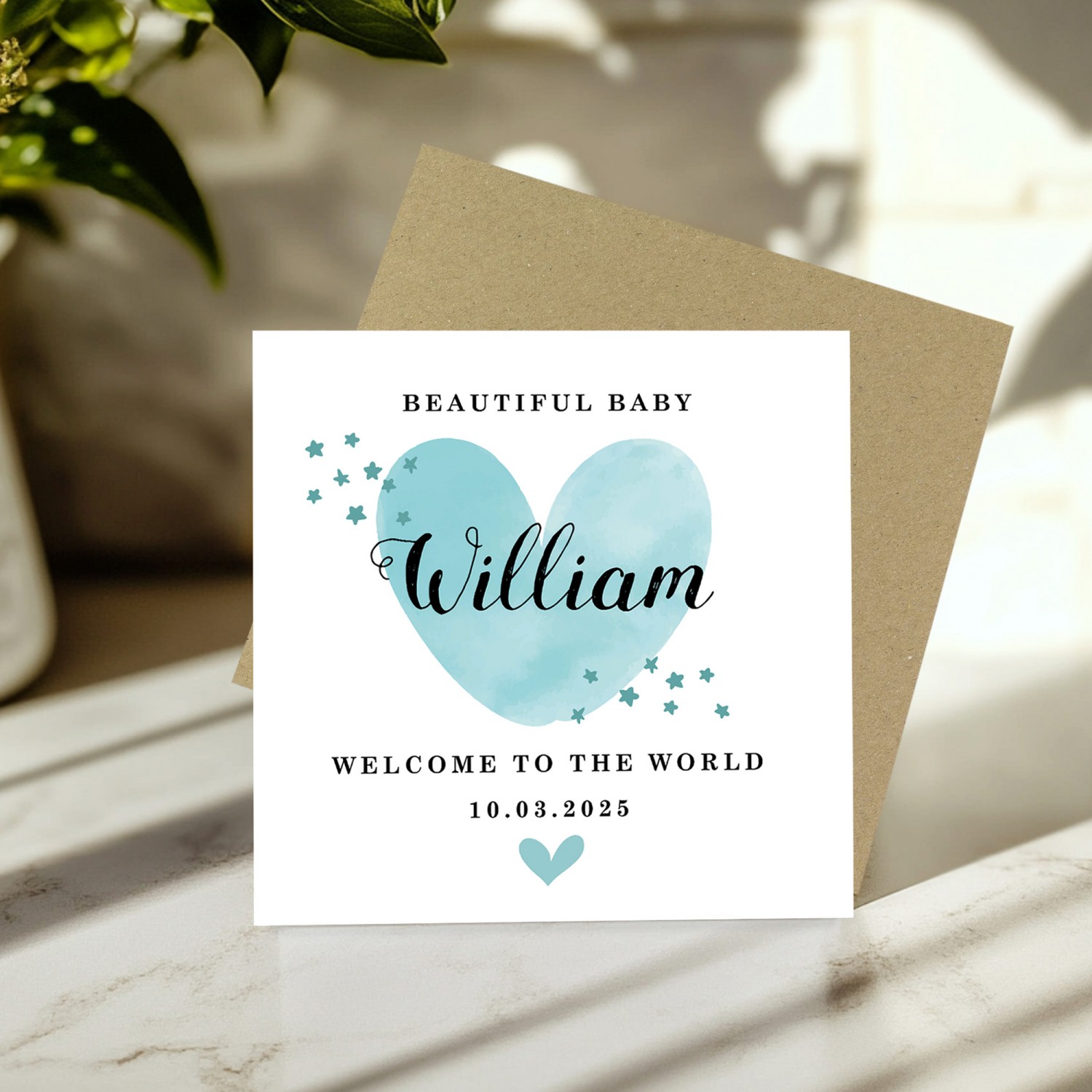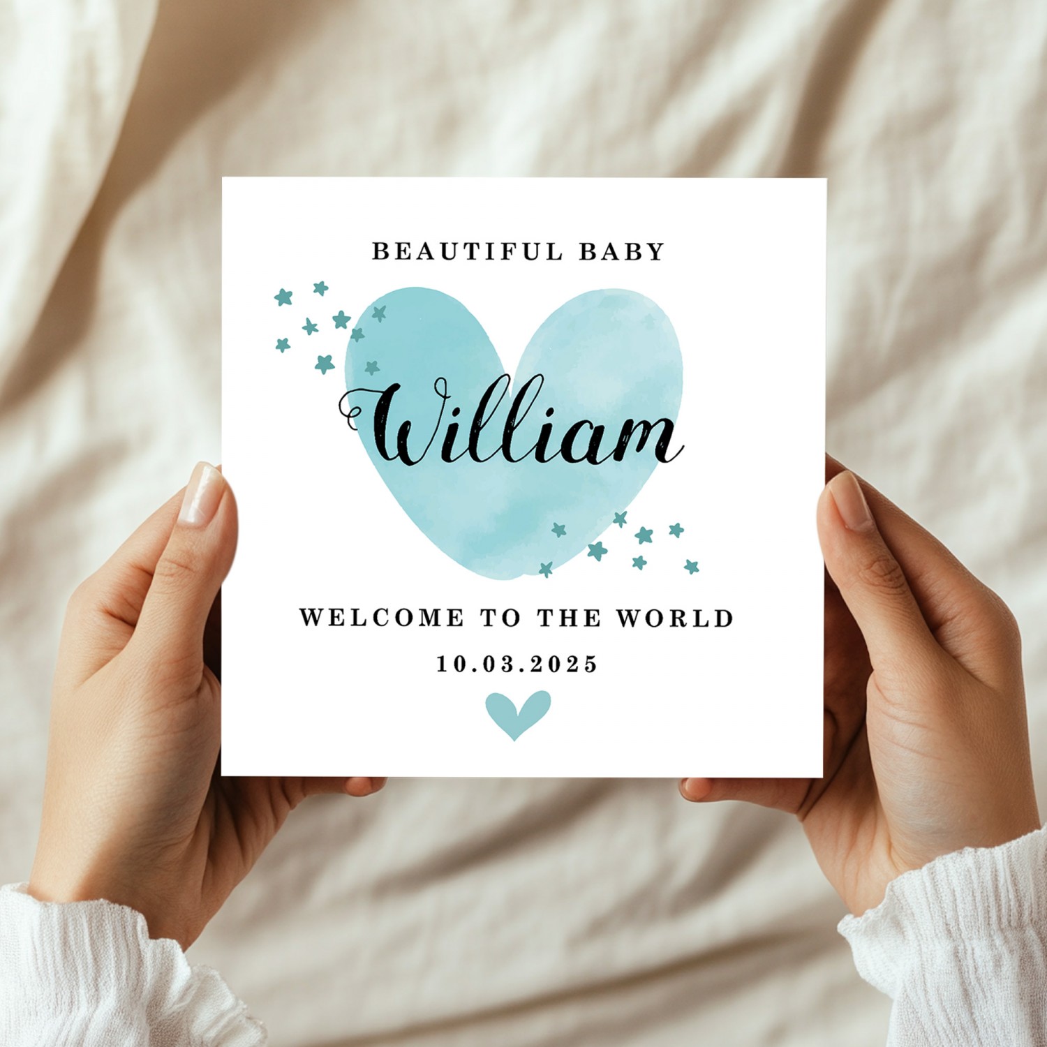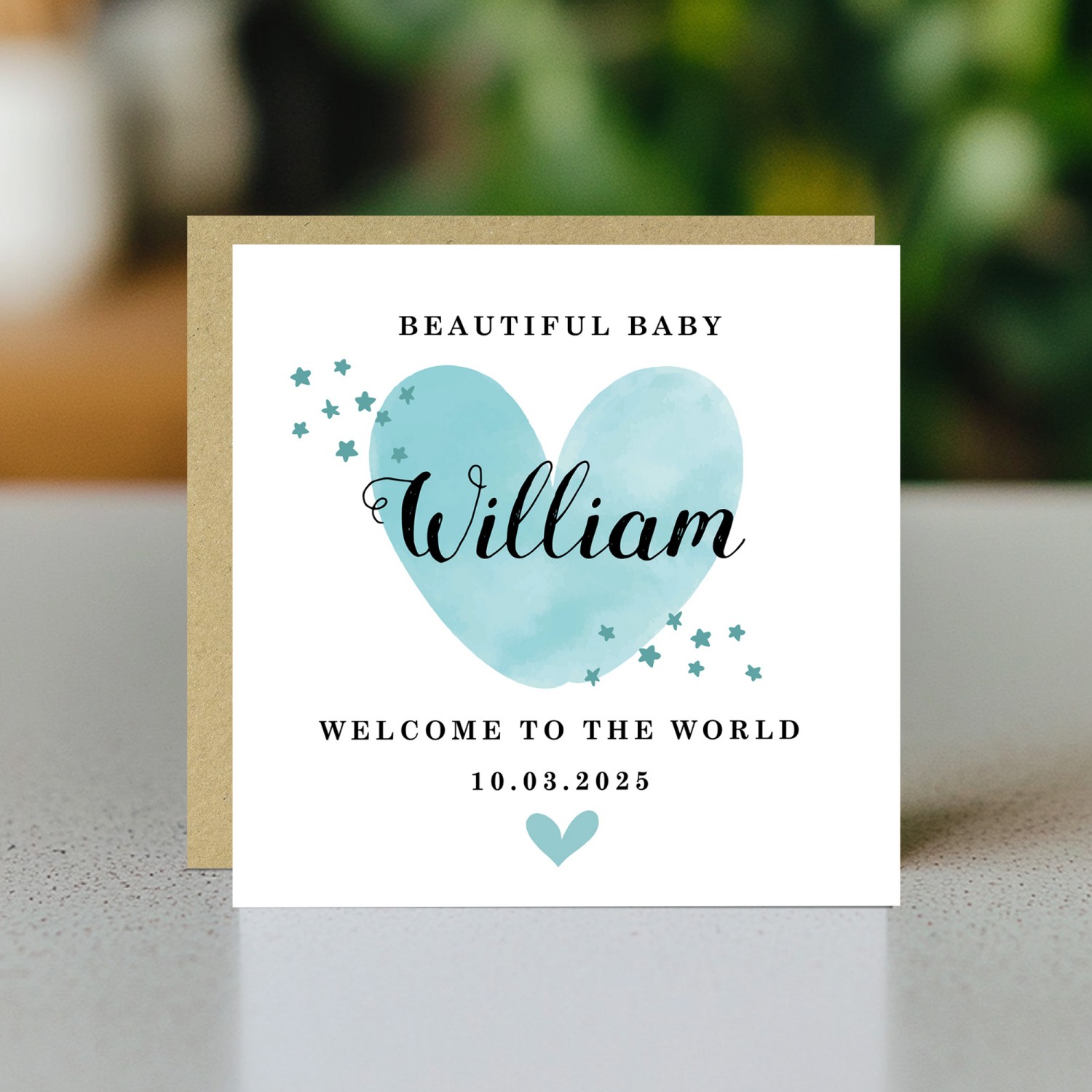 New Baby Card Watercolour Personalised Welcome to the World Boy