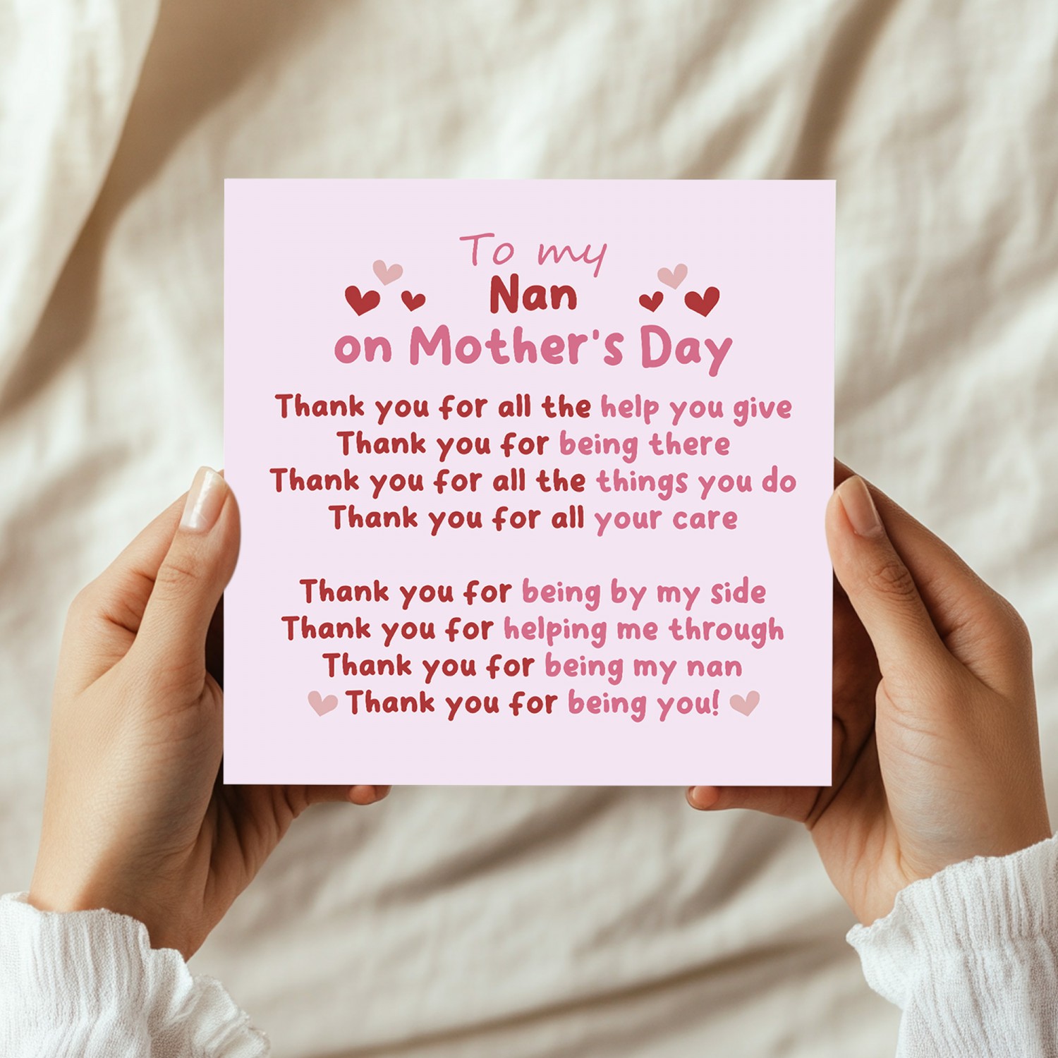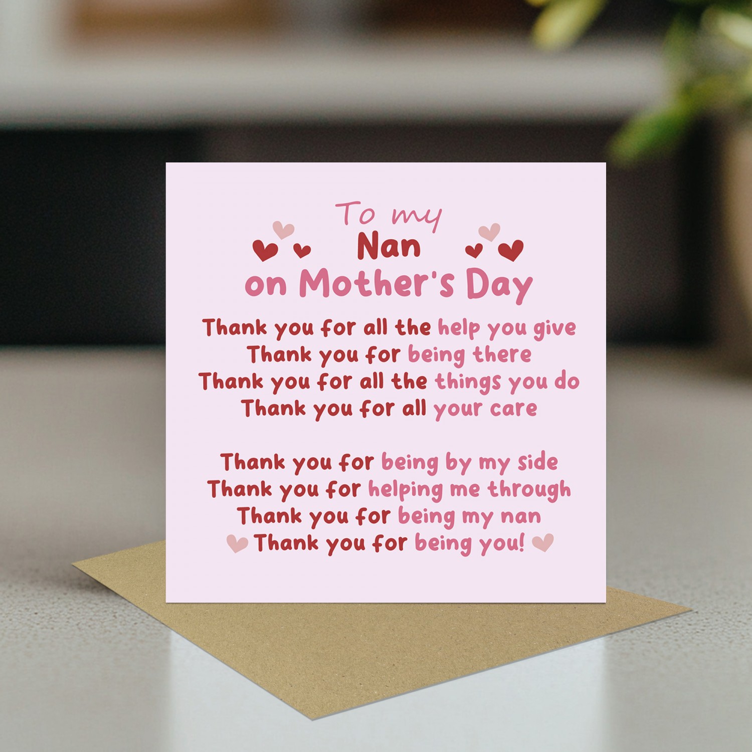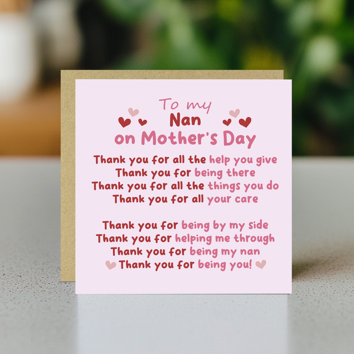 Thank You Card For Nan For Mothers Day, Thank You For Being You