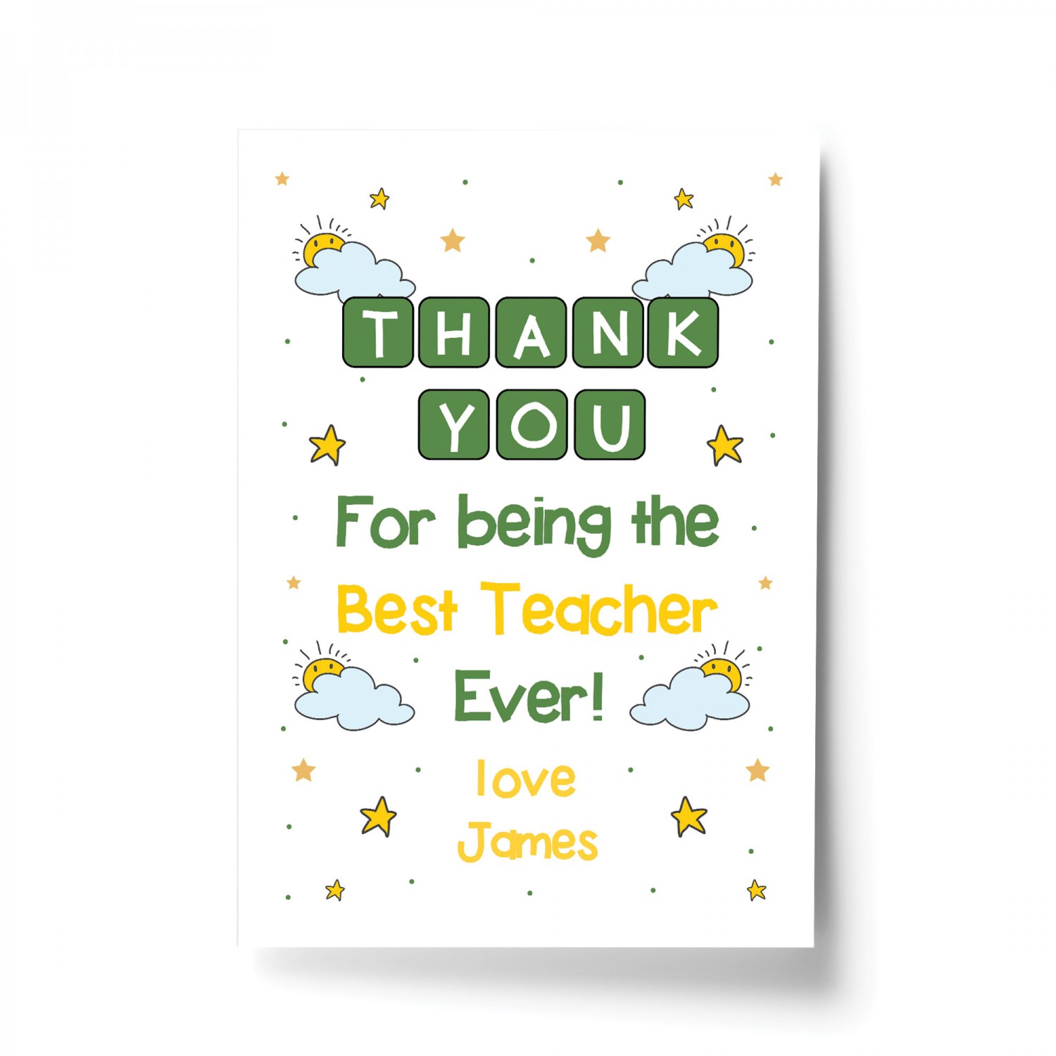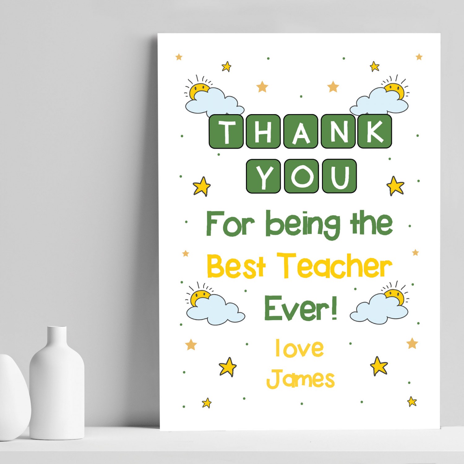 Thank You Gift For Best Teacher Ever Personalised Print Leaving