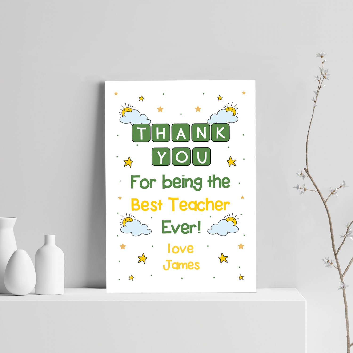 Are you searching for a heartfelt gift to say thank you to the Best Teacher ever? Look no further! Our A4 Print is a stunning work of art that doubles as a sentimental keepsake.