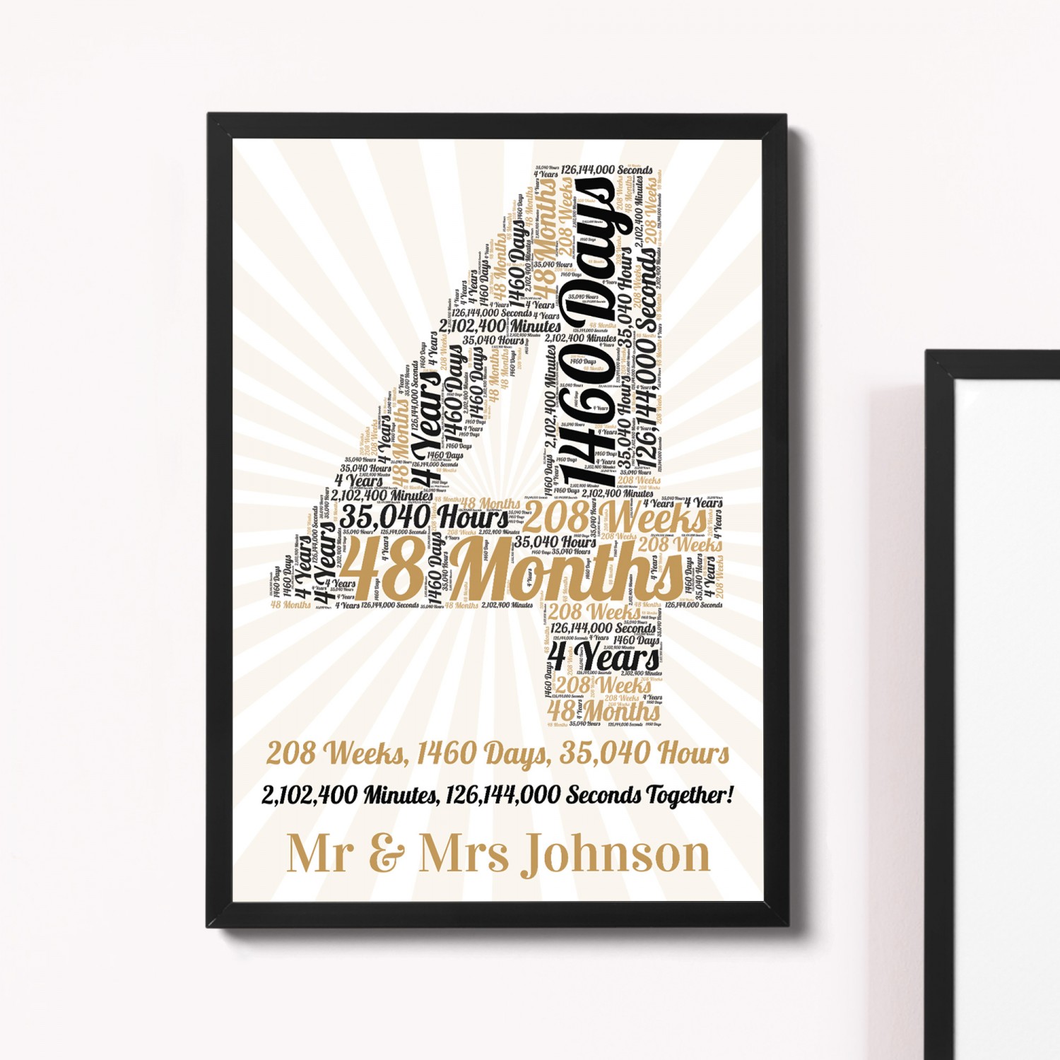 4th Anniversary Gift For Him For Her Framed Print Calender