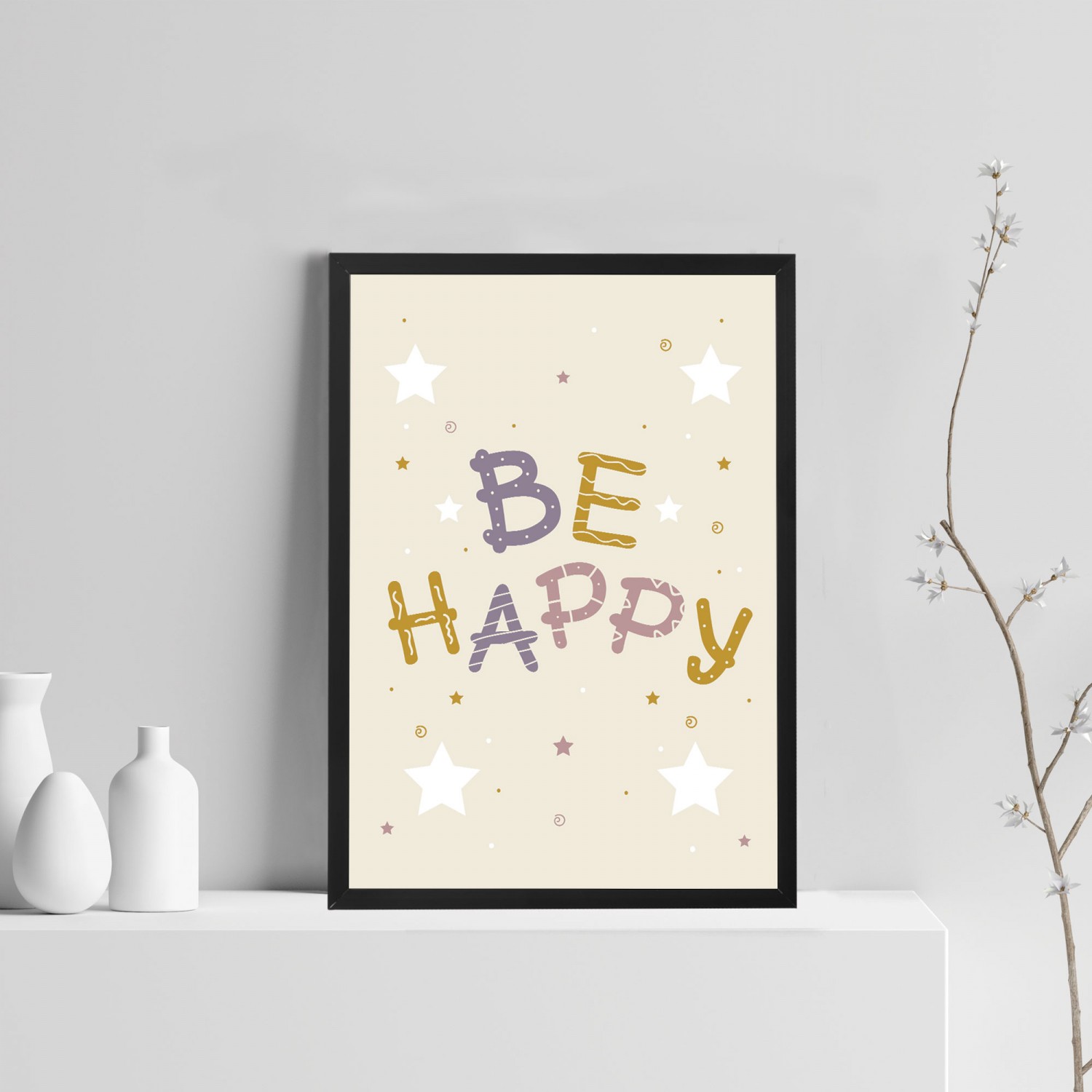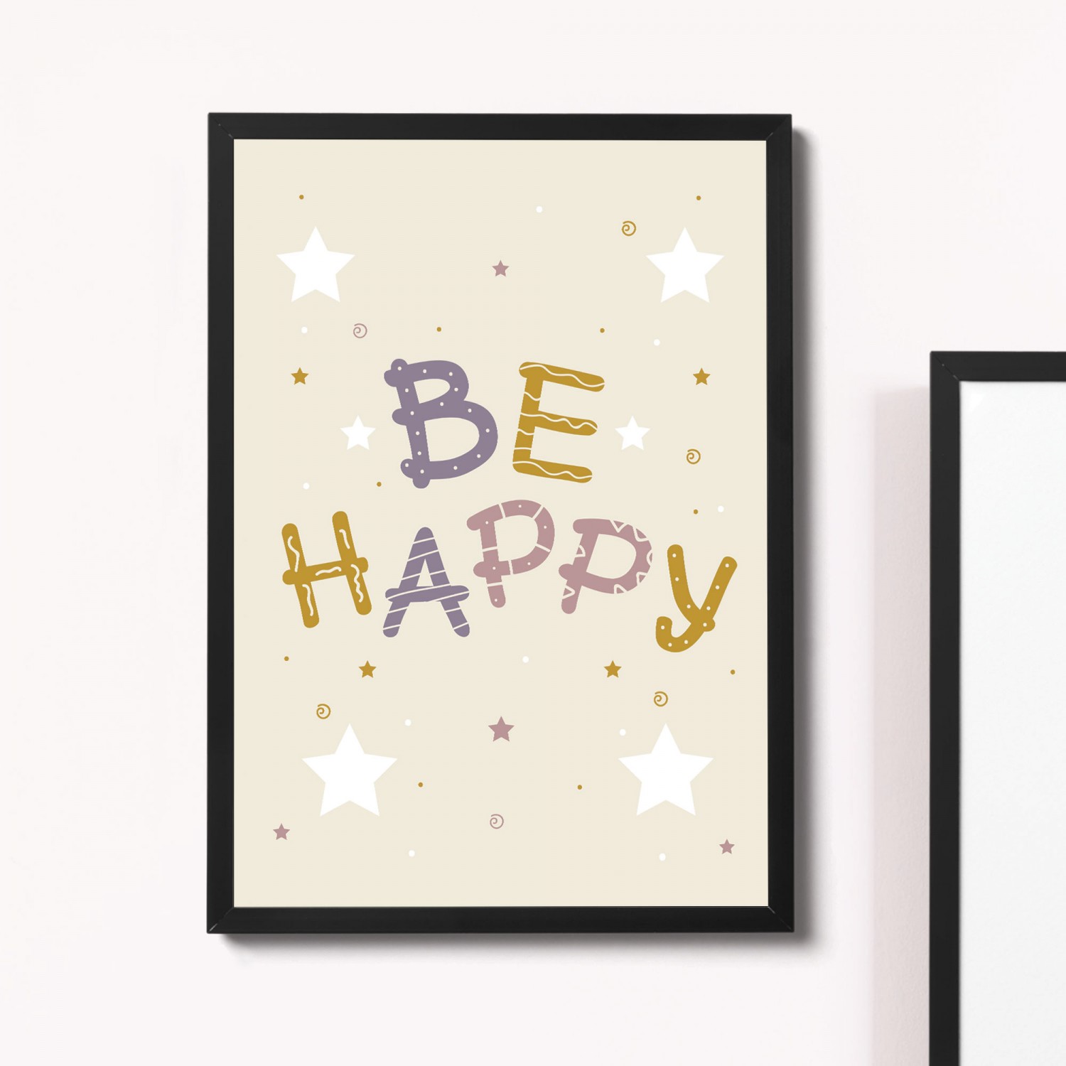Boys Bedroom Wall Art Be Happy Print Framed Girls Bedroom Decor